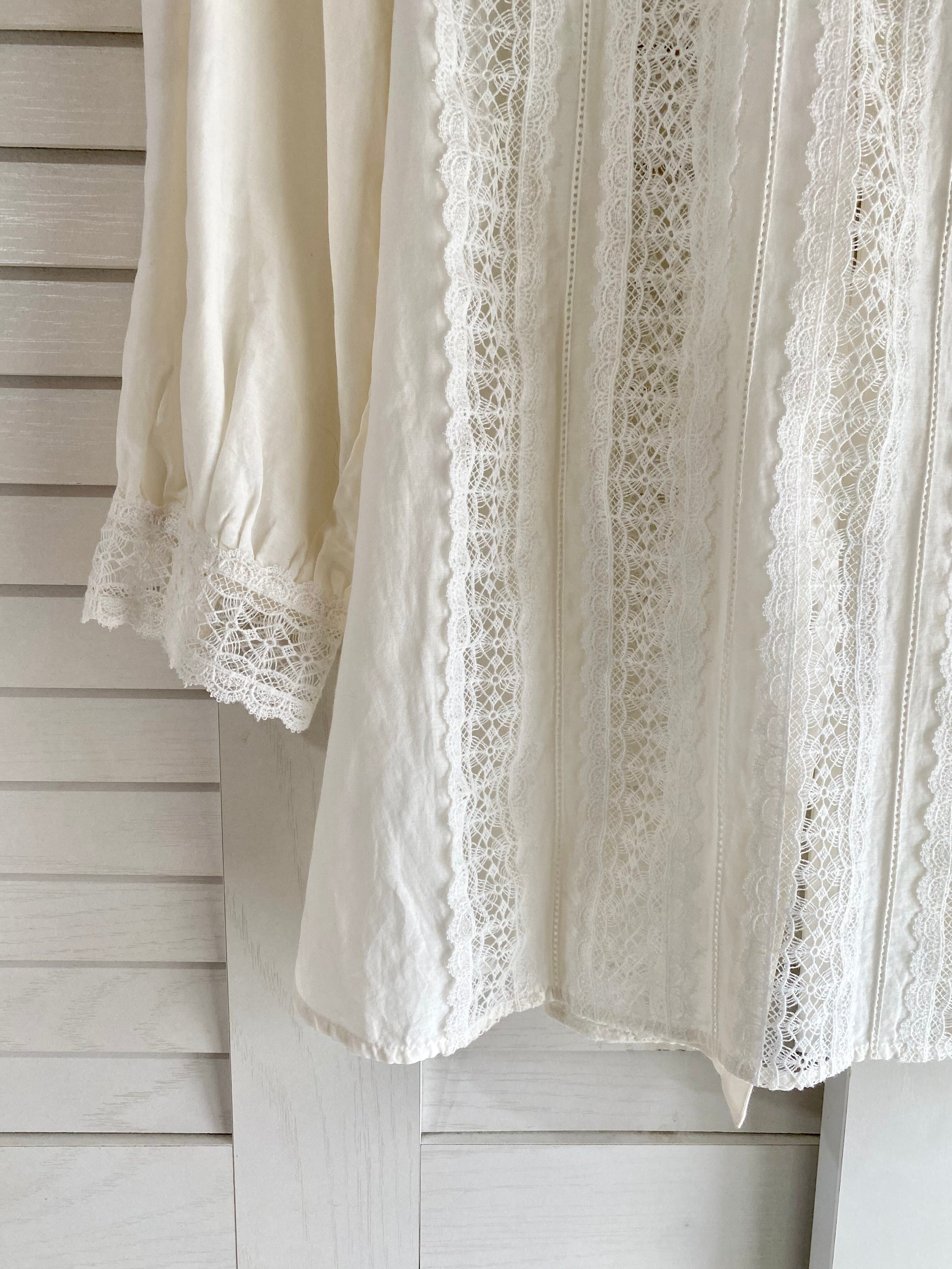 #164 23区(Rアール) コットンシルク はしごレース ハイネックブラウス オフホワイト