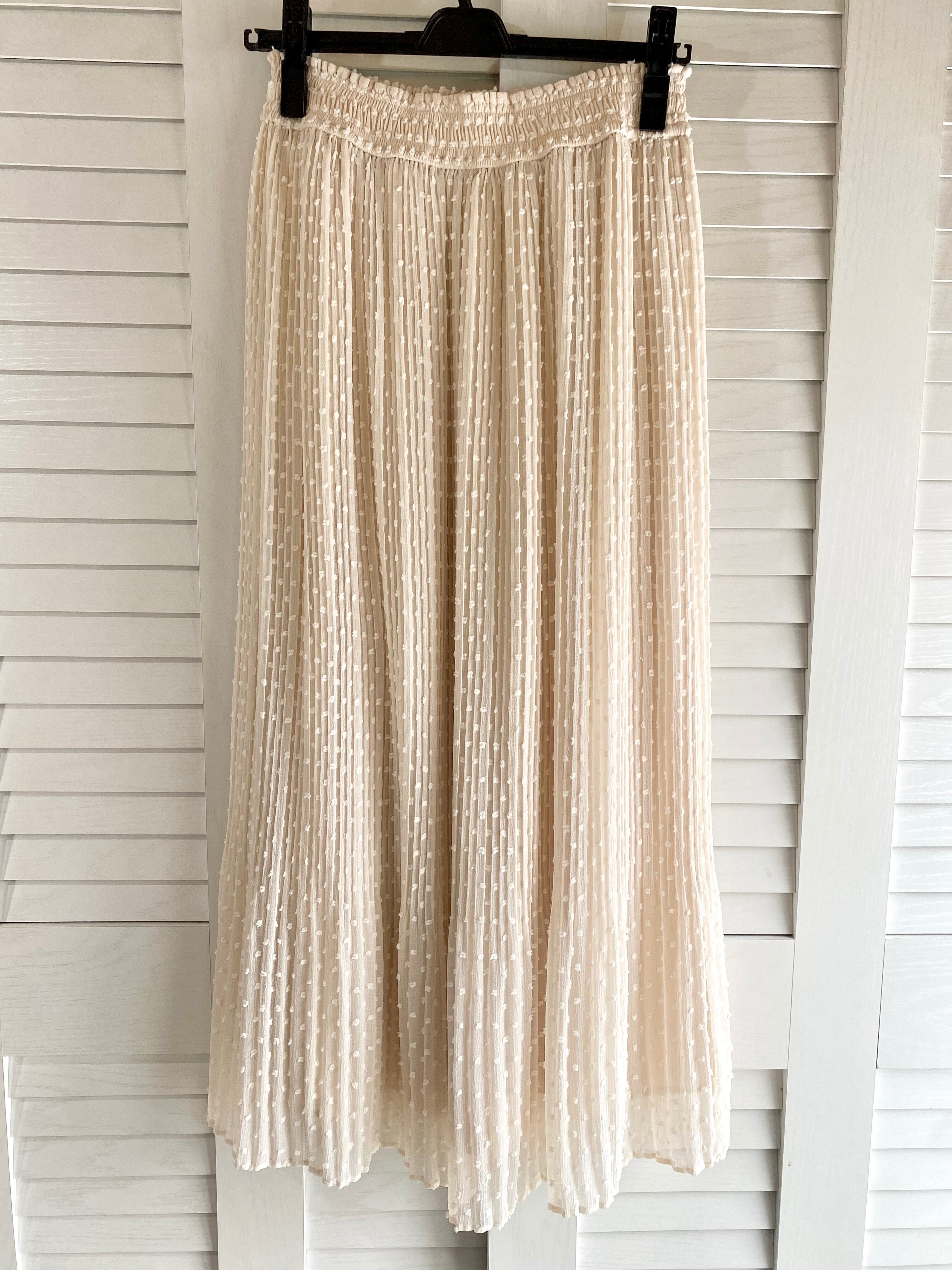 #164 nano UNIVERSE ポップコーンドット ランダムプリーツジョーゼットスカート クリームベージュ