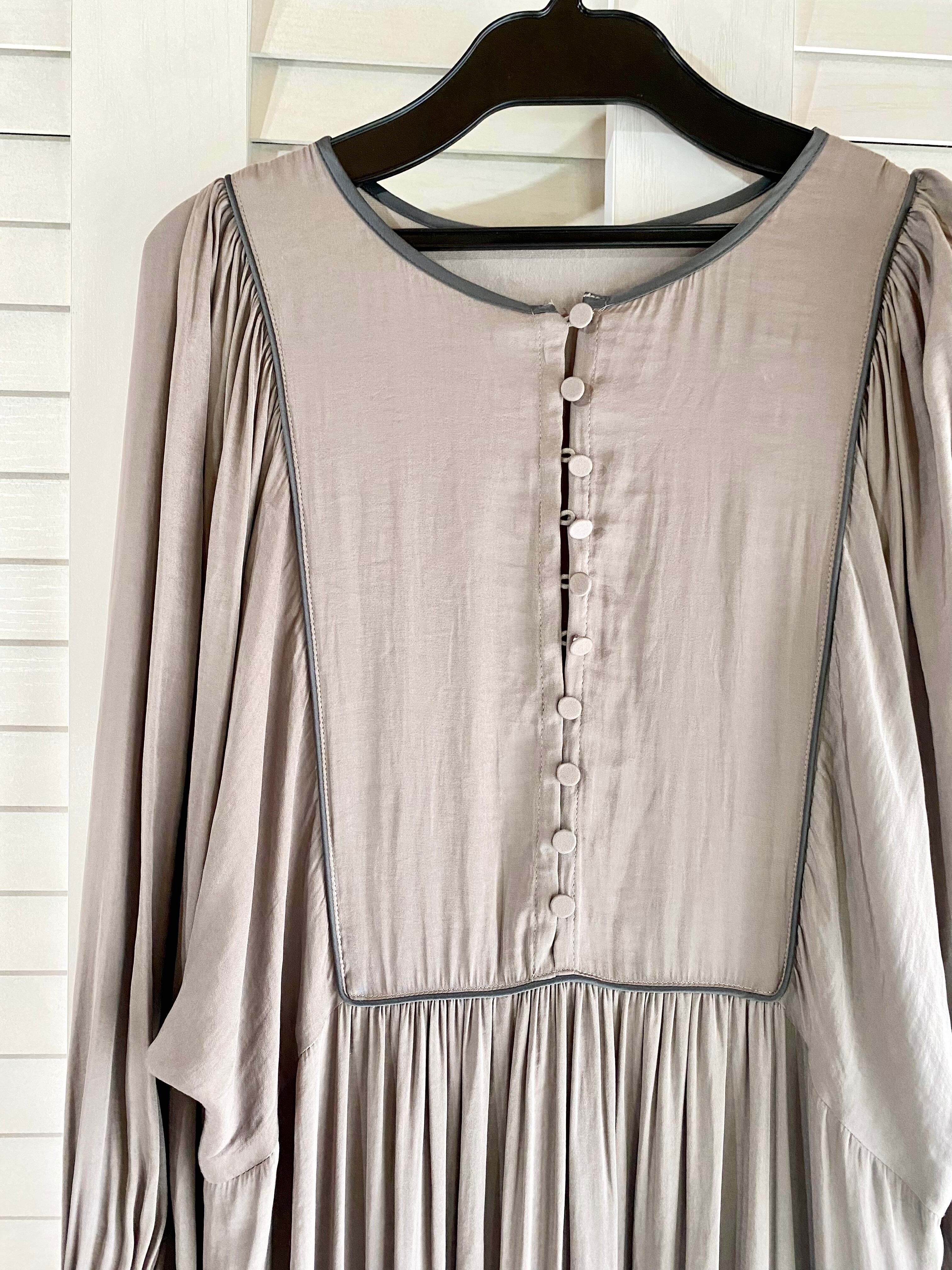#164 nano UNIVERSE ヴィンテージサテン ボリュームスリーブワンピ グレーベージュ
