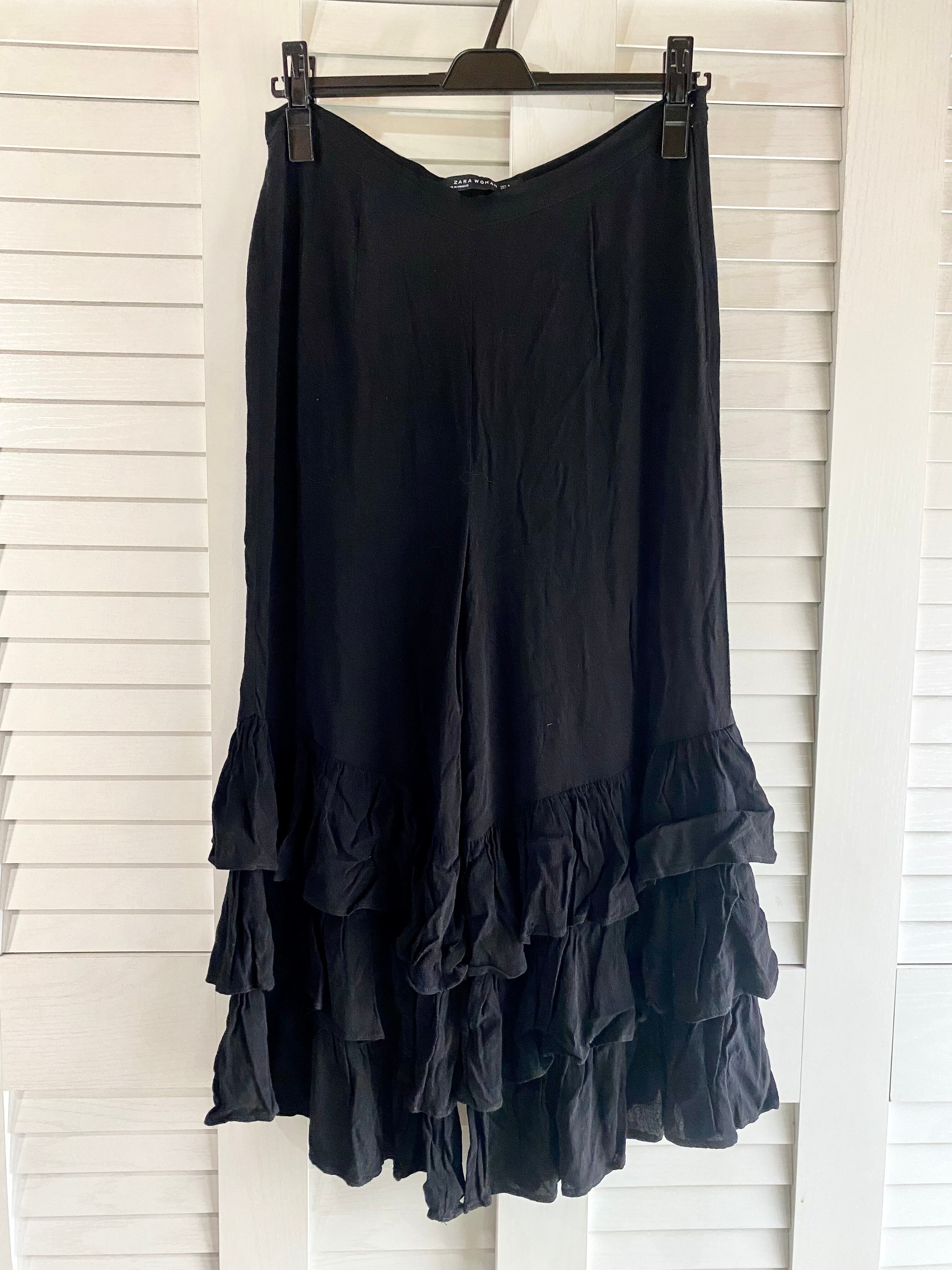 #164 ZARA 梨地ジョーゼット ティアードドロワーズパンツ ブラック