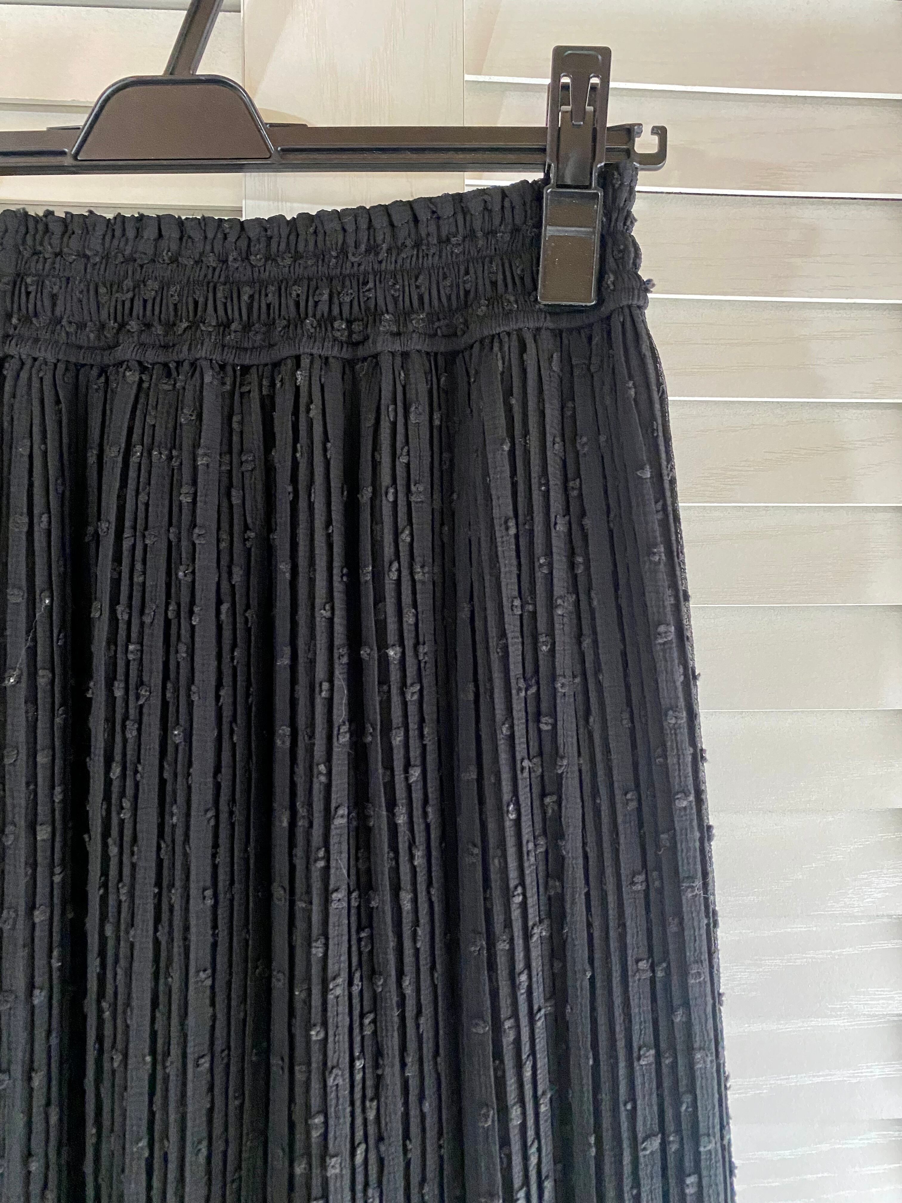 #164 nano UNIVERSE ポップコーンドット ランダムプリーツジョーゼットスカート ブラック