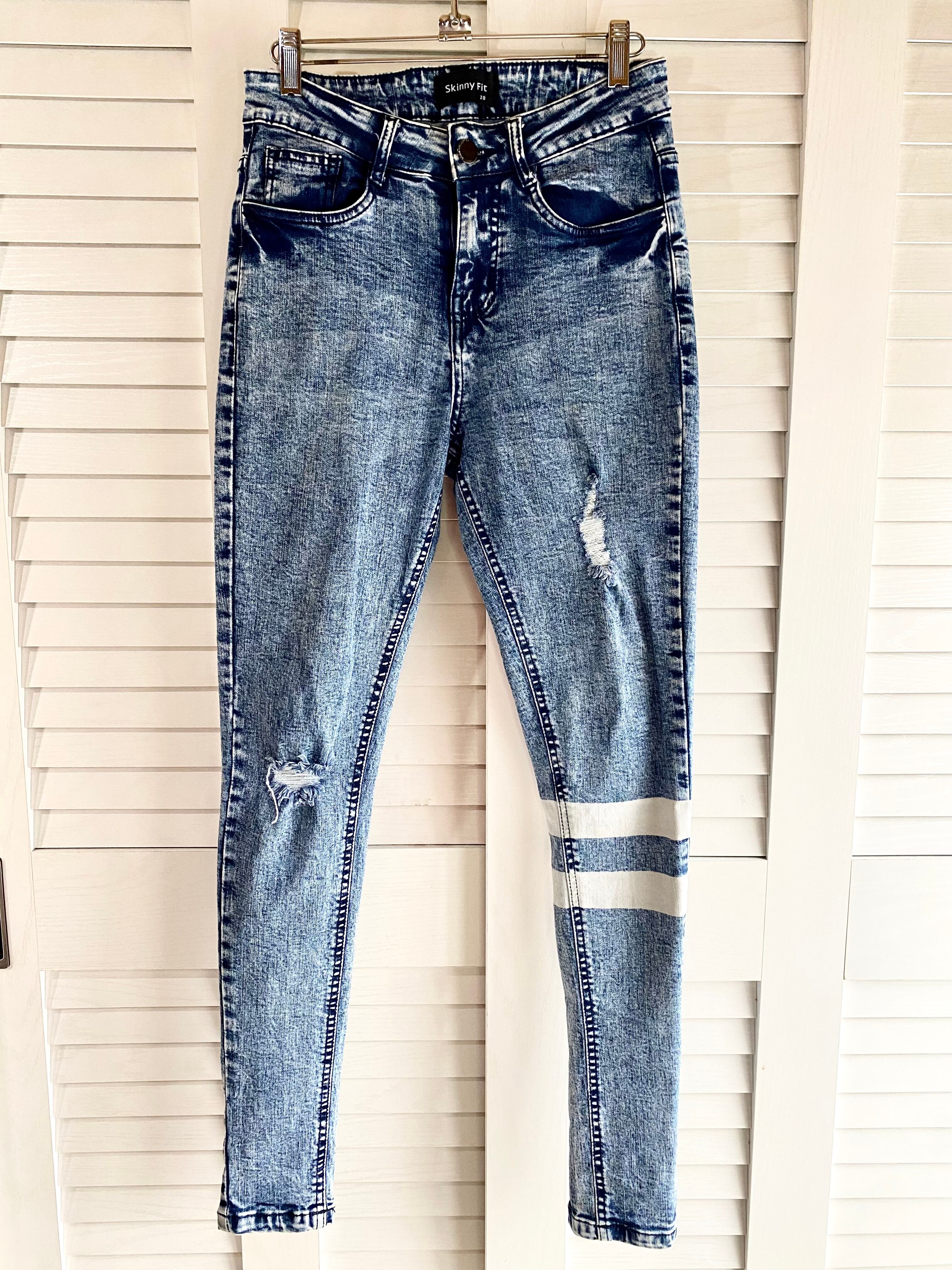 #166 DENIM COLECTION ダブルライン スーパーストレッチ ケミカルデニムスキニージーンズ ブルー