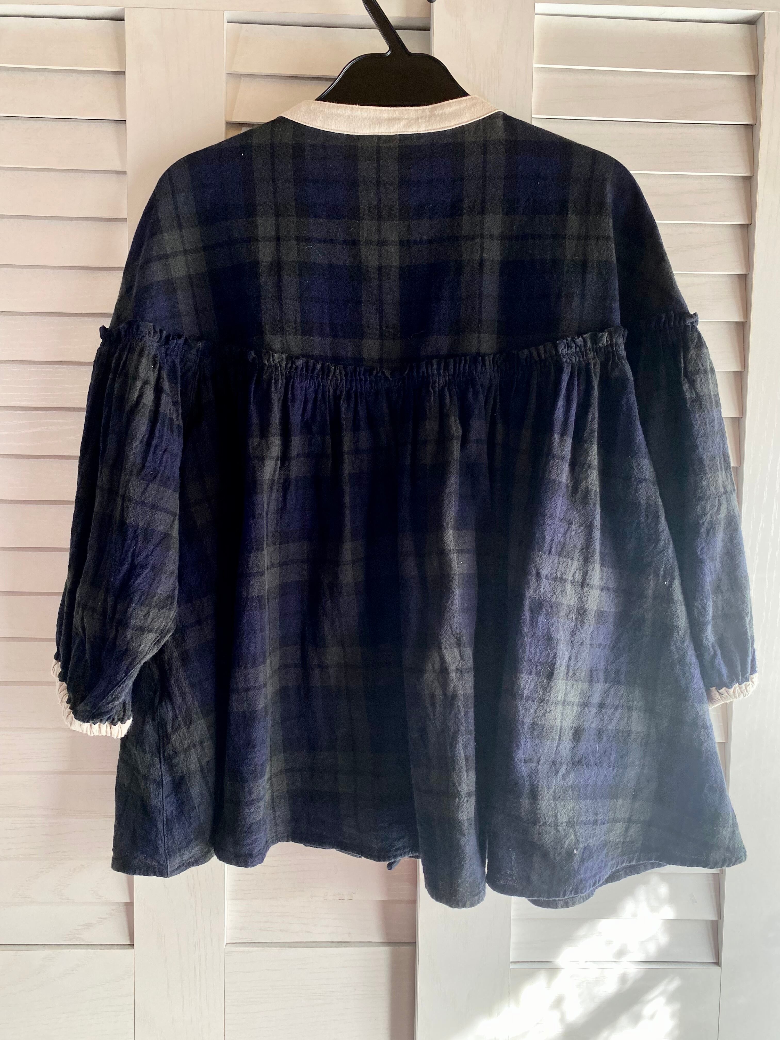 #169 Samansa Mos2 タータンチェック ヨーク切替ボリュームブラウス ネイビー×グリーン
