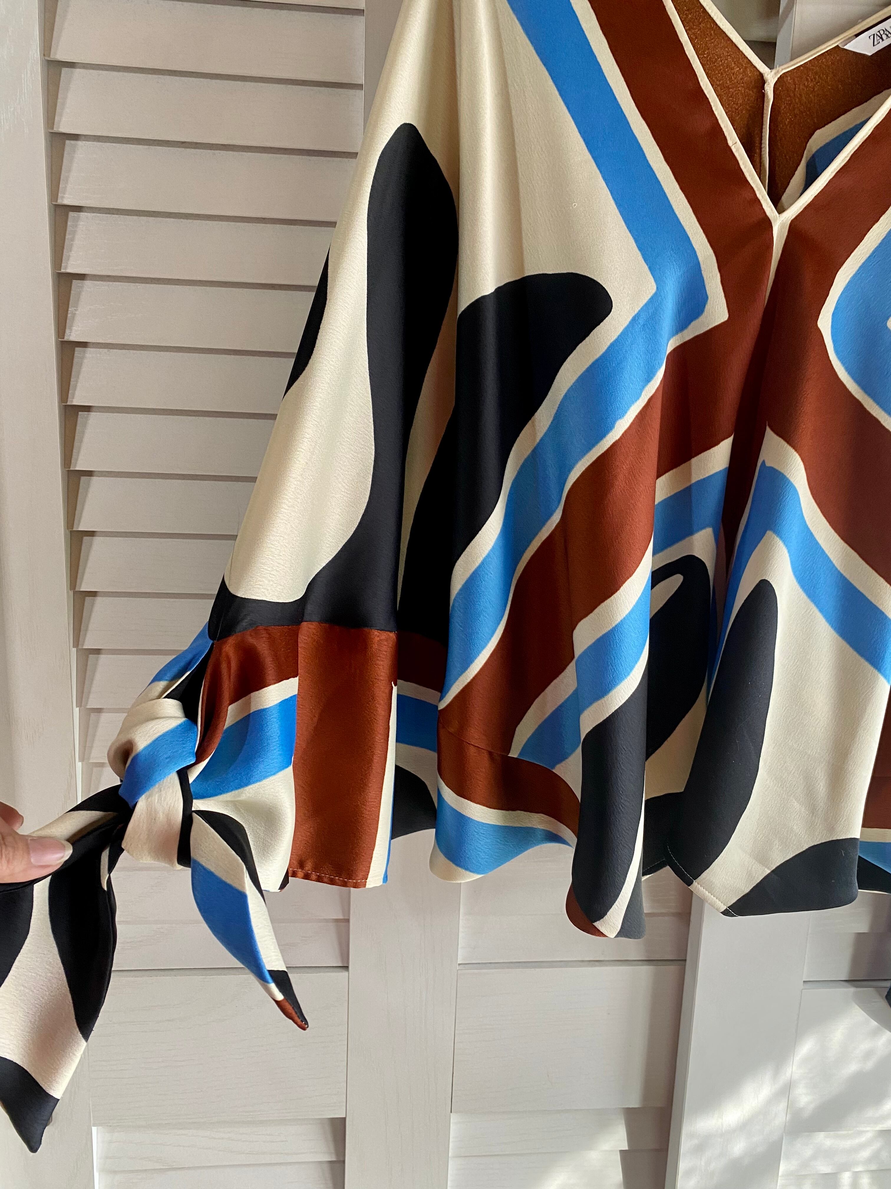 #169 ZARA ユニオンジャック スカーフプリント サテン変形ブラウス アイボリー | お洋服屋さん 『GOKKO』