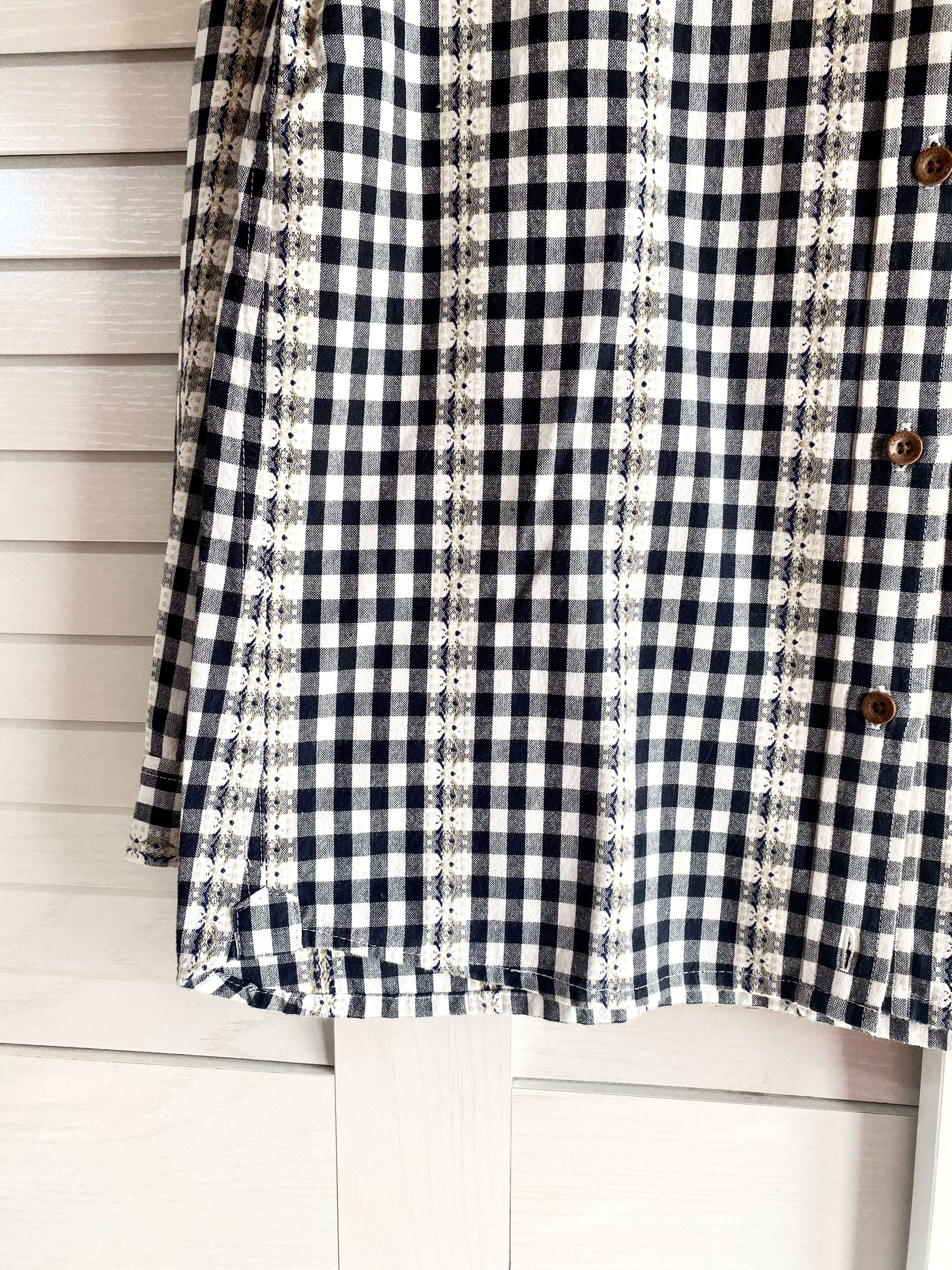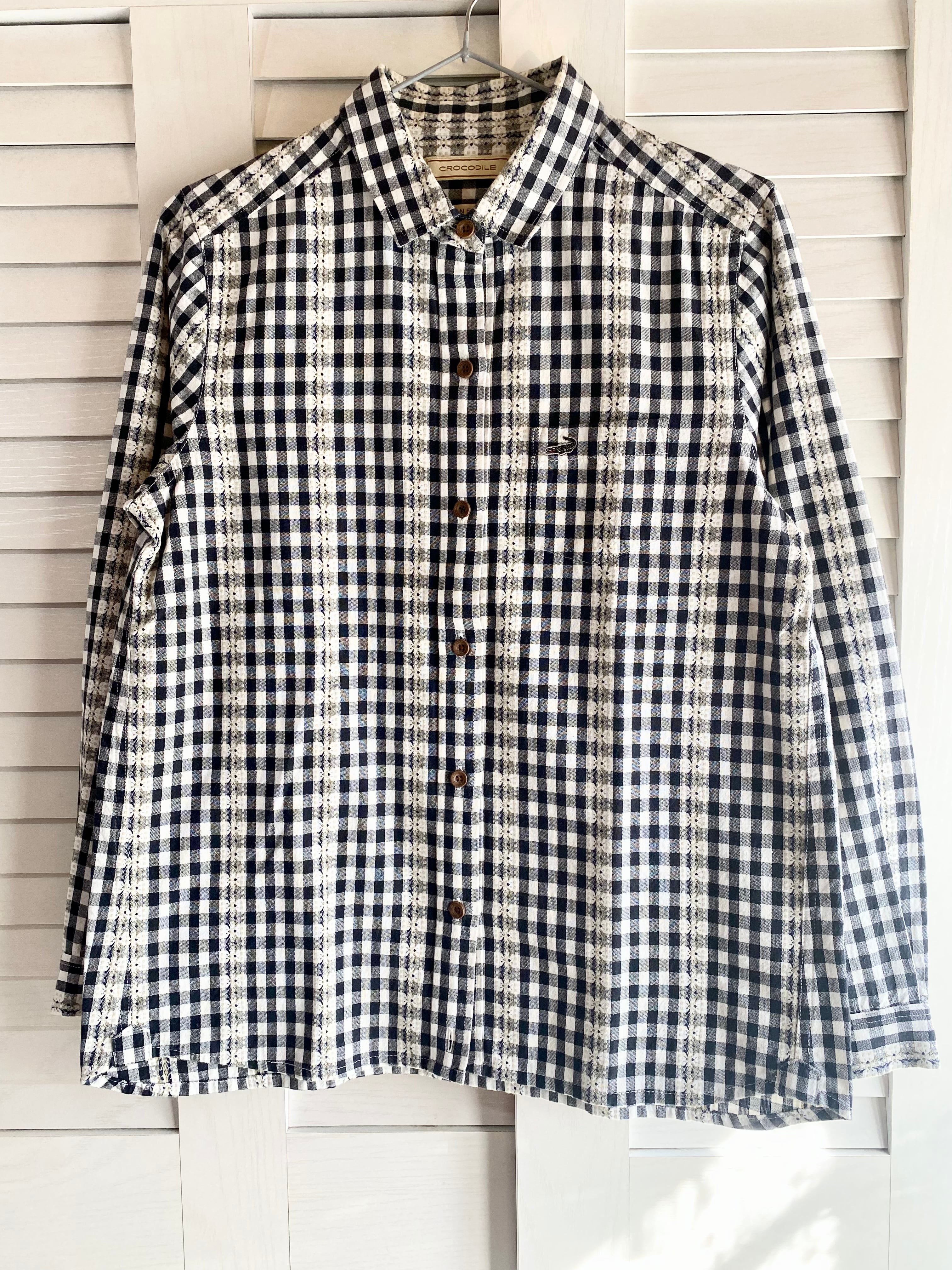 #170 CROCODILE チロリアンギンガムチェック JAPAN FABLIC コットンシャツブラウス ブラック