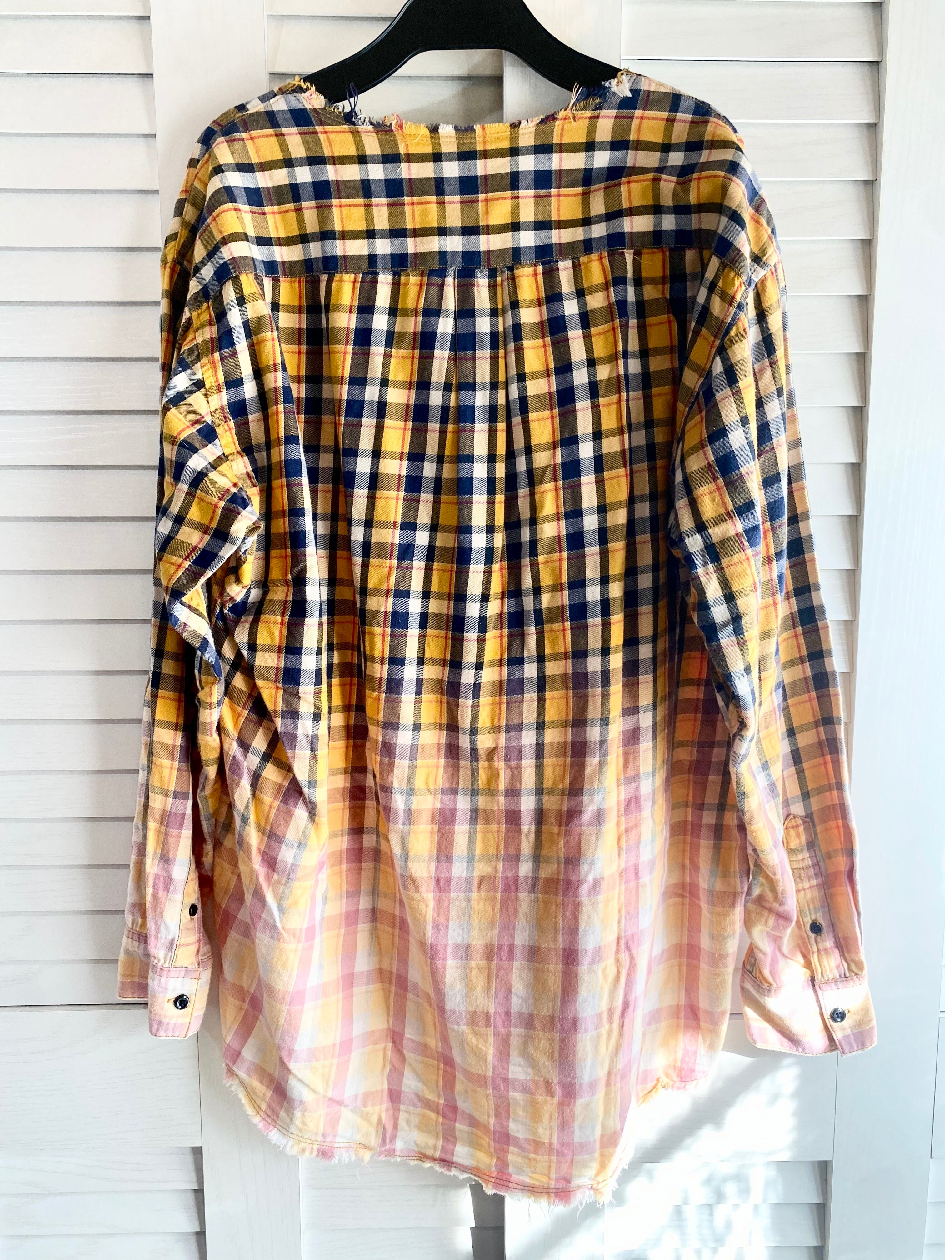 #170 UNSTUDIED グラデーション先染めチェック ノーカラーコットンシャツ イエロー