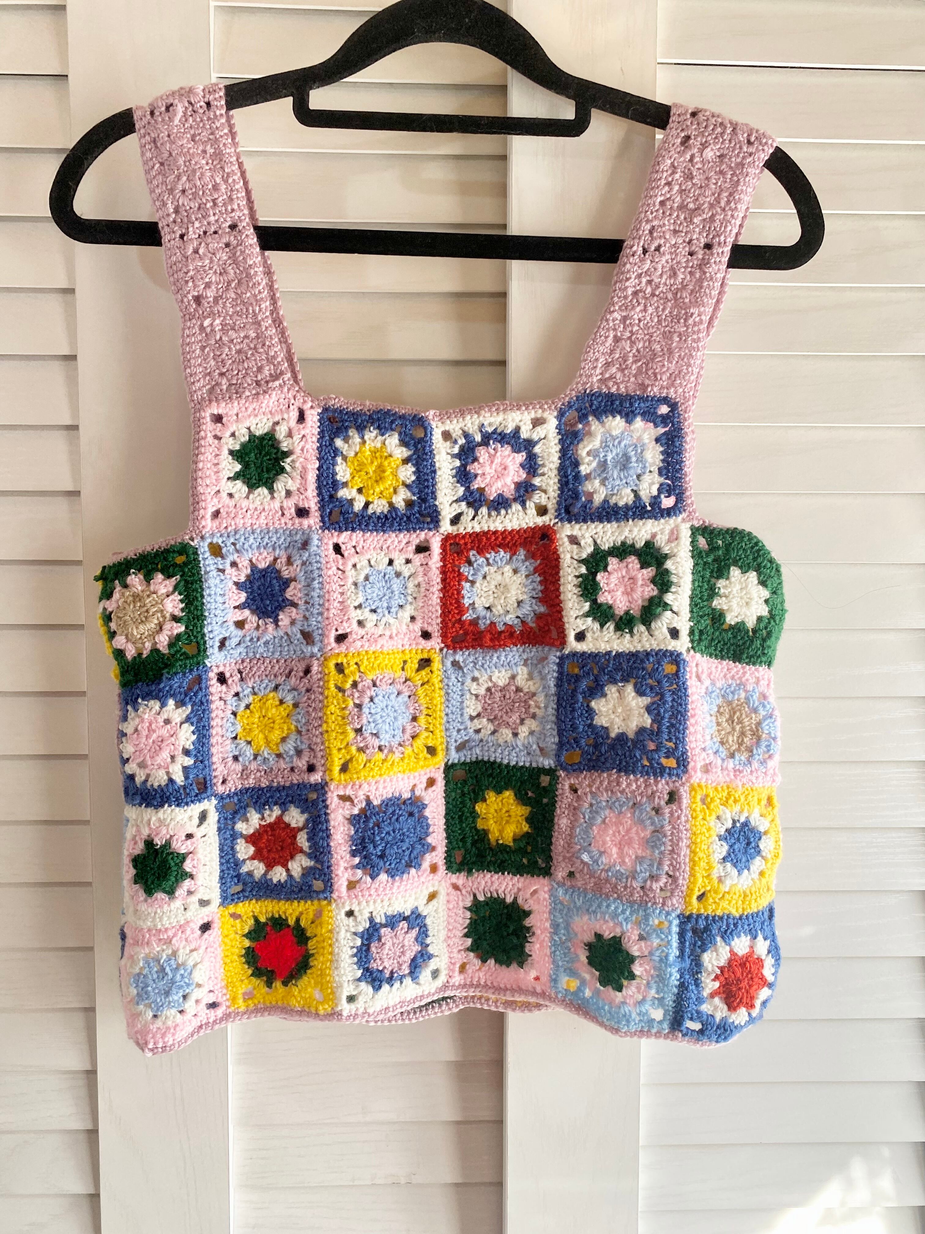 #170【デザインサンプル】カギ編みモチーフニットベスト サーモンピンク | お洋服屋さん 『GOKKO』