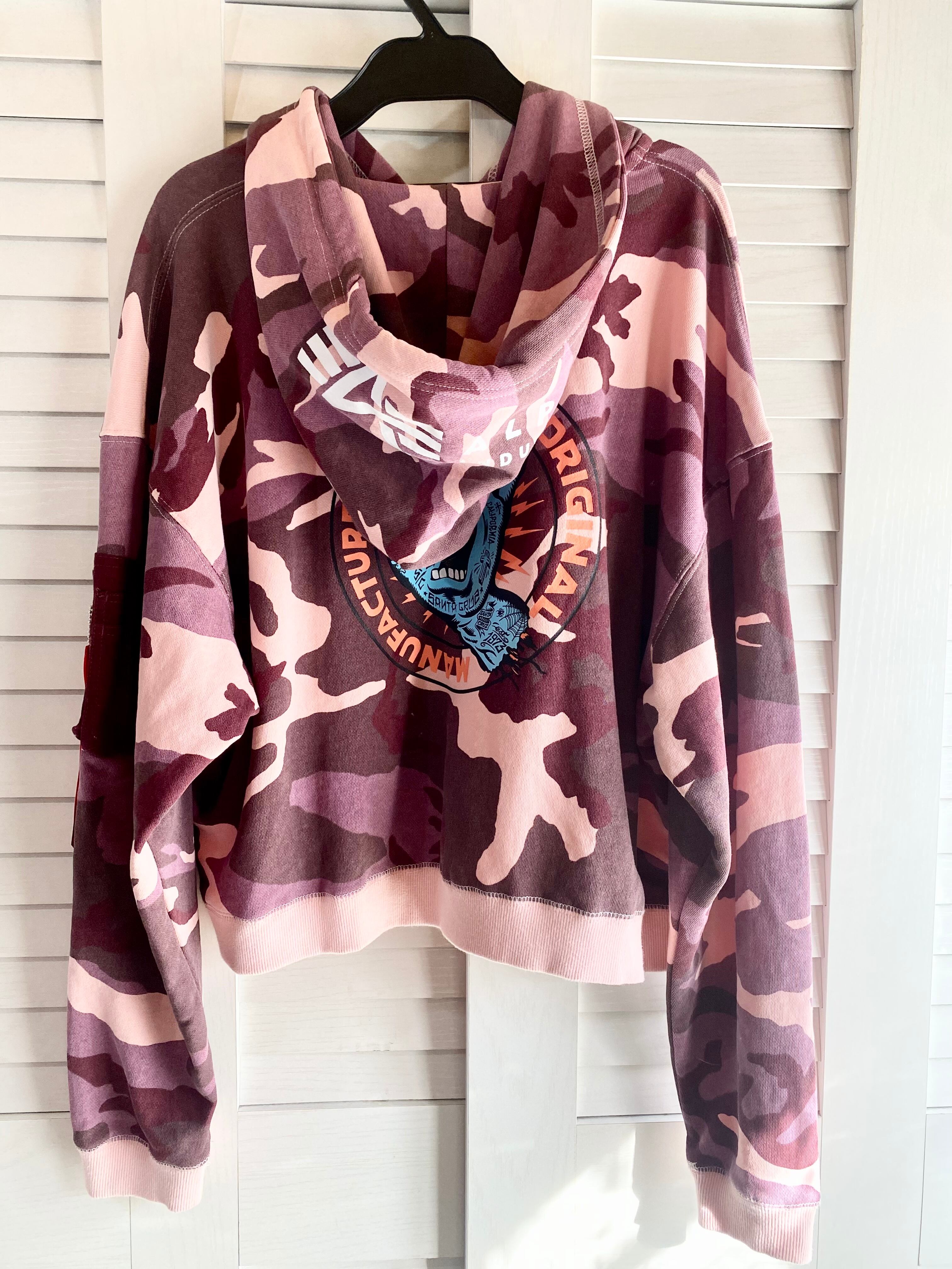 専用◎#170 ALPHA INDUSTRIES スラッシャープリント MA-1モチーフ オーバーサイズ迷彩ショート丈スウェットパーカー ピンク