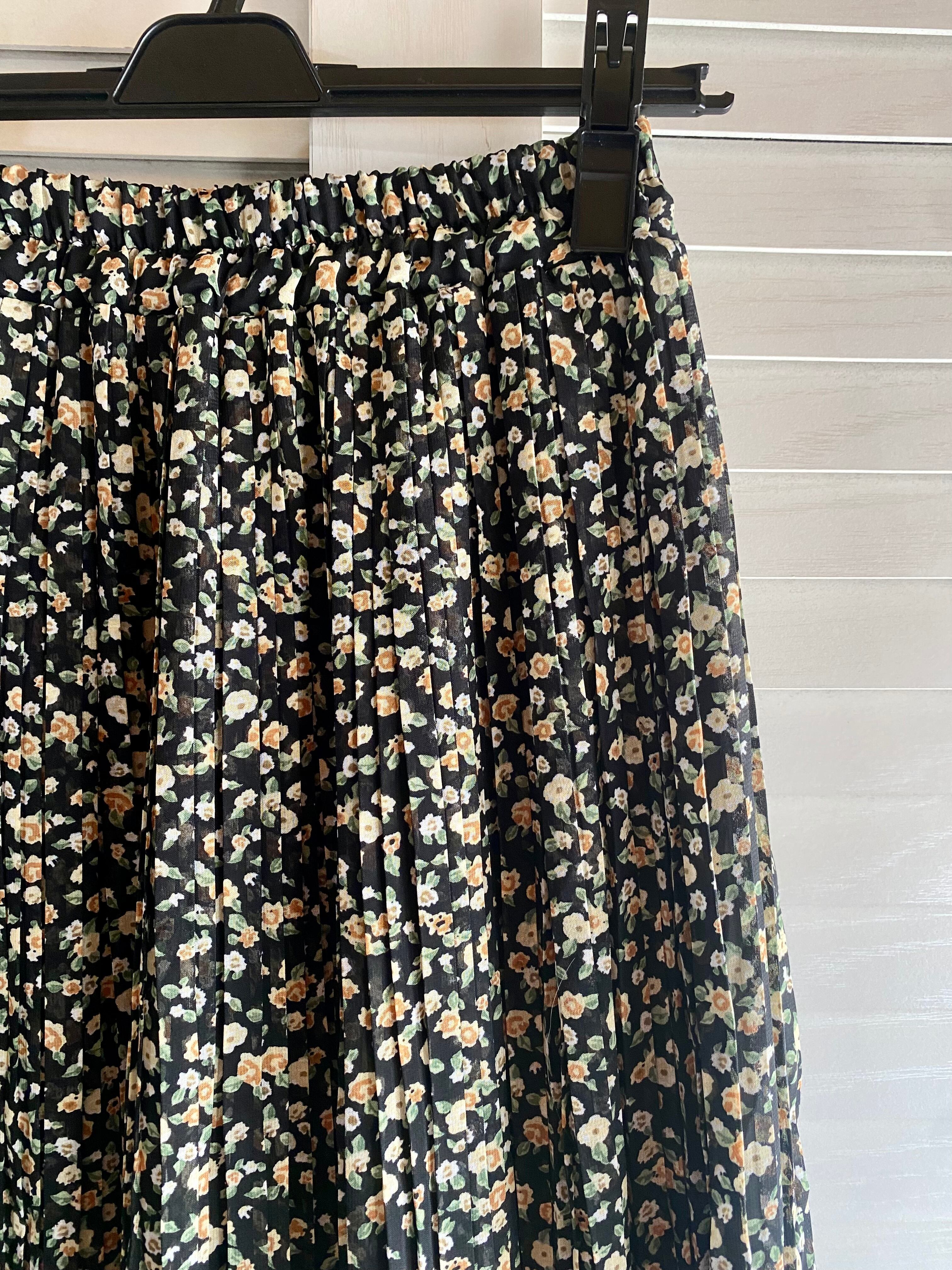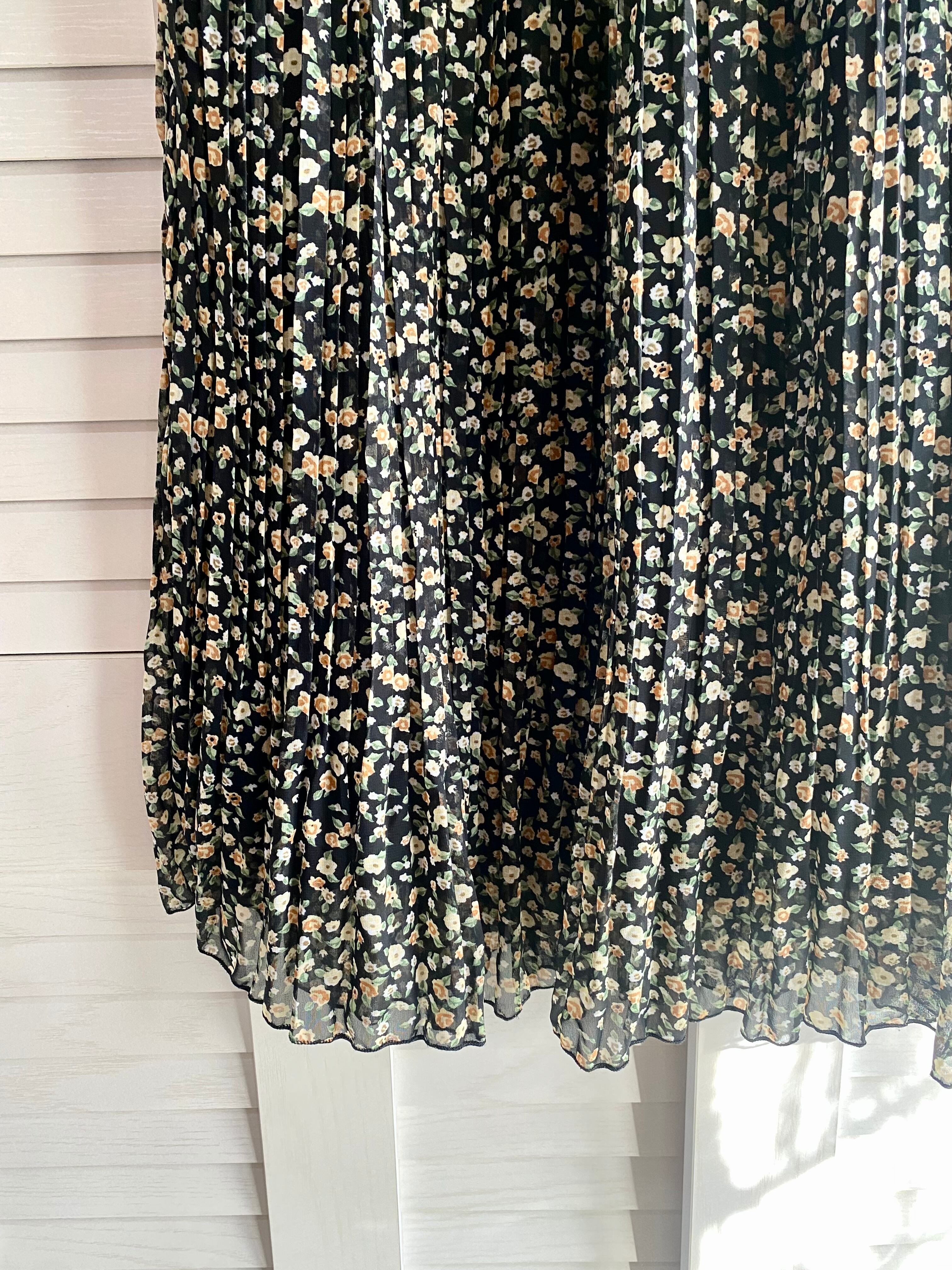 #170 WEGO 小花柄ジョーゼット ランダムプリーツスカート ブラック