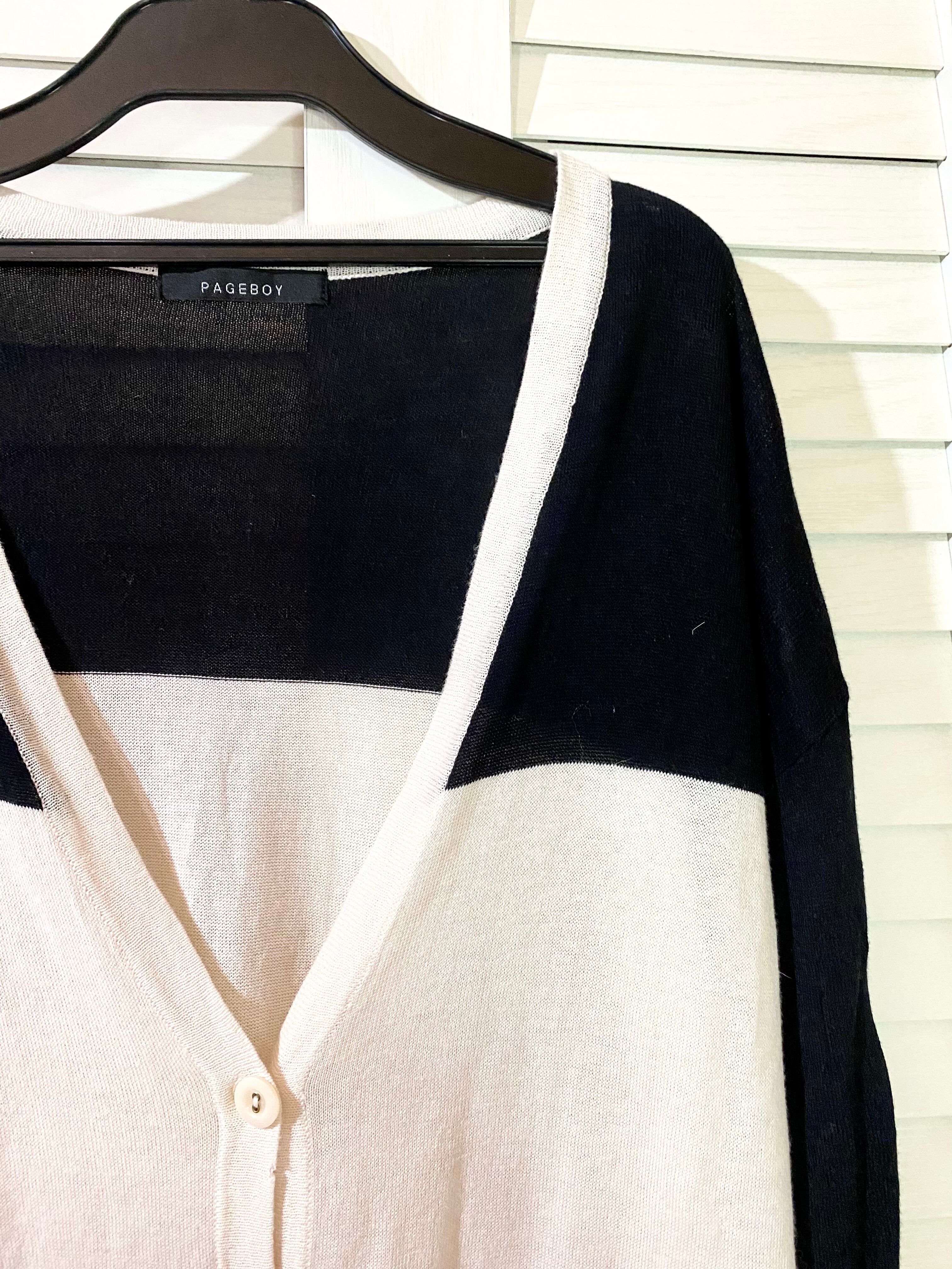 #171 PAGEBOY 配色カラー コットンレーヨンニットカーデ アイボリー×ブラック×イエロー