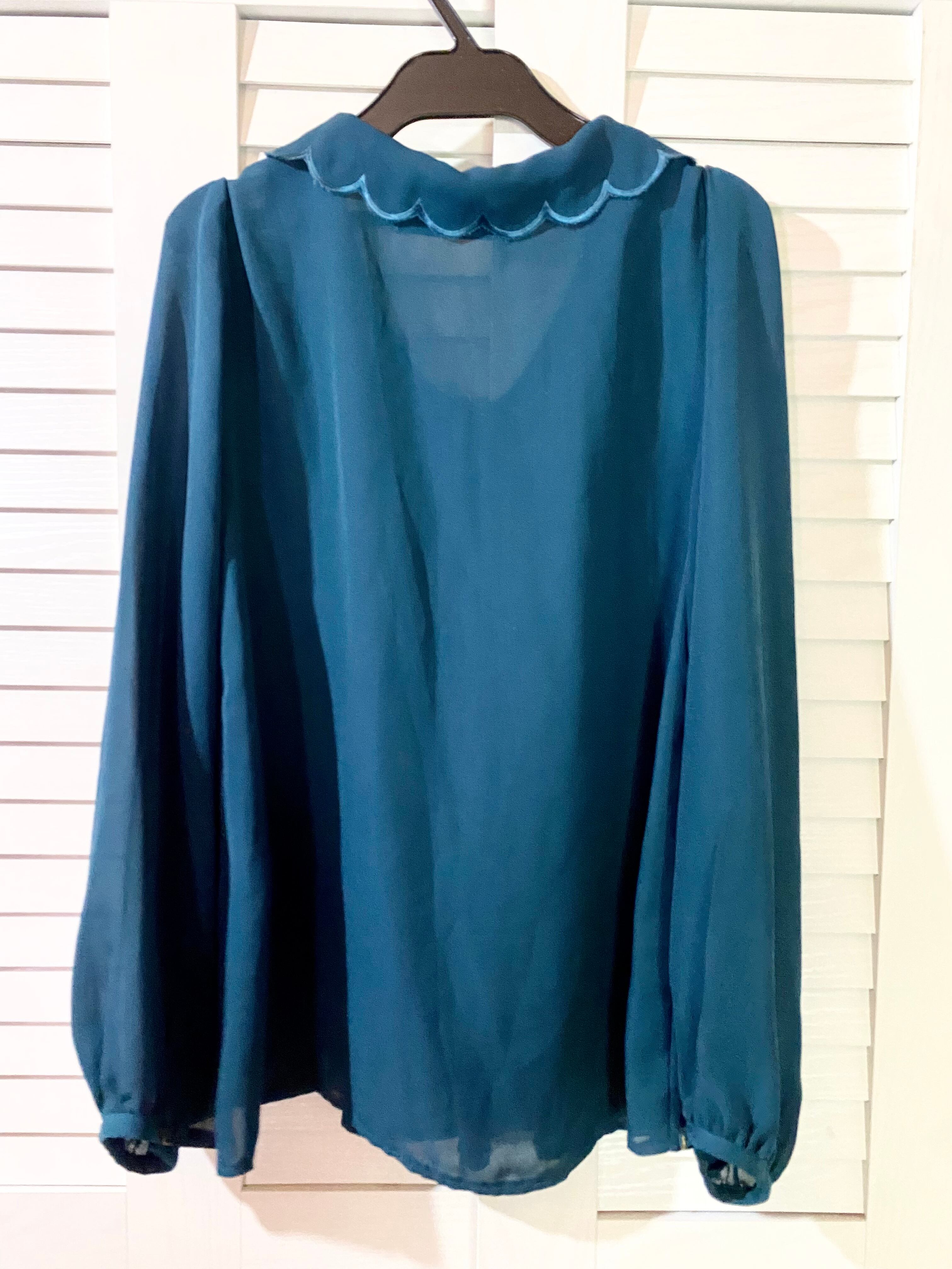 #171 Heather フラワースカラップカラー ピンタック ジョーゼットブラウス ターコイズブルー