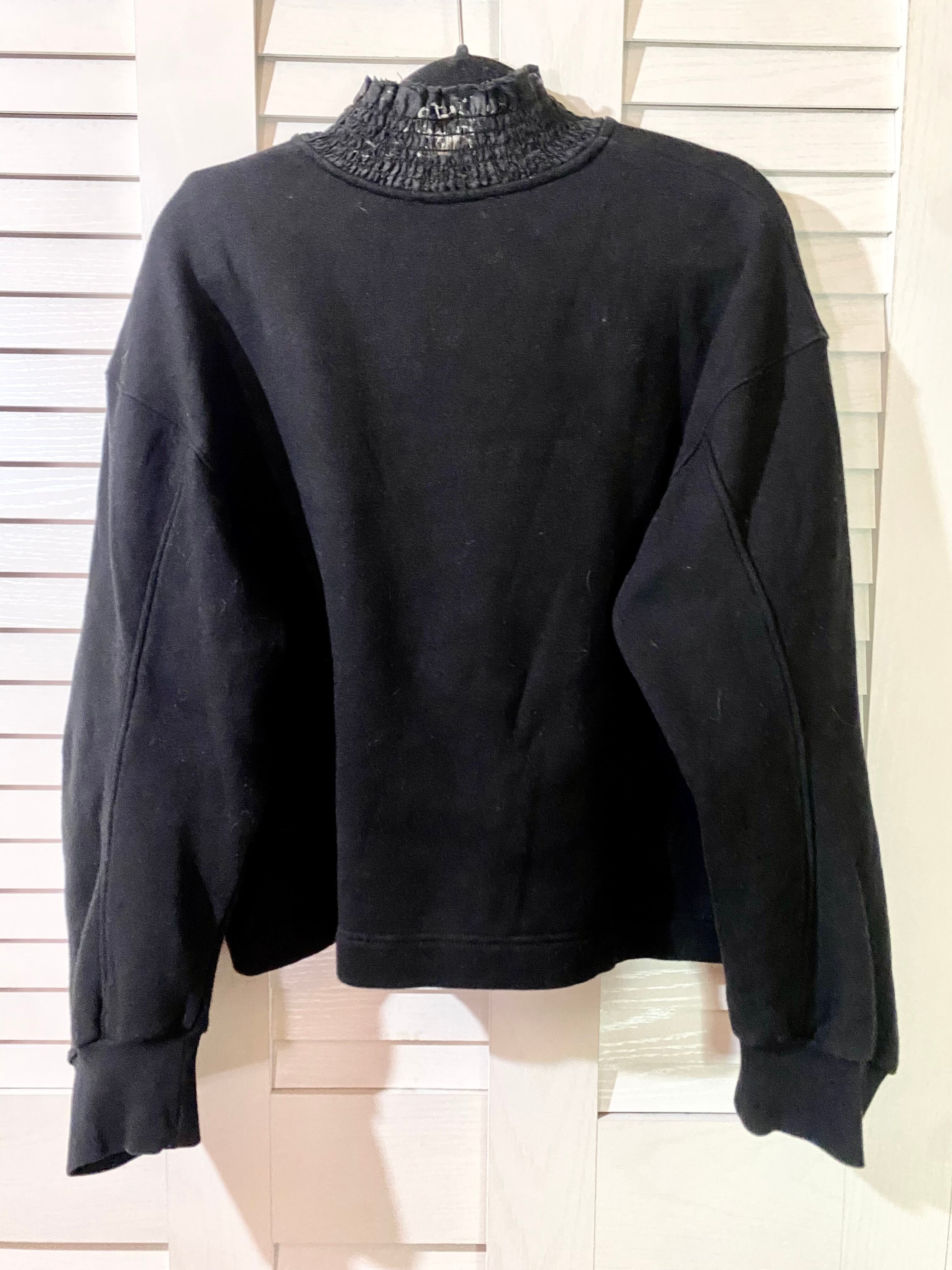 #171 ZARA オーガンジーシャーリングカラー 立体ギャザースリーブ ショート丈スウェット ブラック
