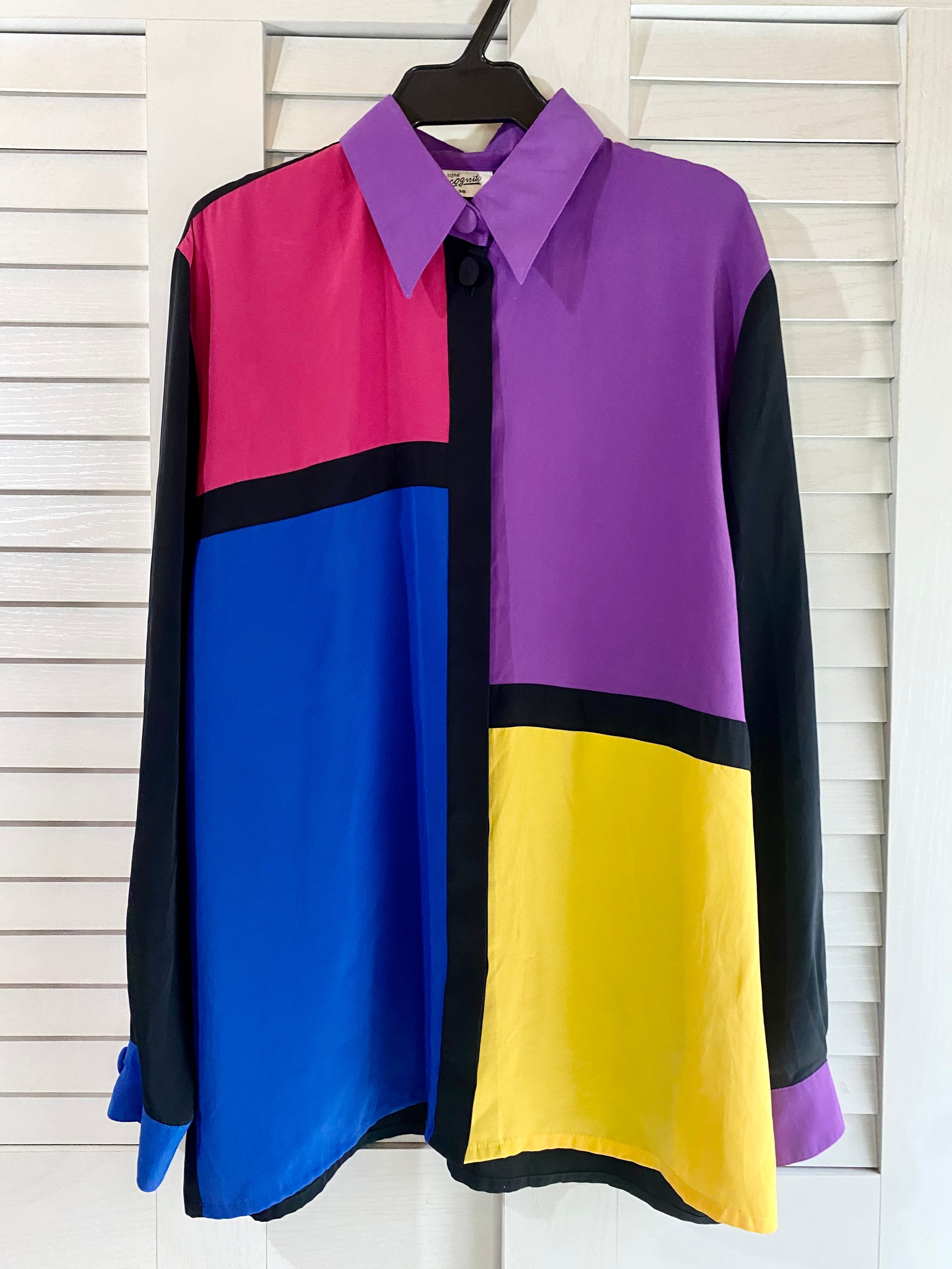 #173【古着屋購入】モンドリアンデザイン オーバーサイズブラウス マルチカラー | お洋服屋さん 『GOKKO』