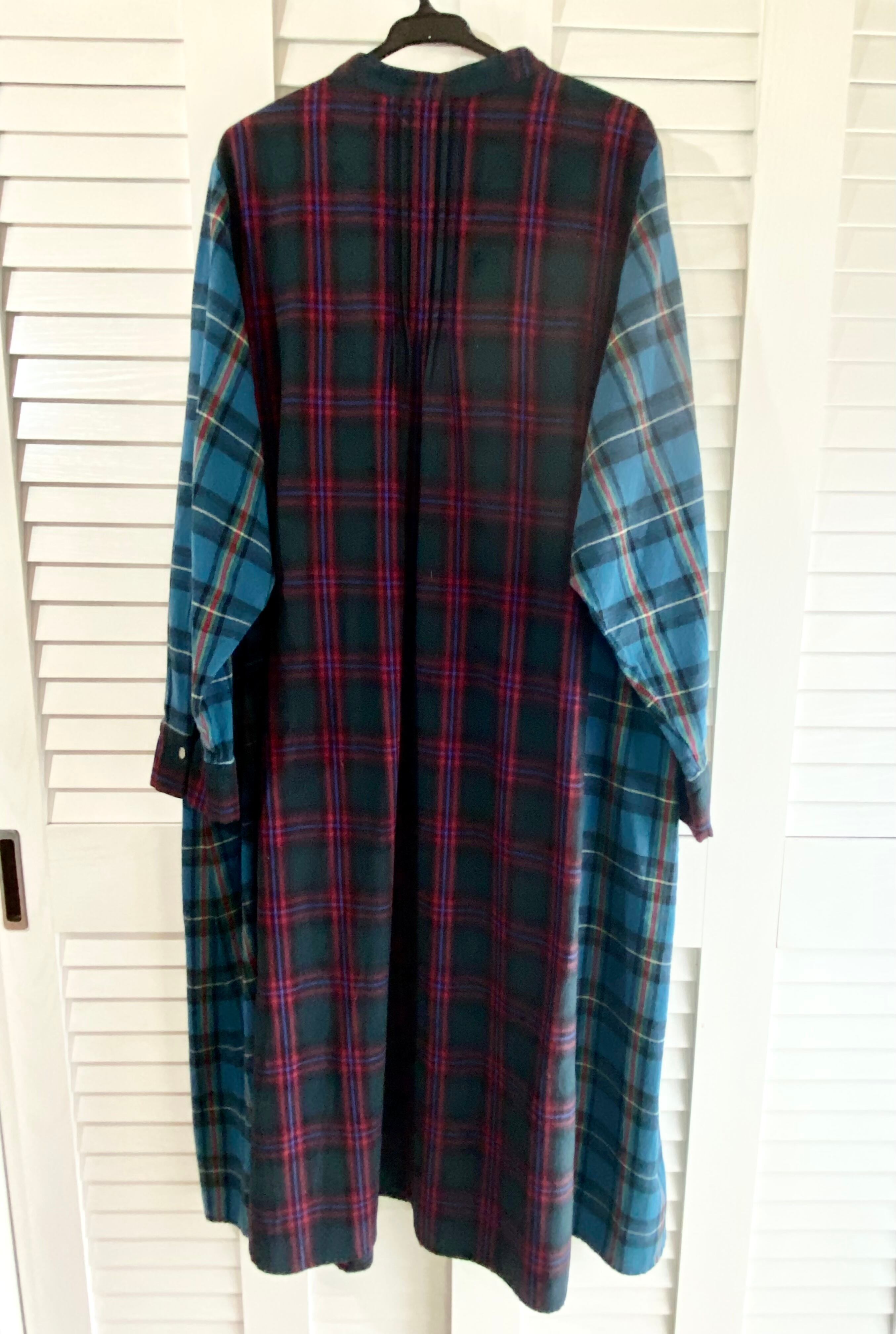 #173 as know as クレイジーパターン フランネルチェック オーバーサイズロングワンピ グリーン×ブルー