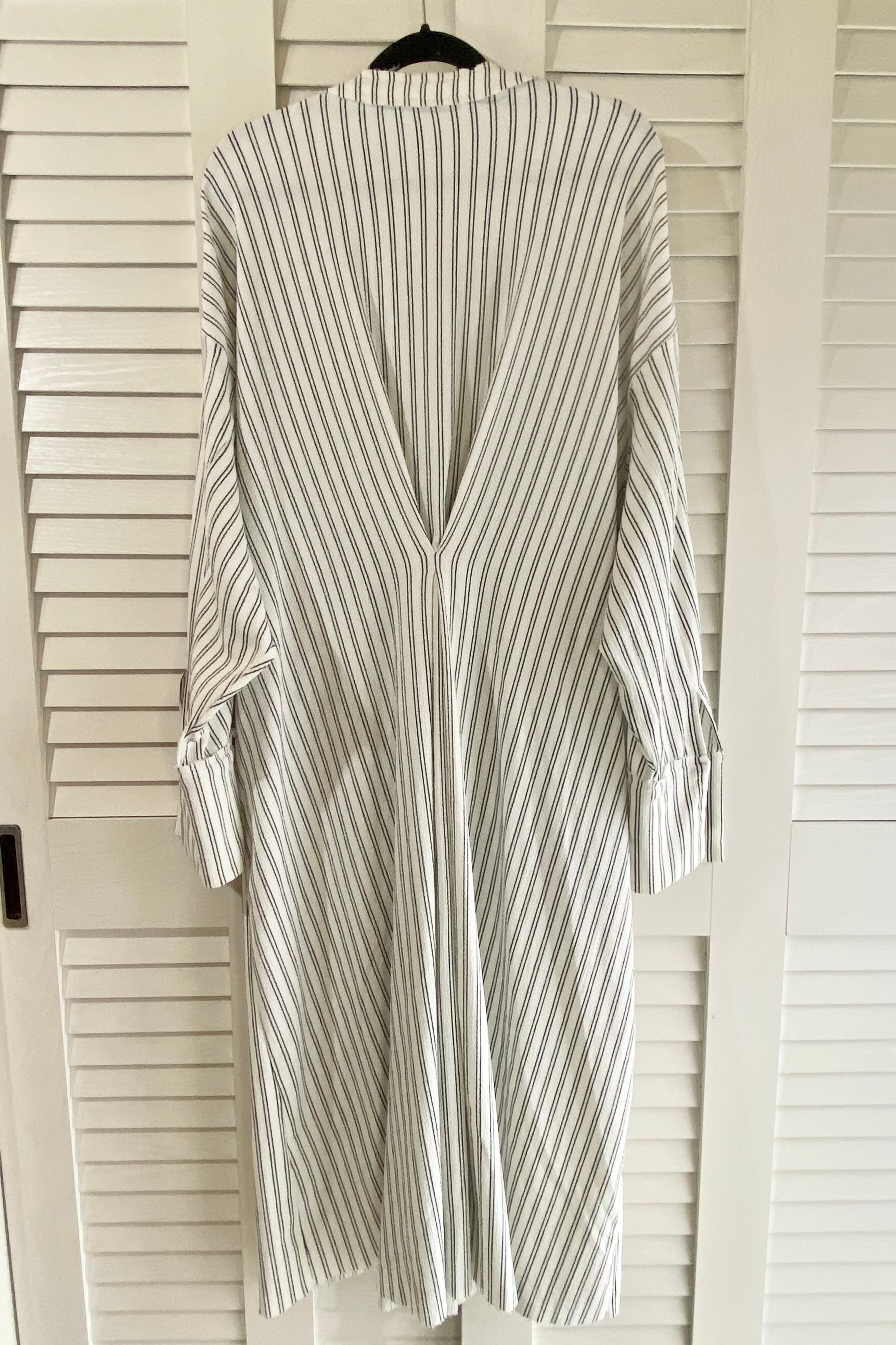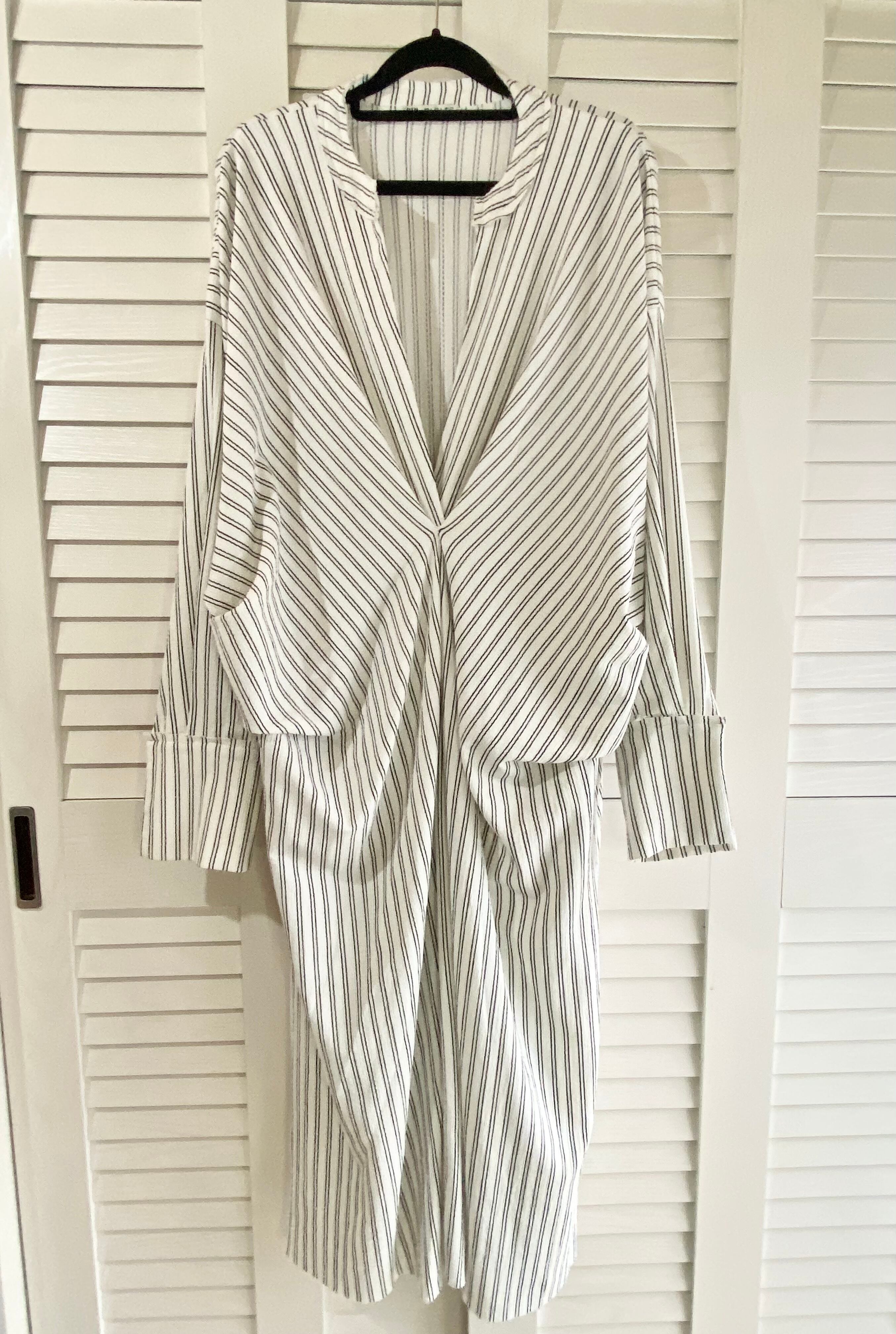 専用◎#173 ZARA ストレッチ楊柳ペンシルストライプ ドレーピングデザインワンピ オフホワイト