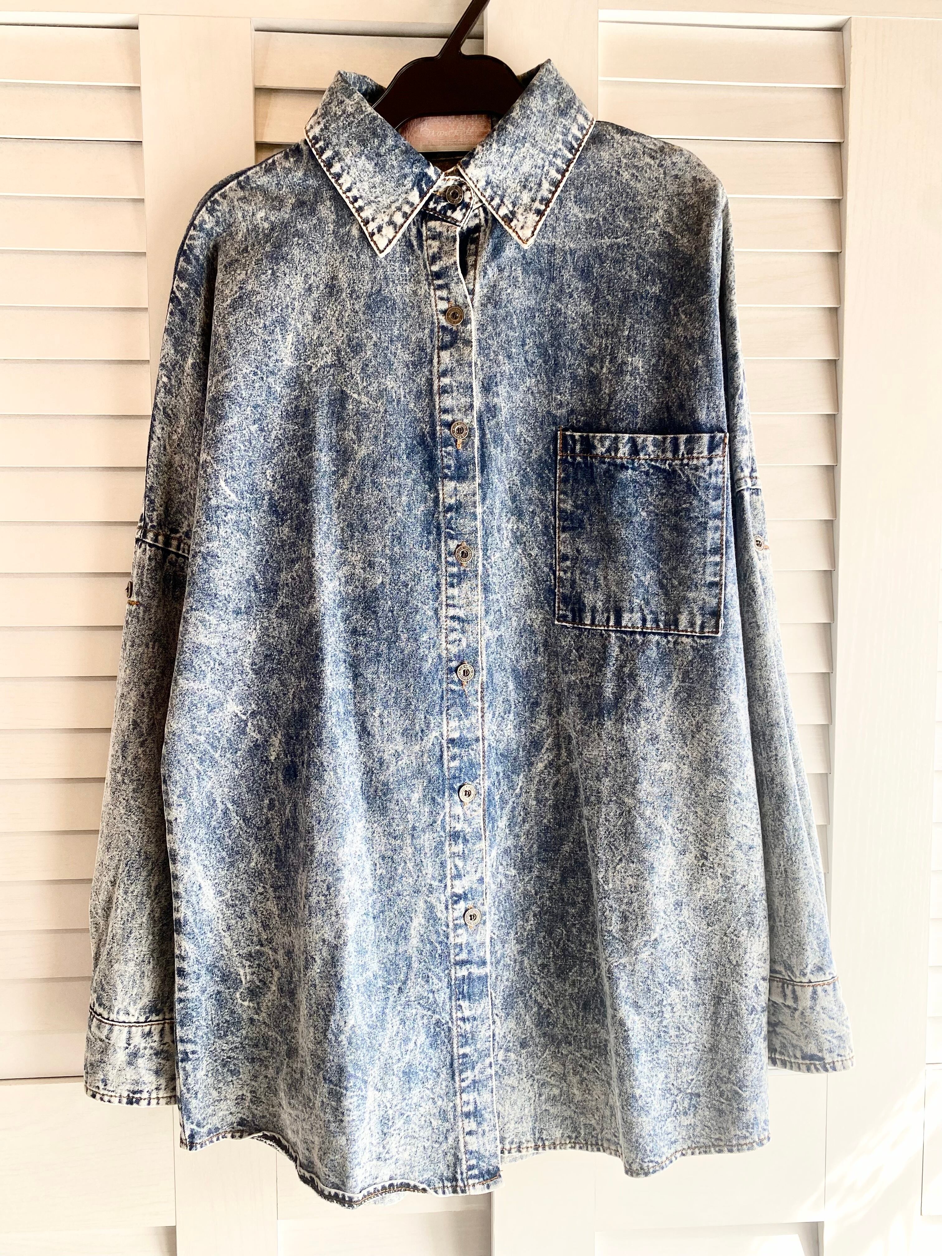 #174 Broncheit ケミカルデニム オーバーサイズシャツ ブルー | お洋服屋さん 『GOKKO』