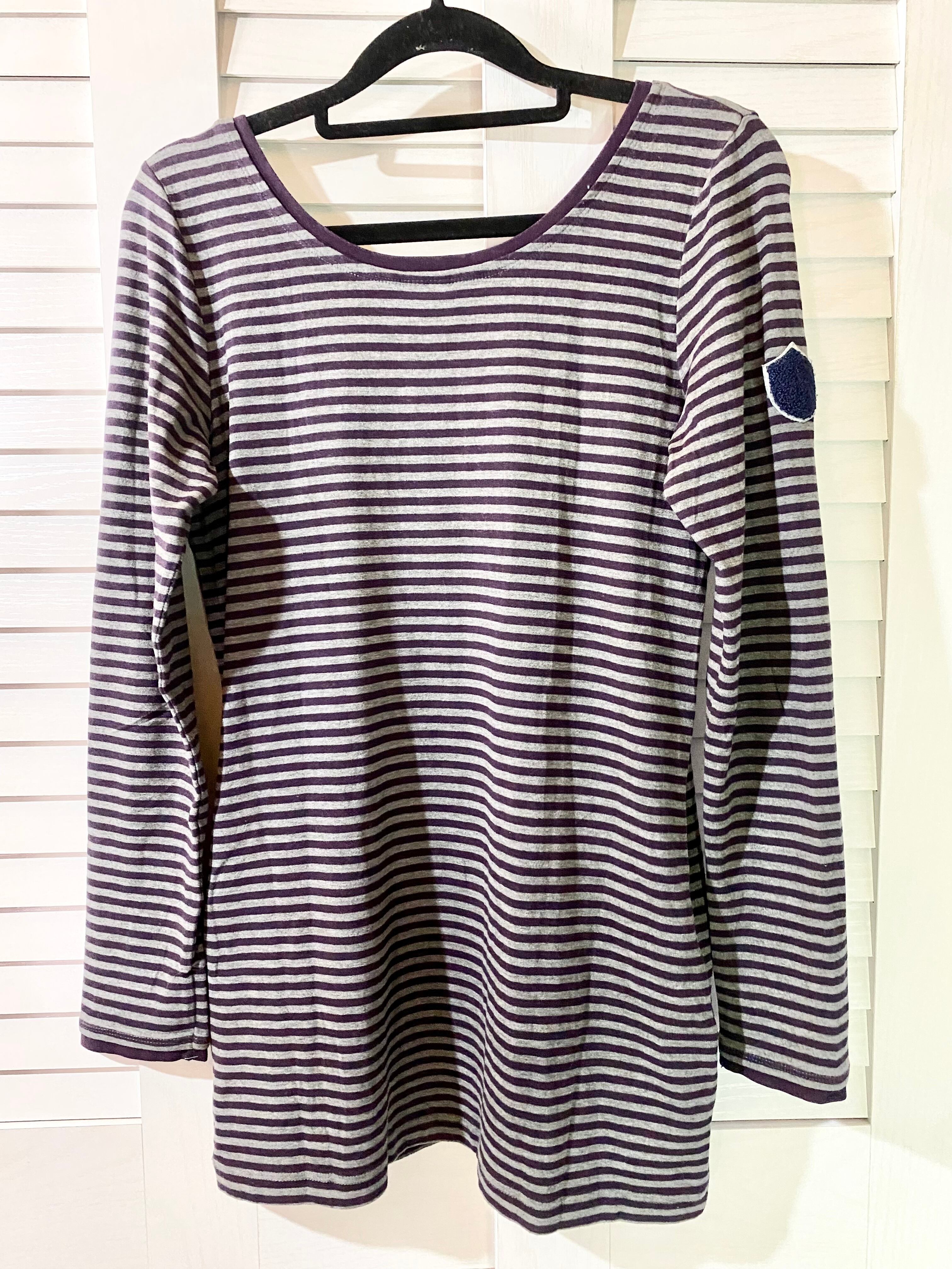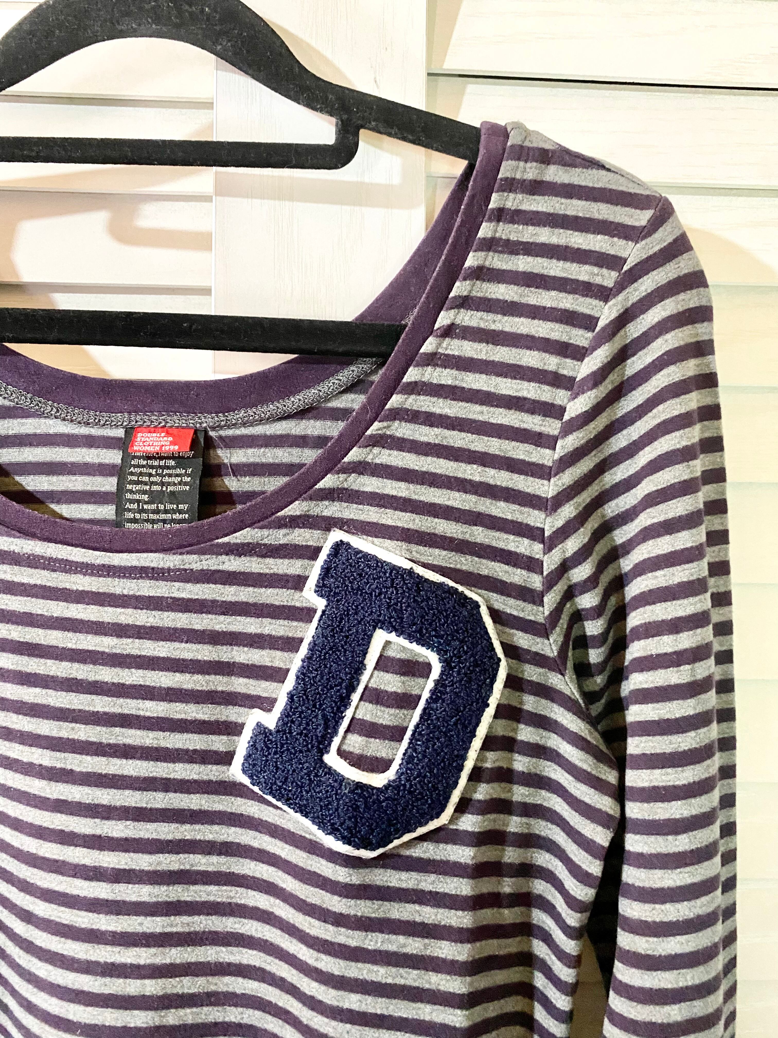 専用◎#175 DOUBLE STANDARD CLOTHING パッチドロゴ ボーダー長袖カットソー パープル×グレー