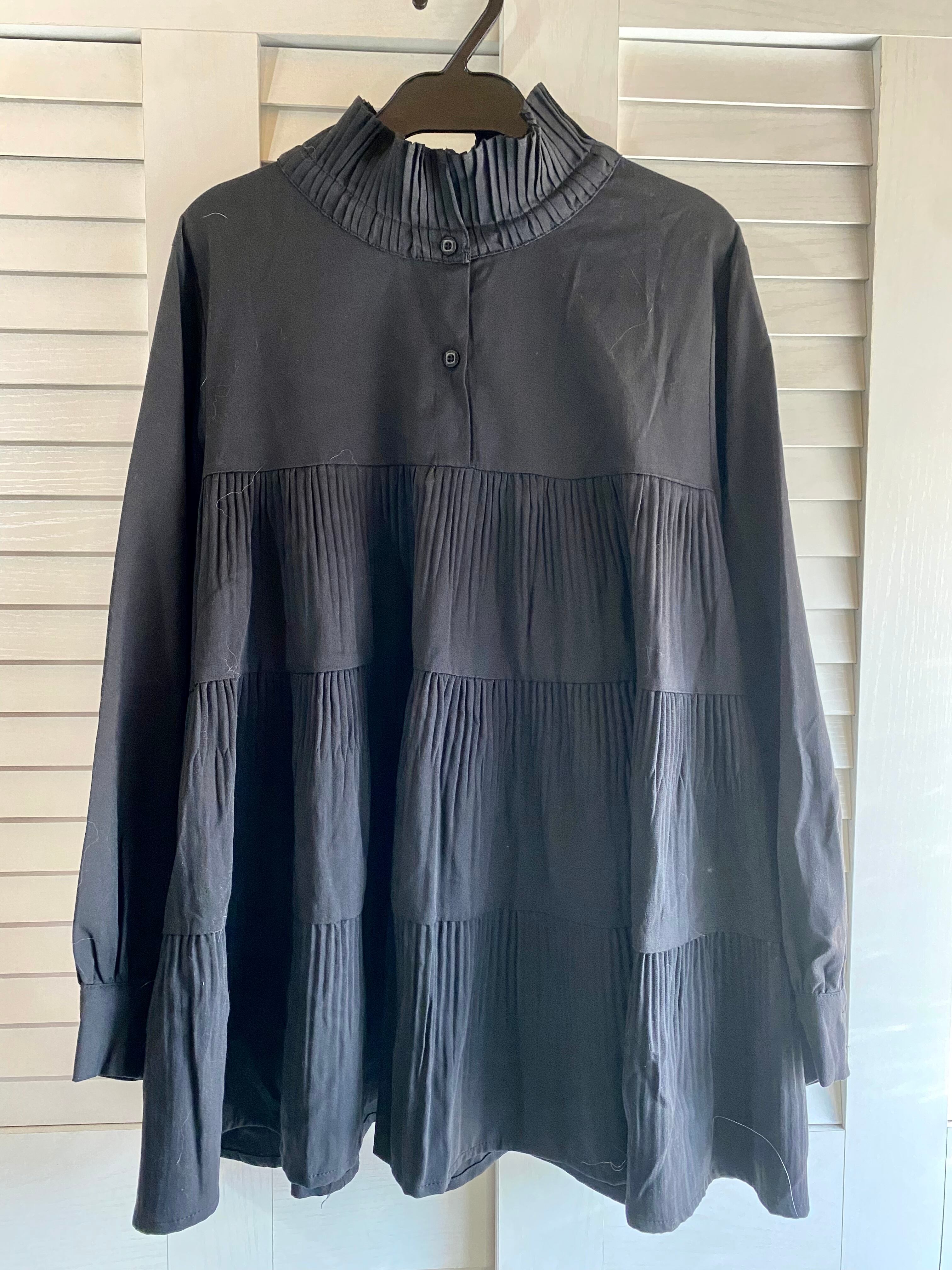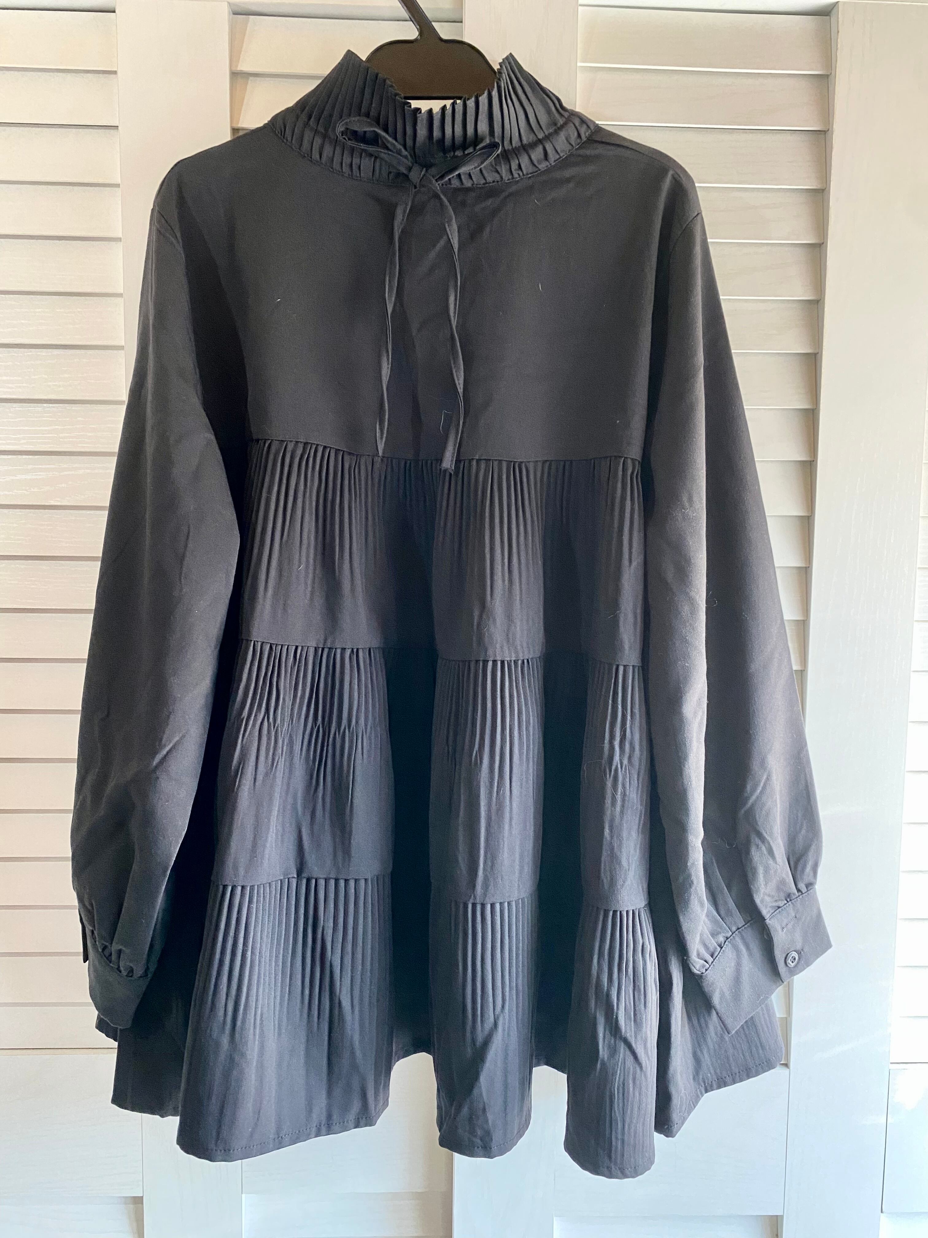 #178【デザインサンプル】プリーツティアードオーバーサイズチュニックワンピ ブラック