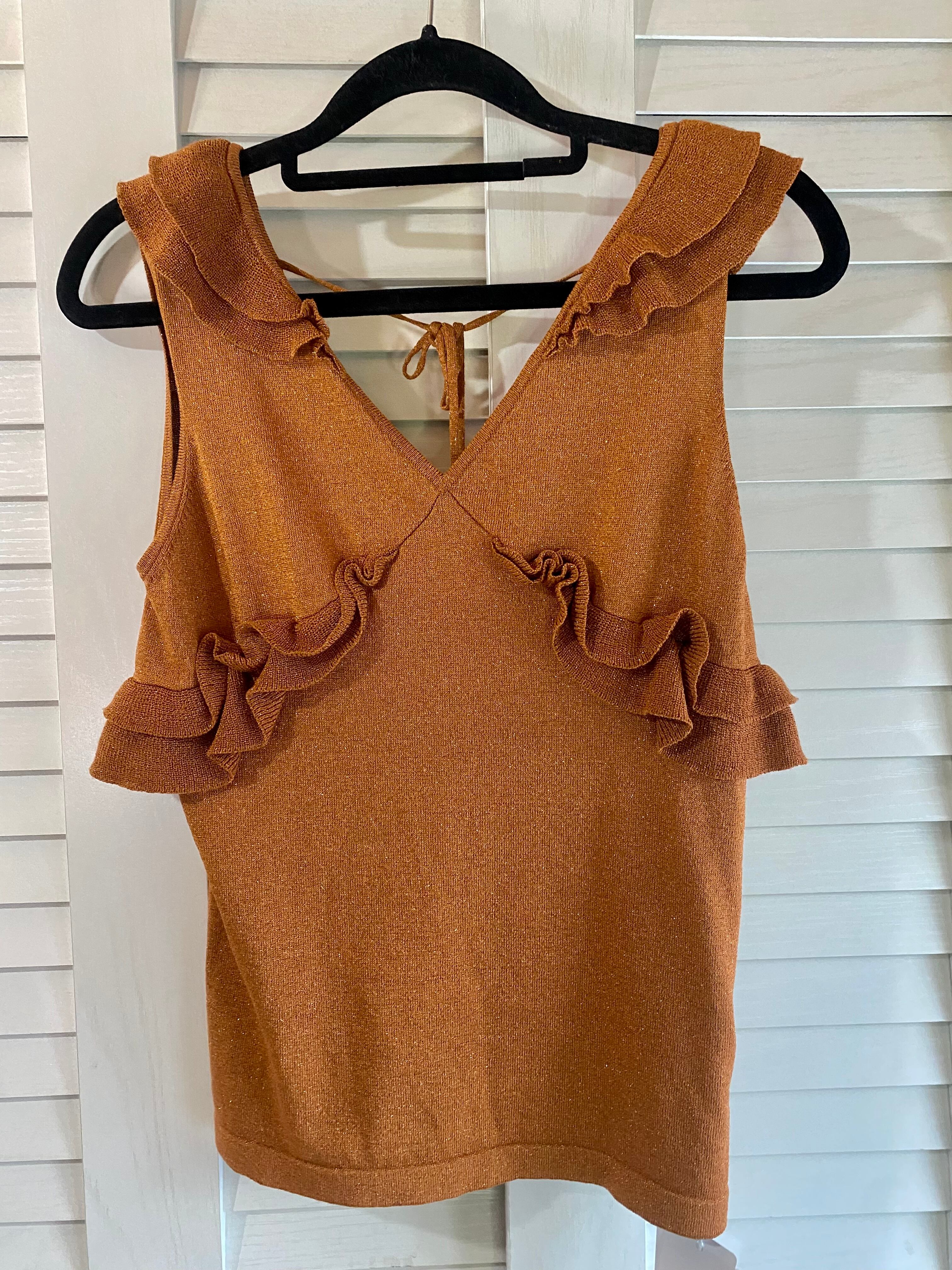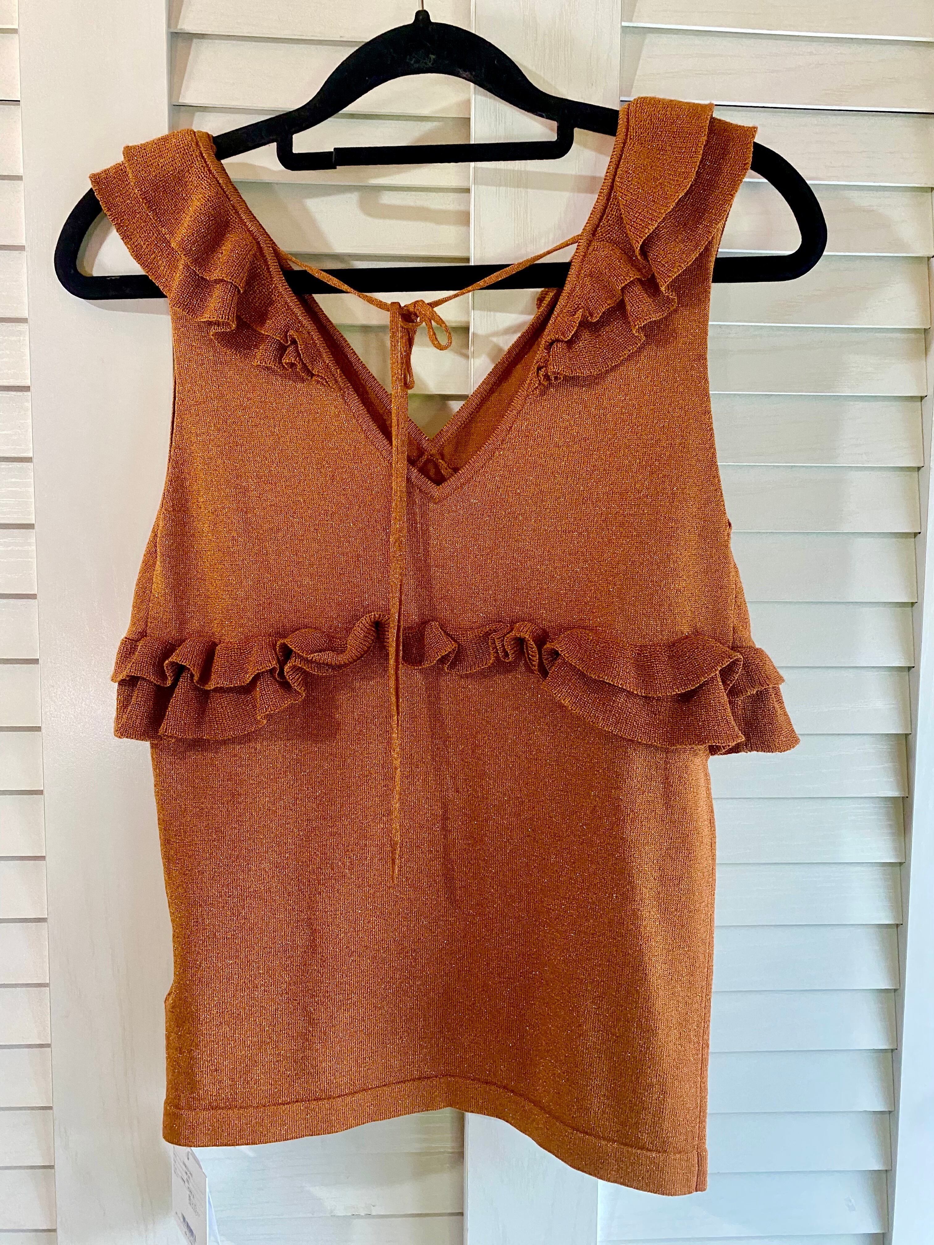 #179 SLY フリルデザイン レーヨンラメノースリーブニット テラコッタ