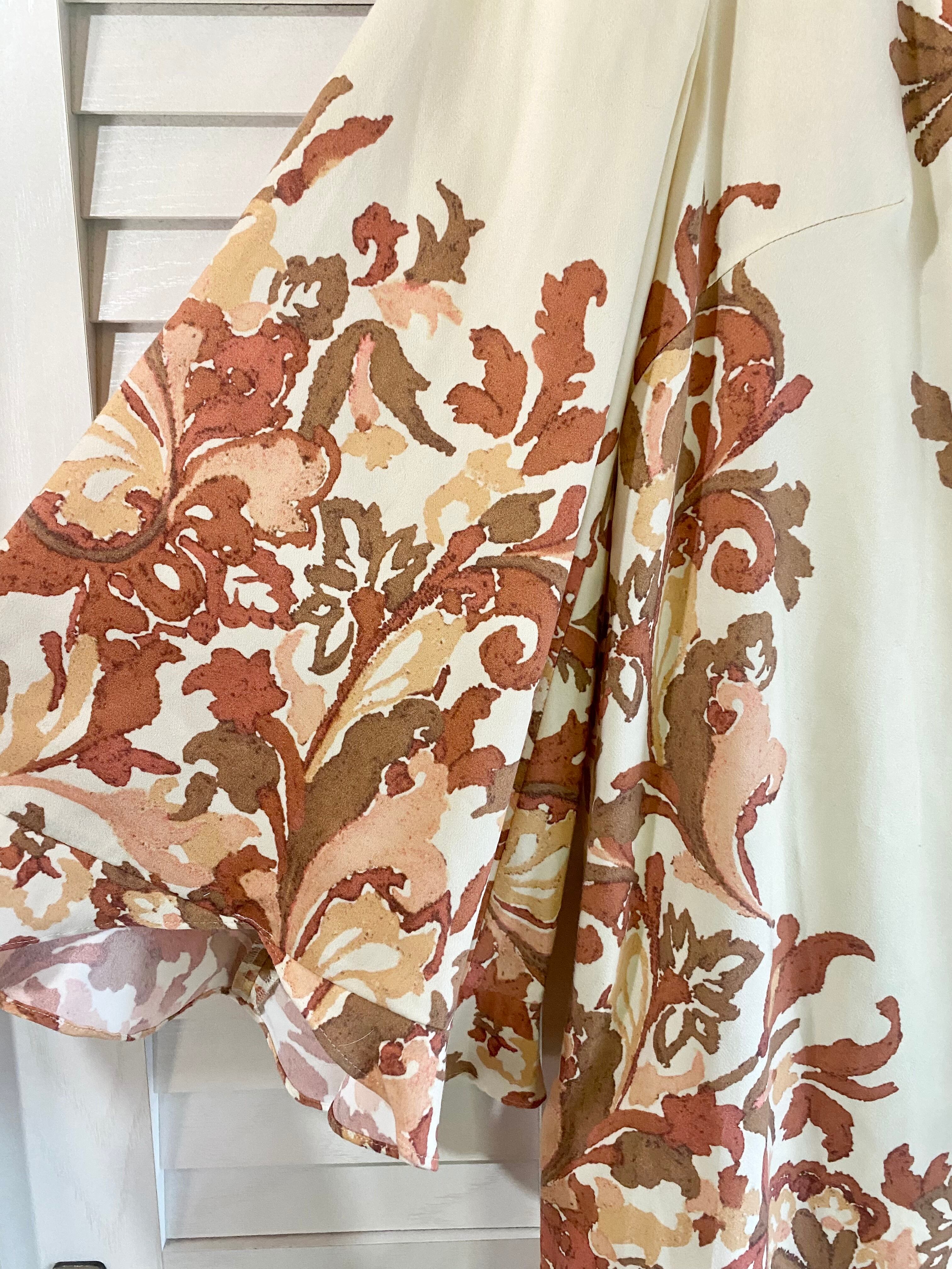 #179 GRACE CONTINENTAL フレアースリーブ ヴィンテージサテン パネルプリント チュニックワンピ アンティークベージュ