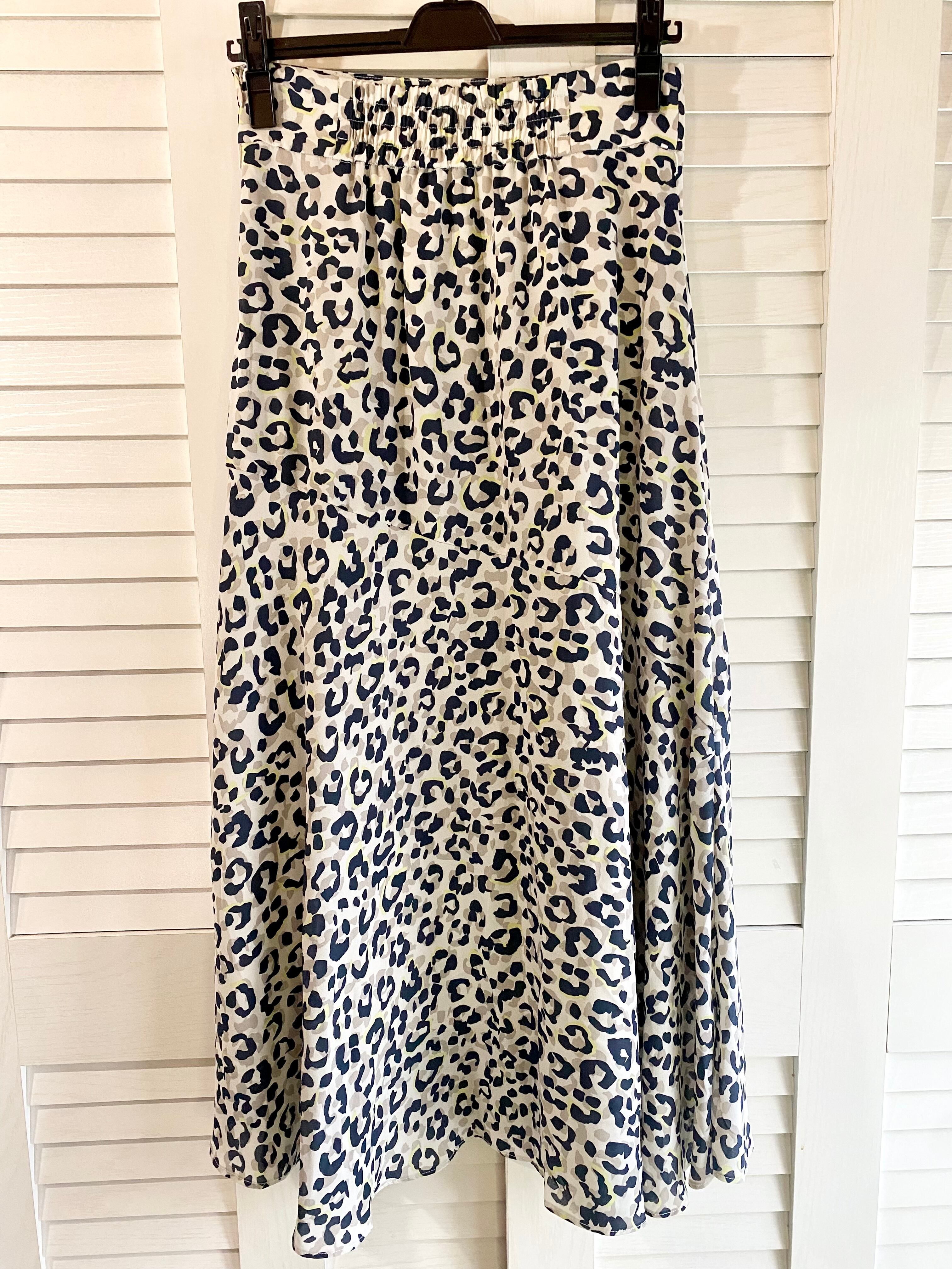 #179 Mila Owen ポップレオパード ハイウエスト シフォンフレアースカート ライトグレー