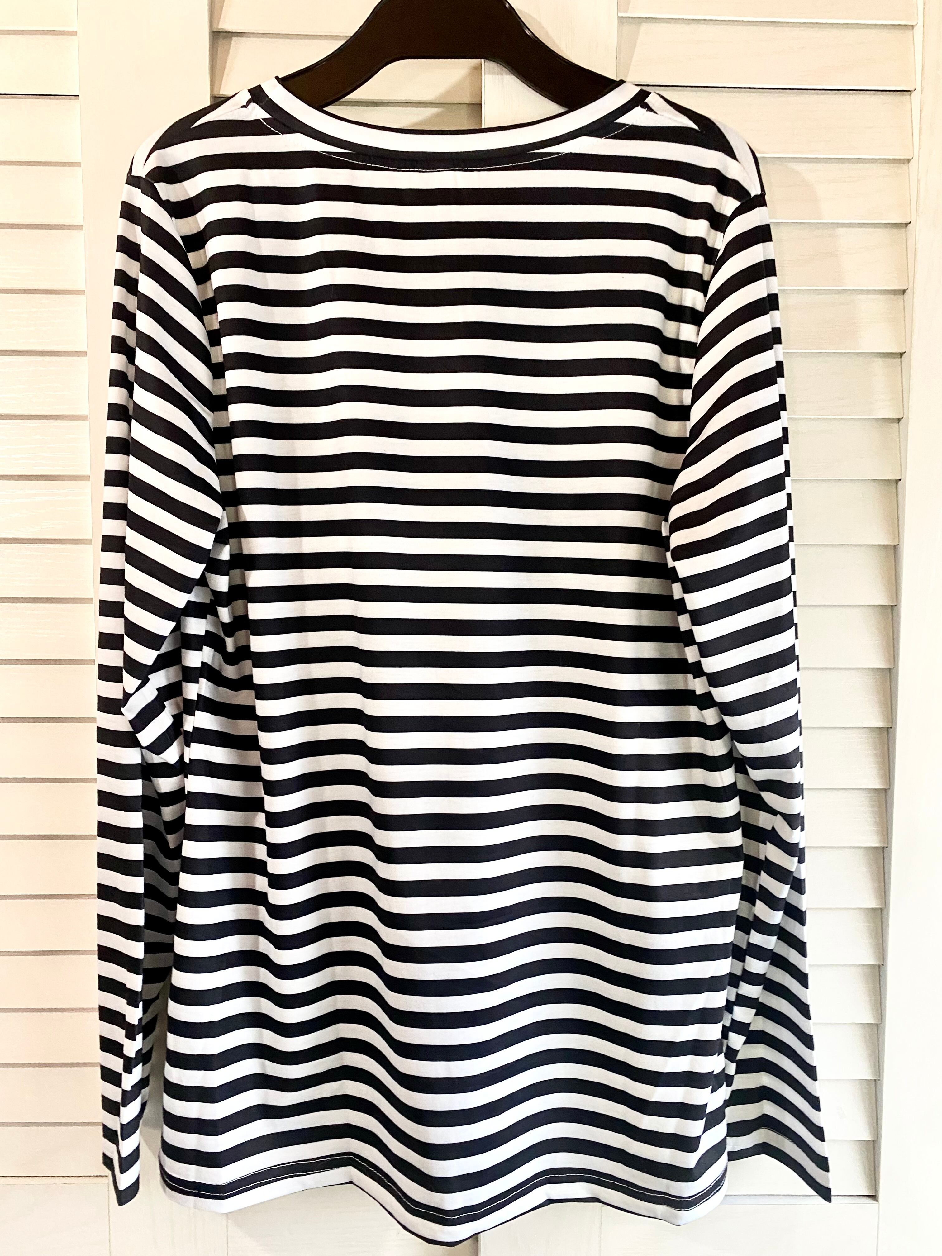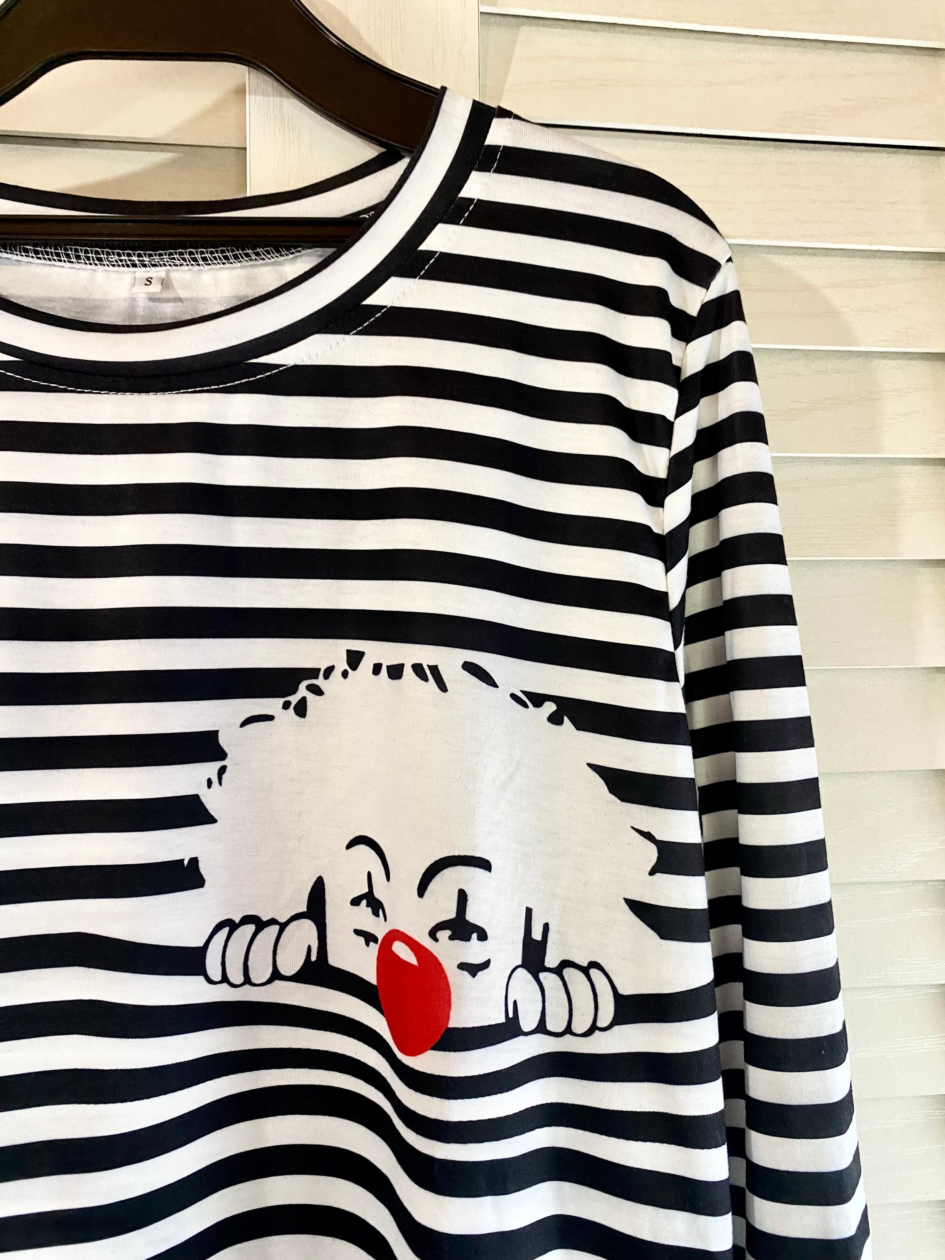 #179【デザインサンプル】ピエロプリント ボーダー長袖Tシャツ ネイビー | お洋服屋さん 『GOKKO』