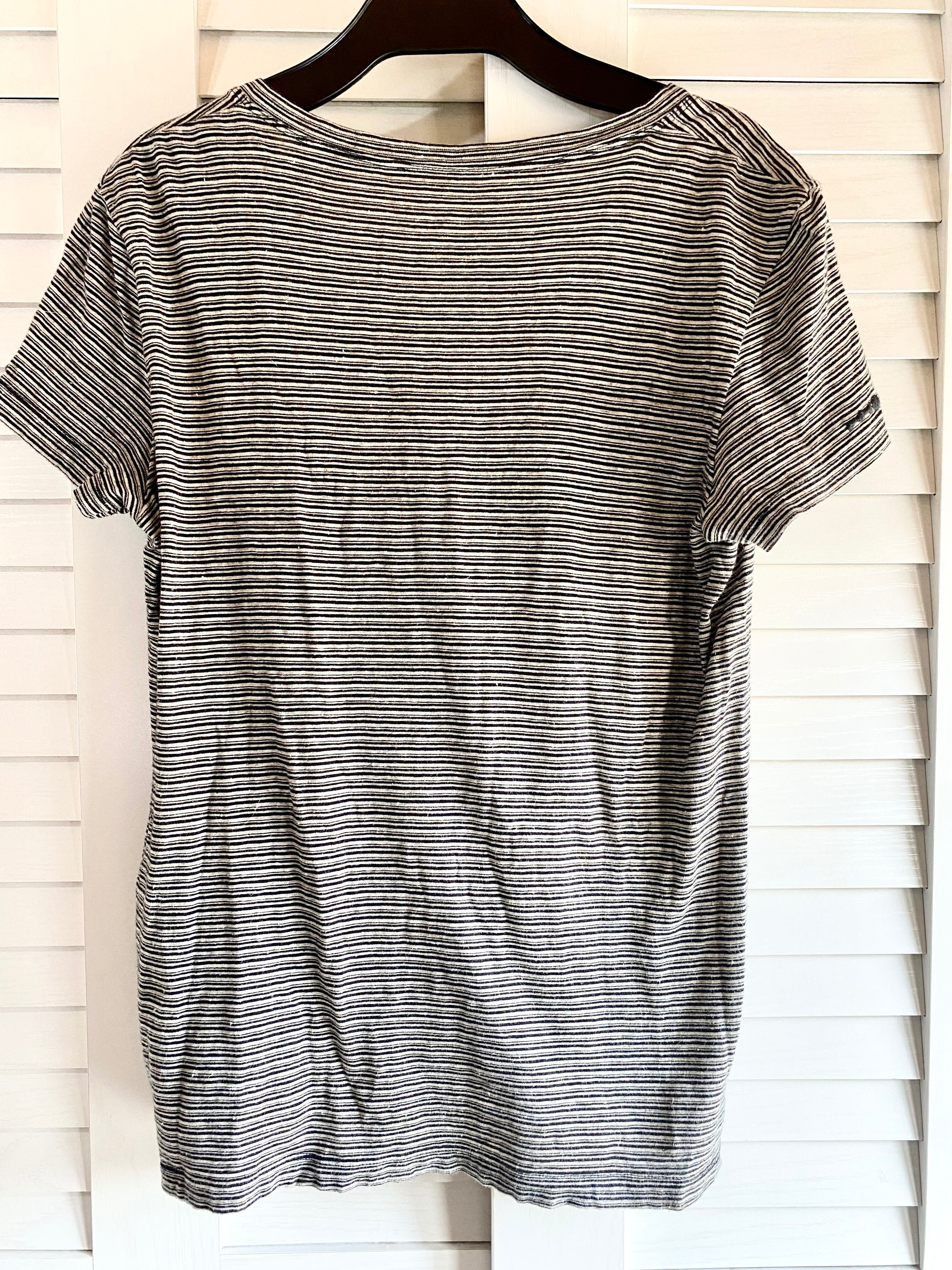 #180 HaaT ISSEY MIYAKE ネップ入りナチュラルコットン 刺繍&ビーズ ランダムボーダーカットソー グレー