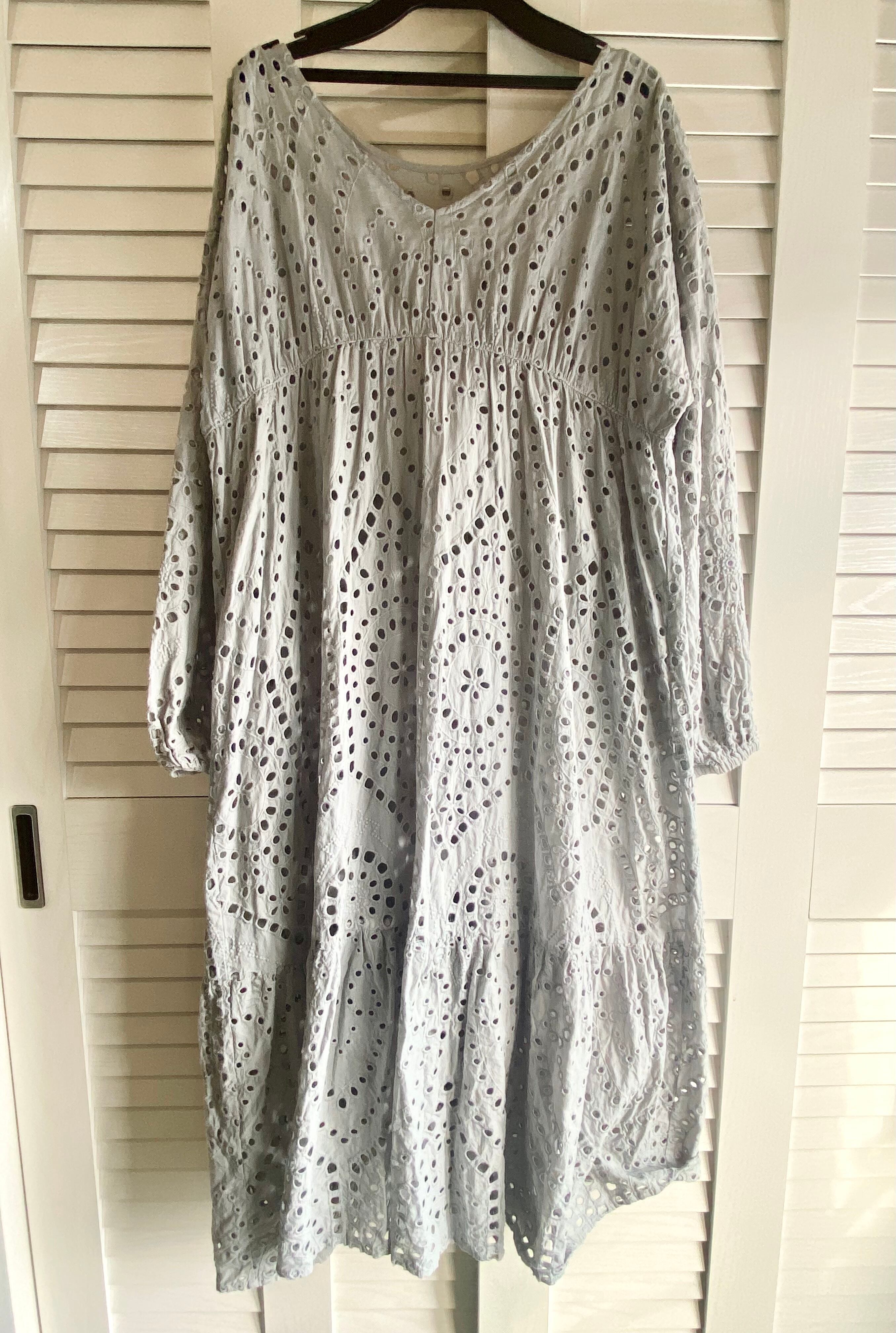 #181 titivate カッティングコットンレース ボリュームティアードワンピ キャミワンピ付き サックスブルー