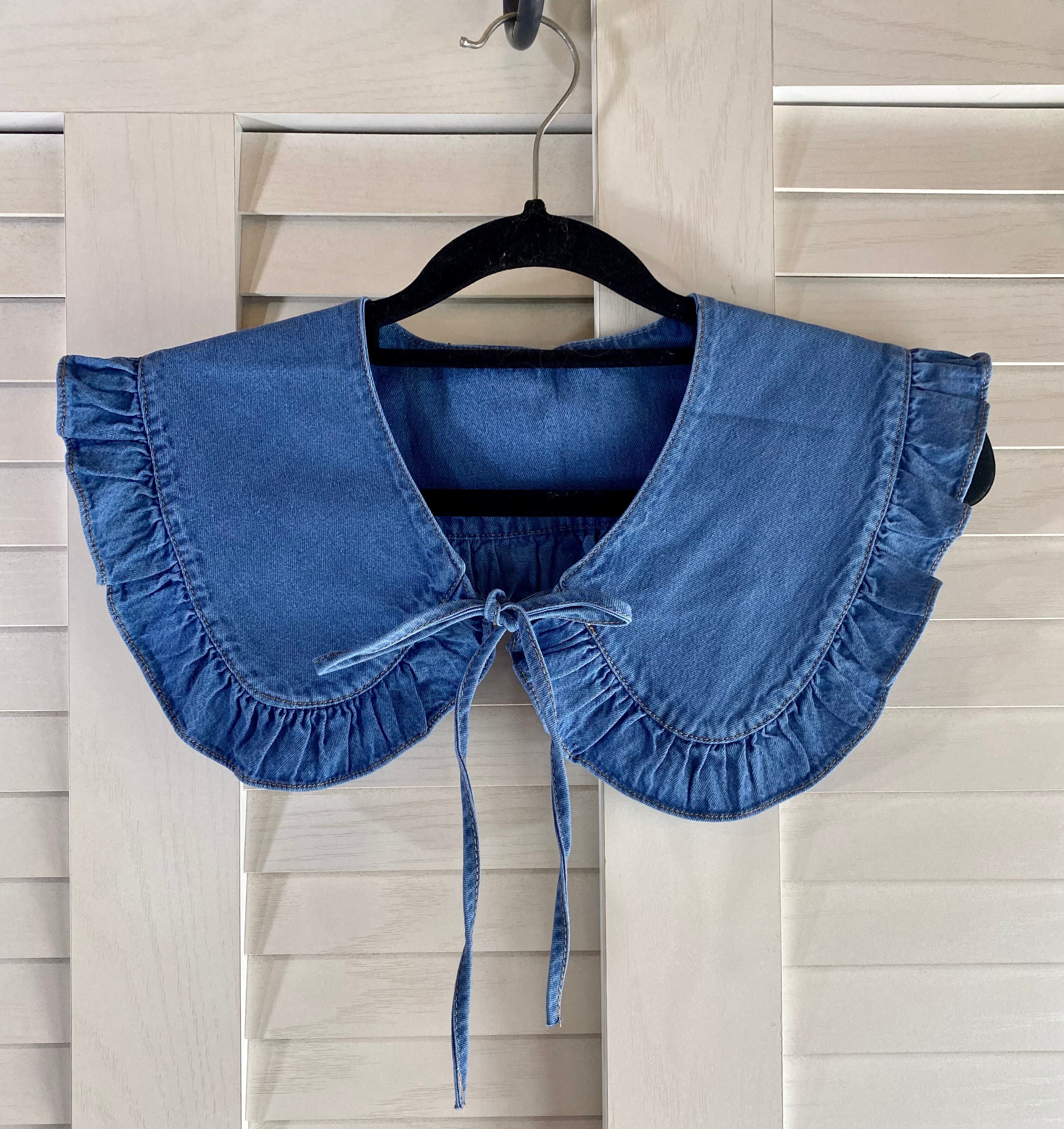 #182【デザインサンプル】ダンガリーフリル付け襟 ブルー