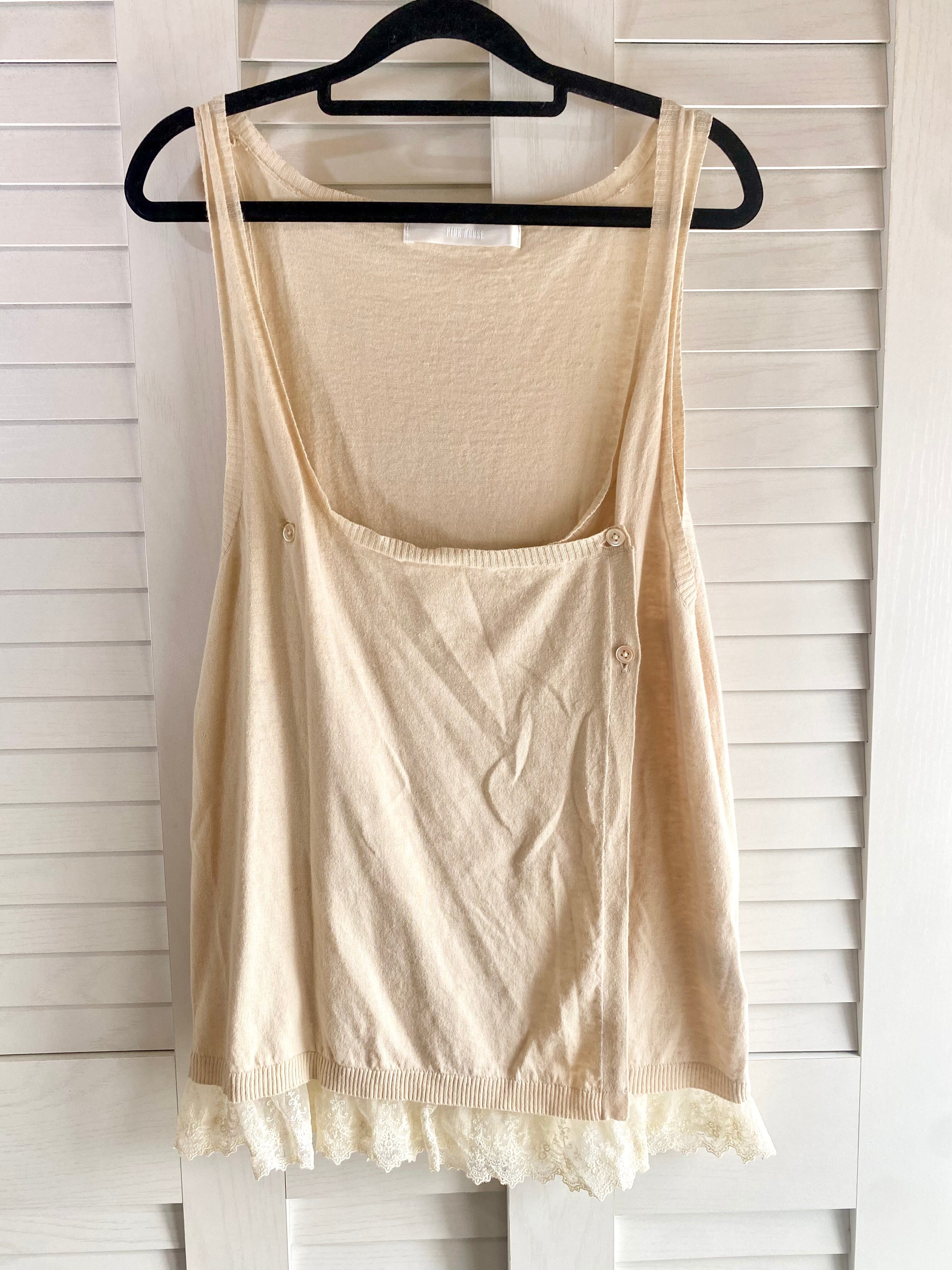 #182 PINK HOUSE 激レア!レースフリルコットンジレ クリームベージュ