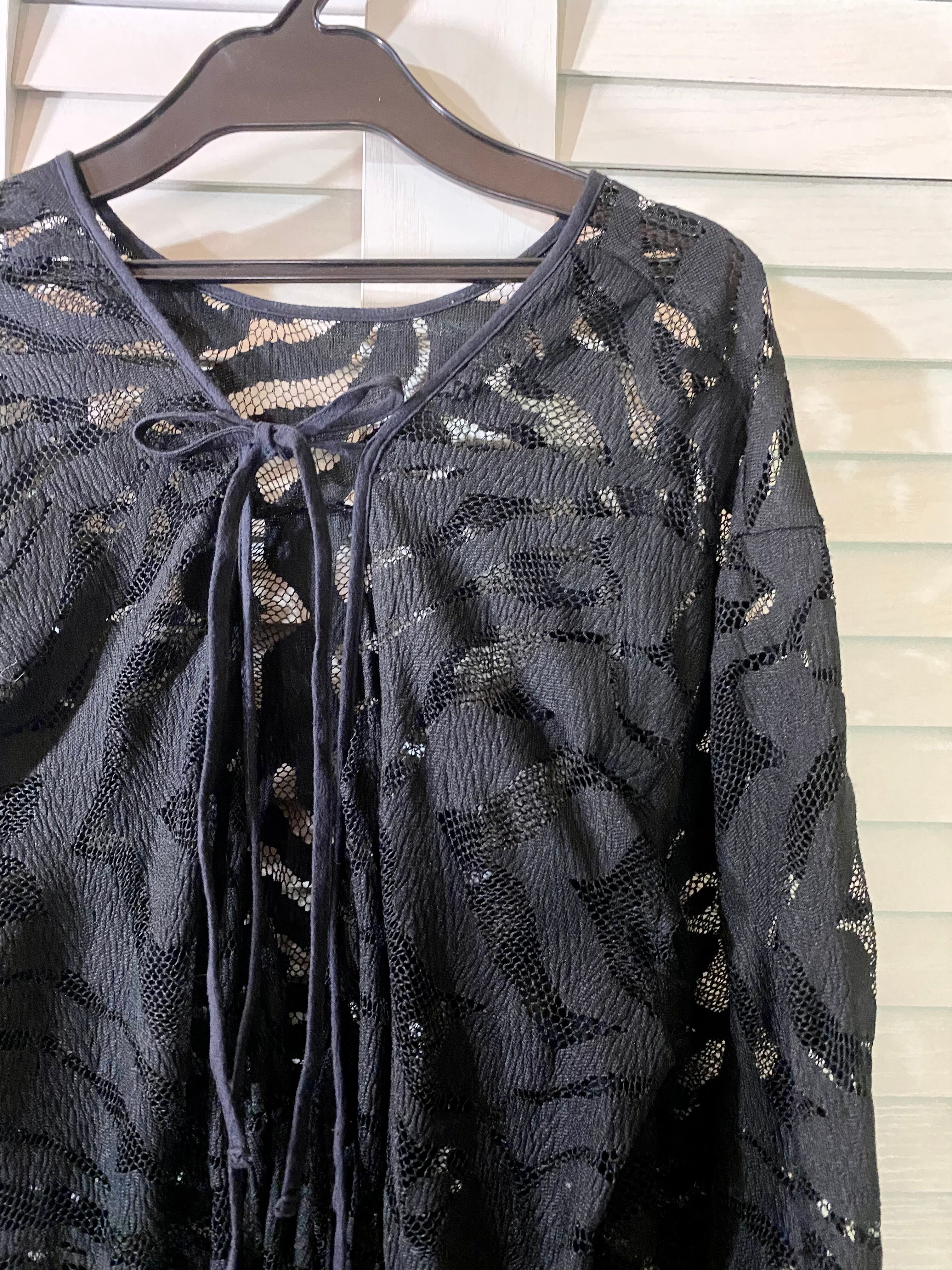 専用◎#184 CHIGNON ジャガードレース2WAYロングカーデ ブラック