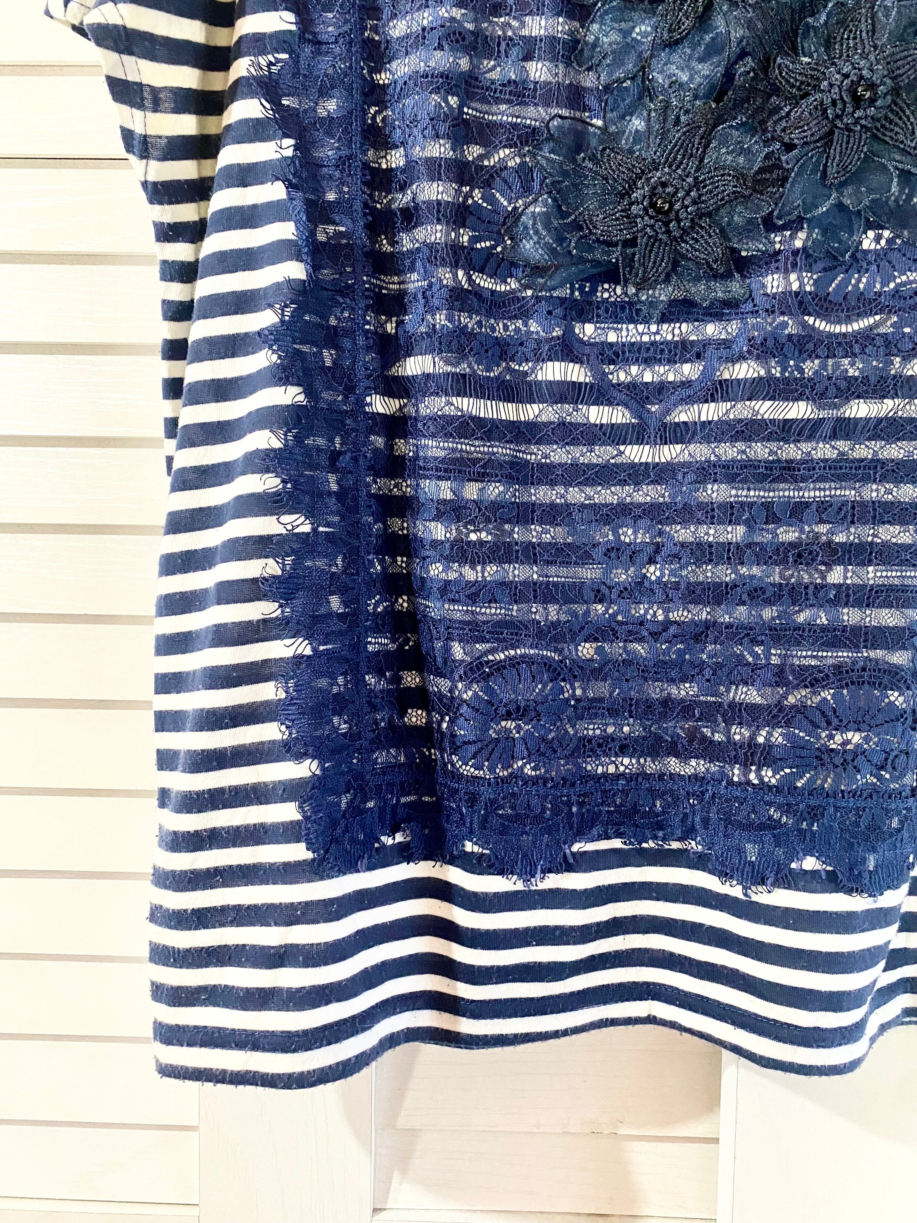 #185 GRASE CONTINENTAL レース&3Dフラワー ボーダーフレンチスリーブカットソー ネイビー
