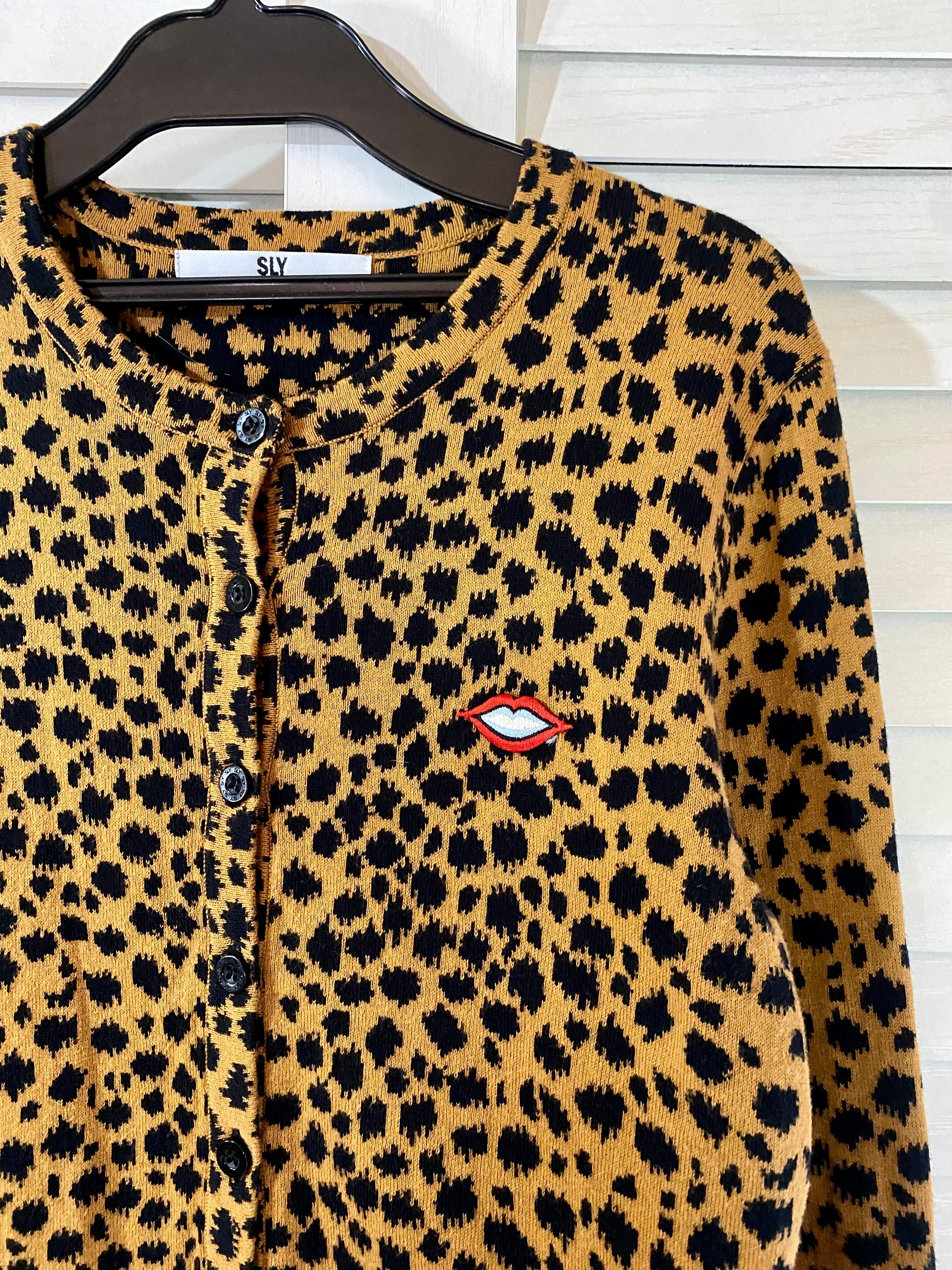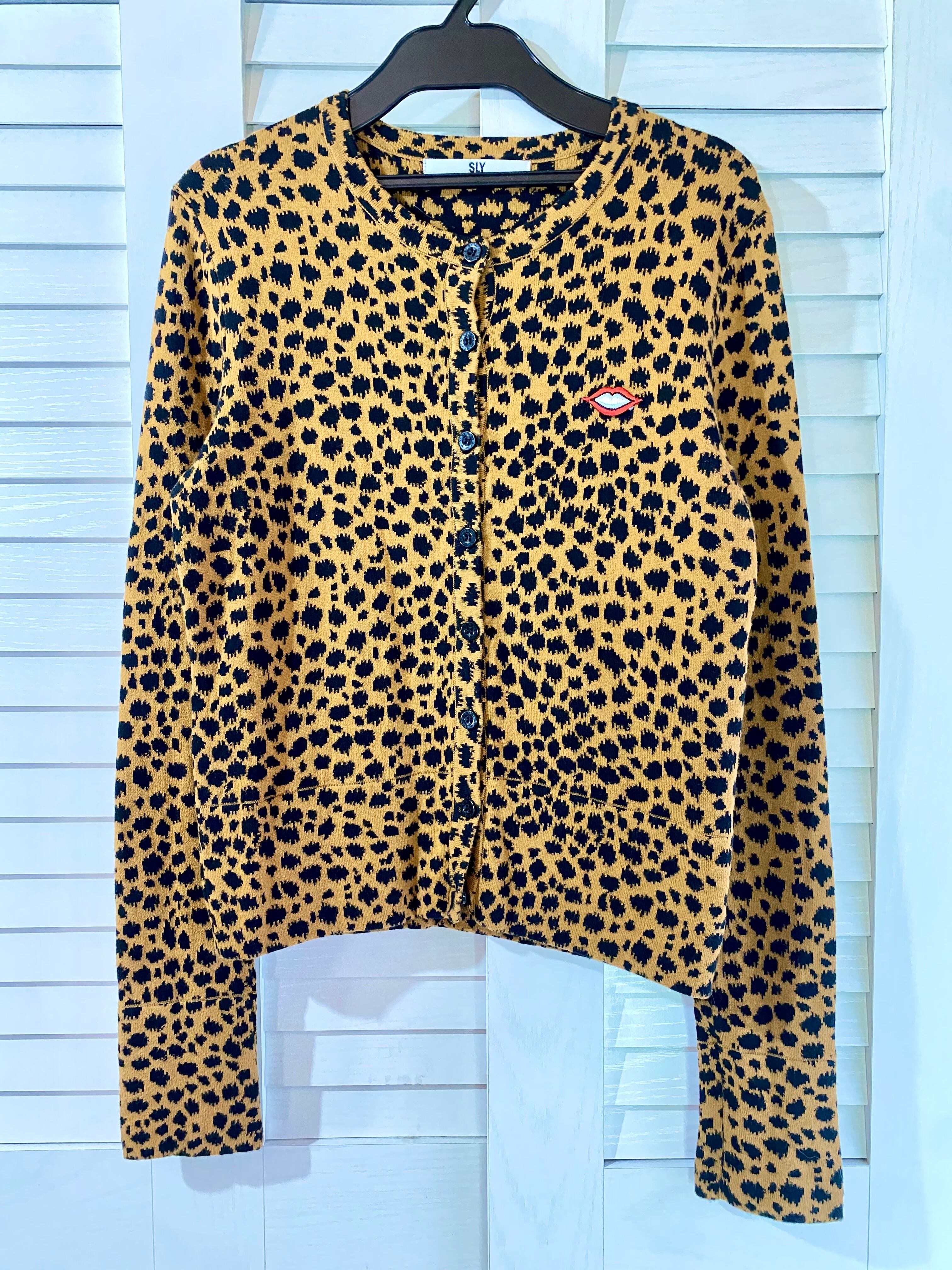 専用◎#186 SLY リップパッチ ジャガードレオパード コットンニットカーデ キャメル
