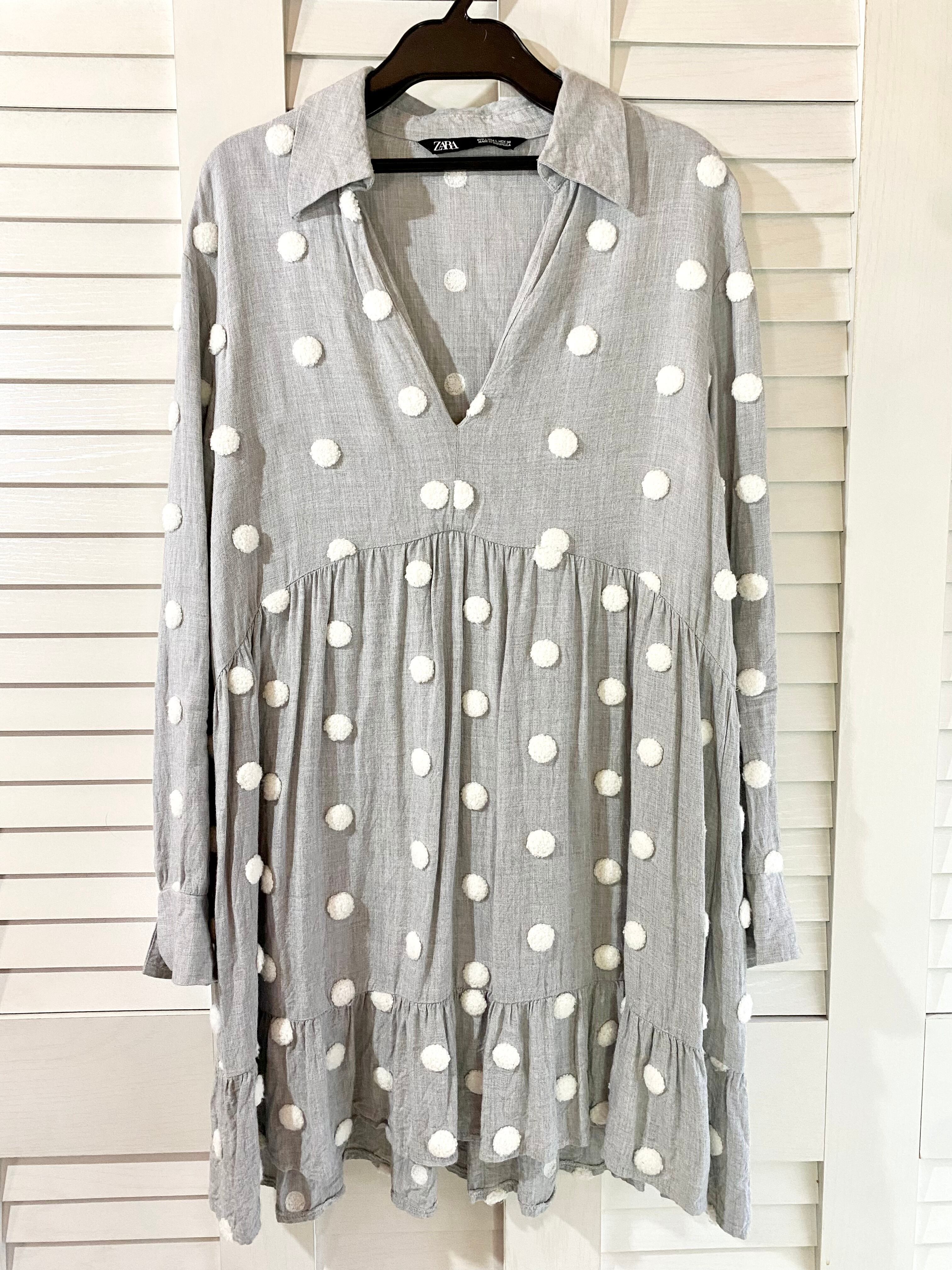 #186 ZARA パイルドット スキッパーティアードチュニックワンピ ライトグレー