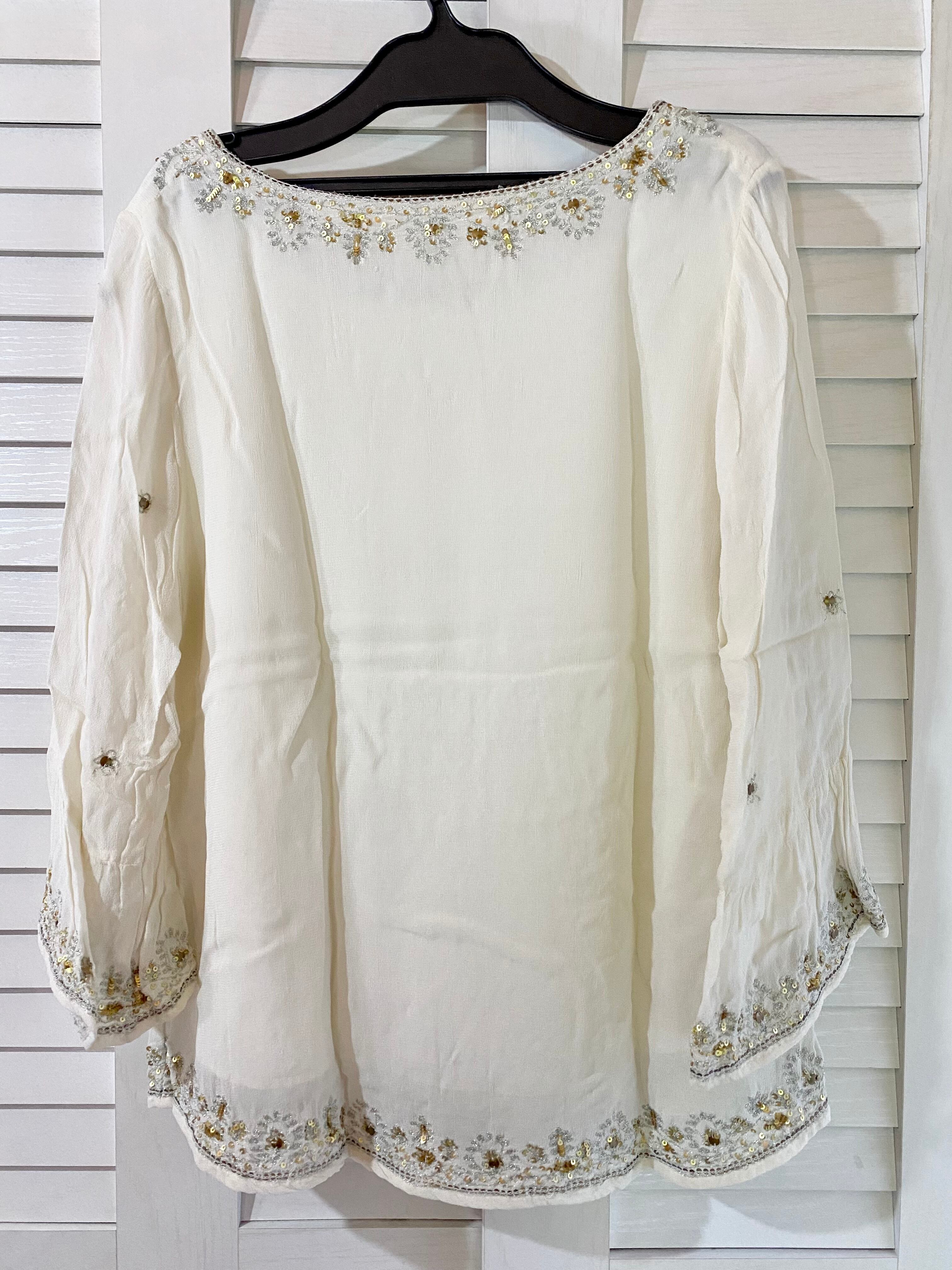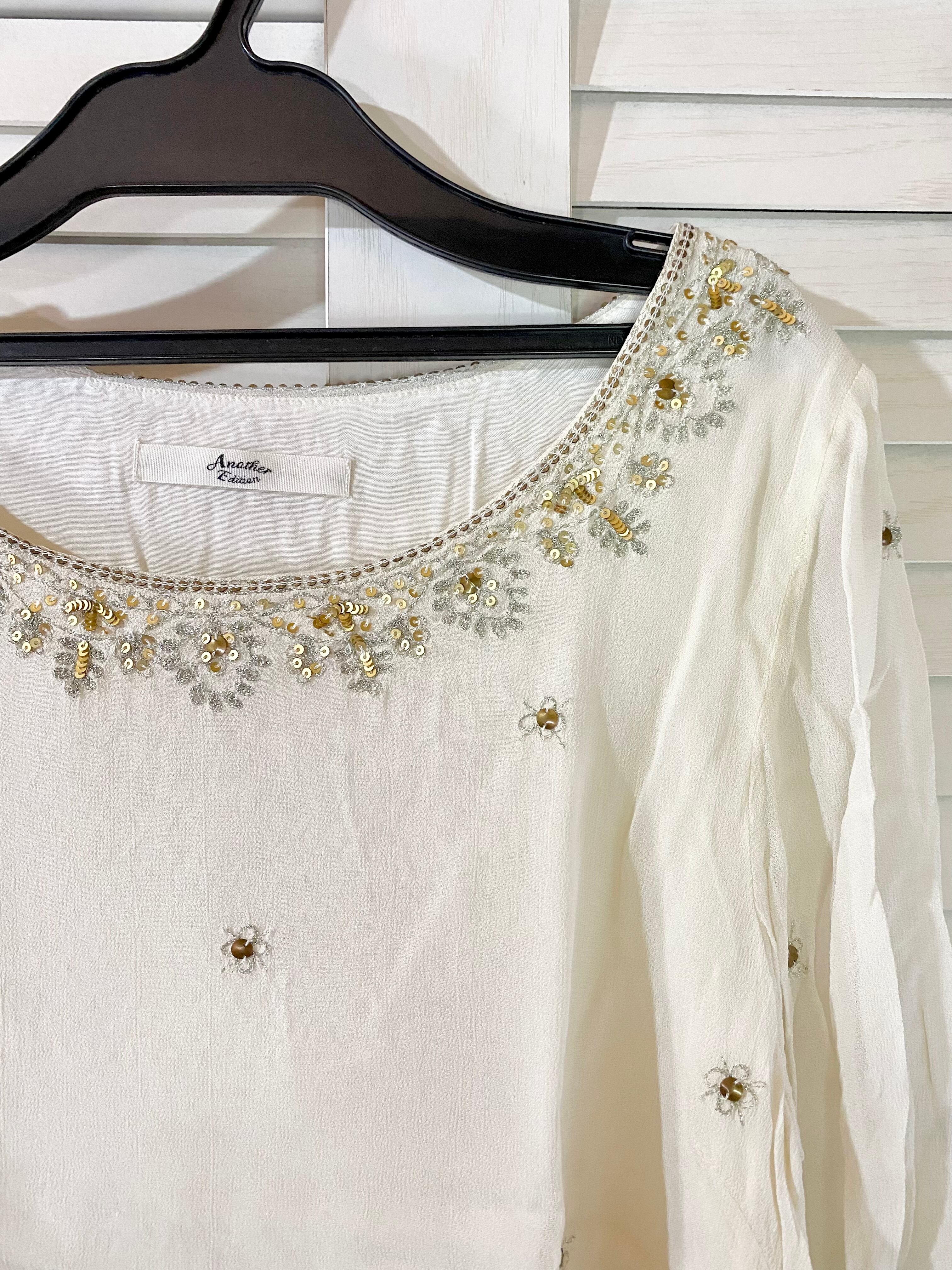 #186 Another Edition スパン&シルバー刺繍 シフォンジョーゼットブラウス アイボリー