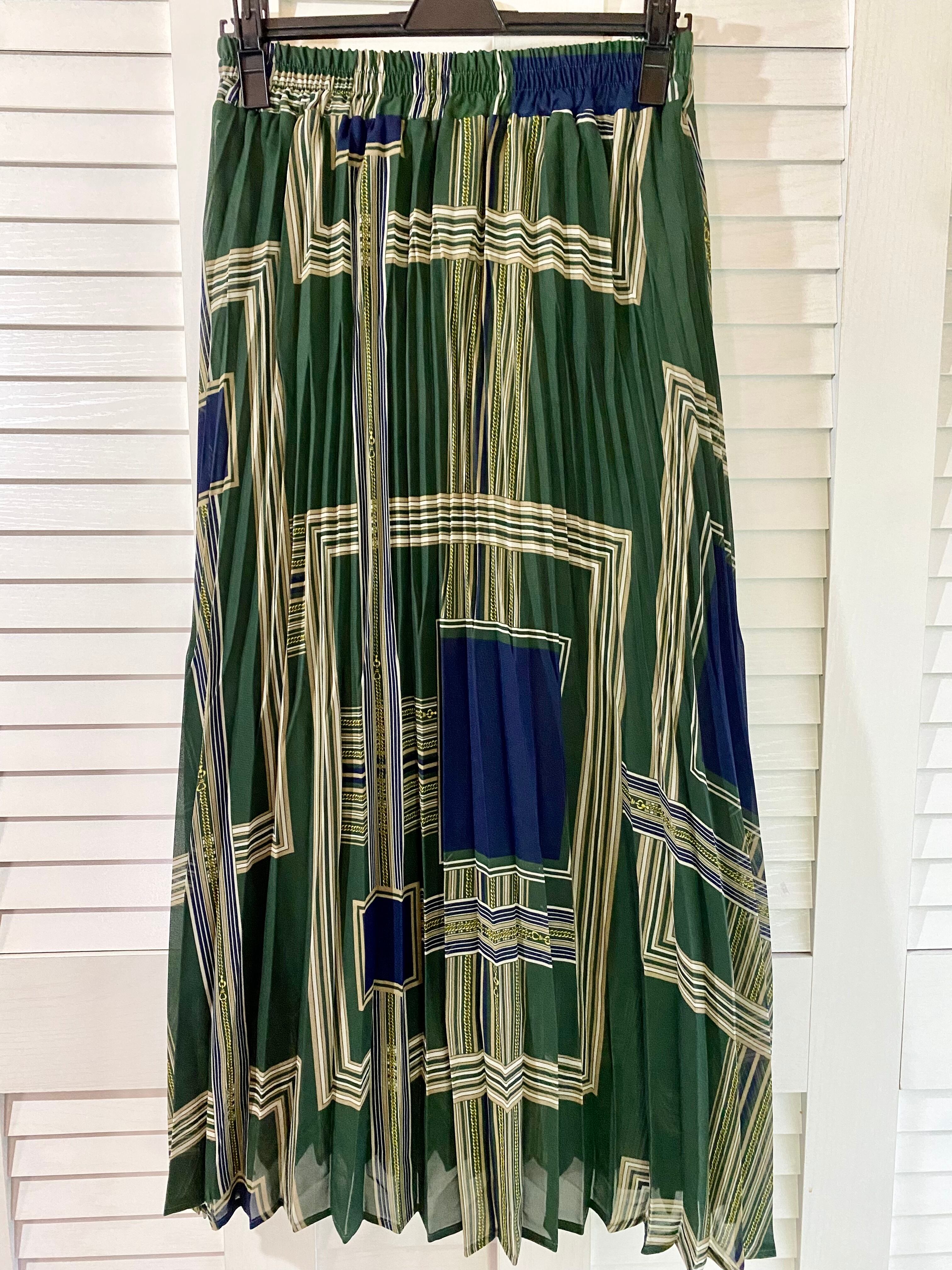 #186 AZUL BY MOUSSY ジオメトリックプリント アコーディオンプリーツ シフォンスカート グリーン