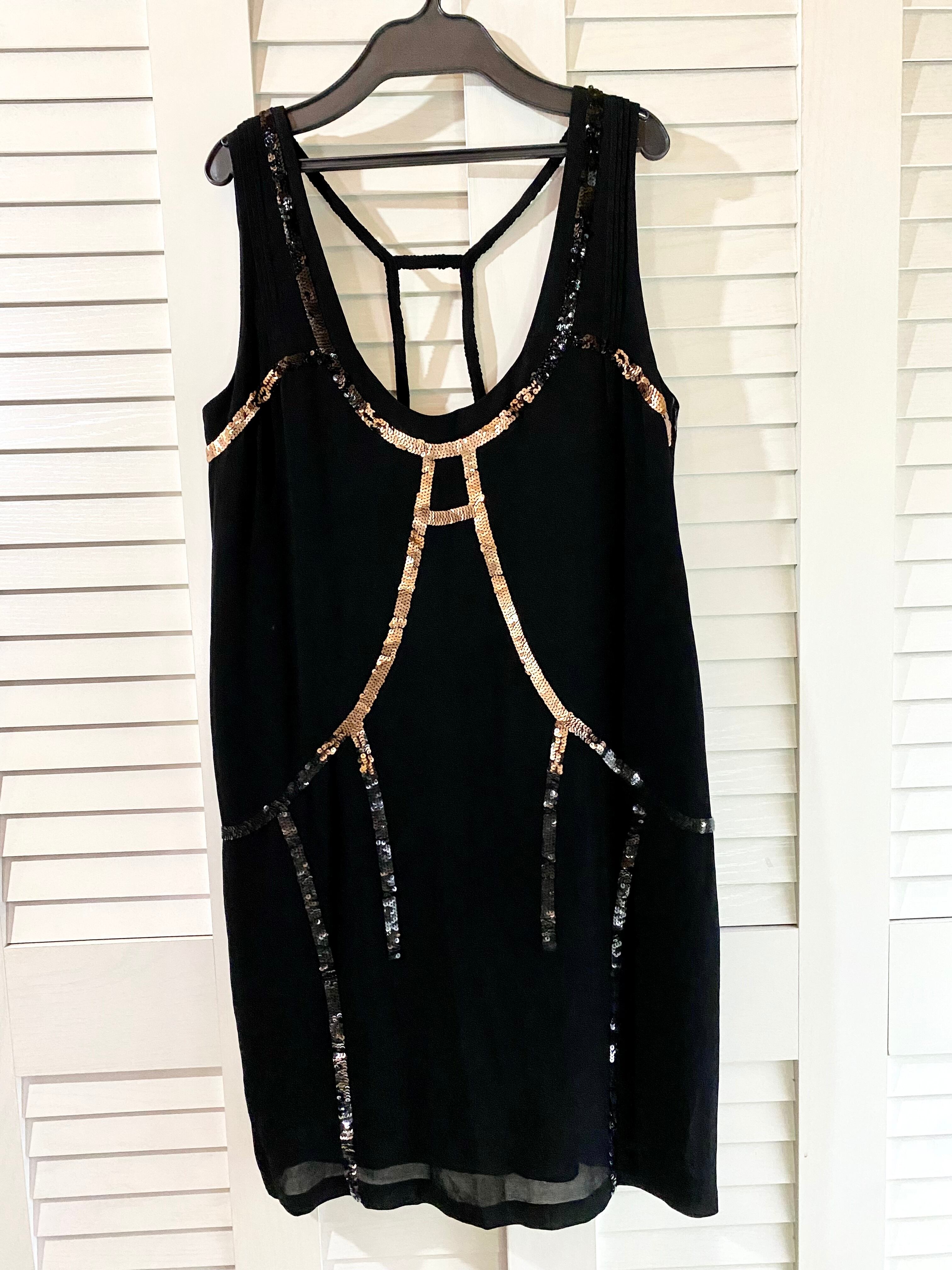 #187 DISEL スパンコールライン ジョーゼットコクーンワンピ ブラック