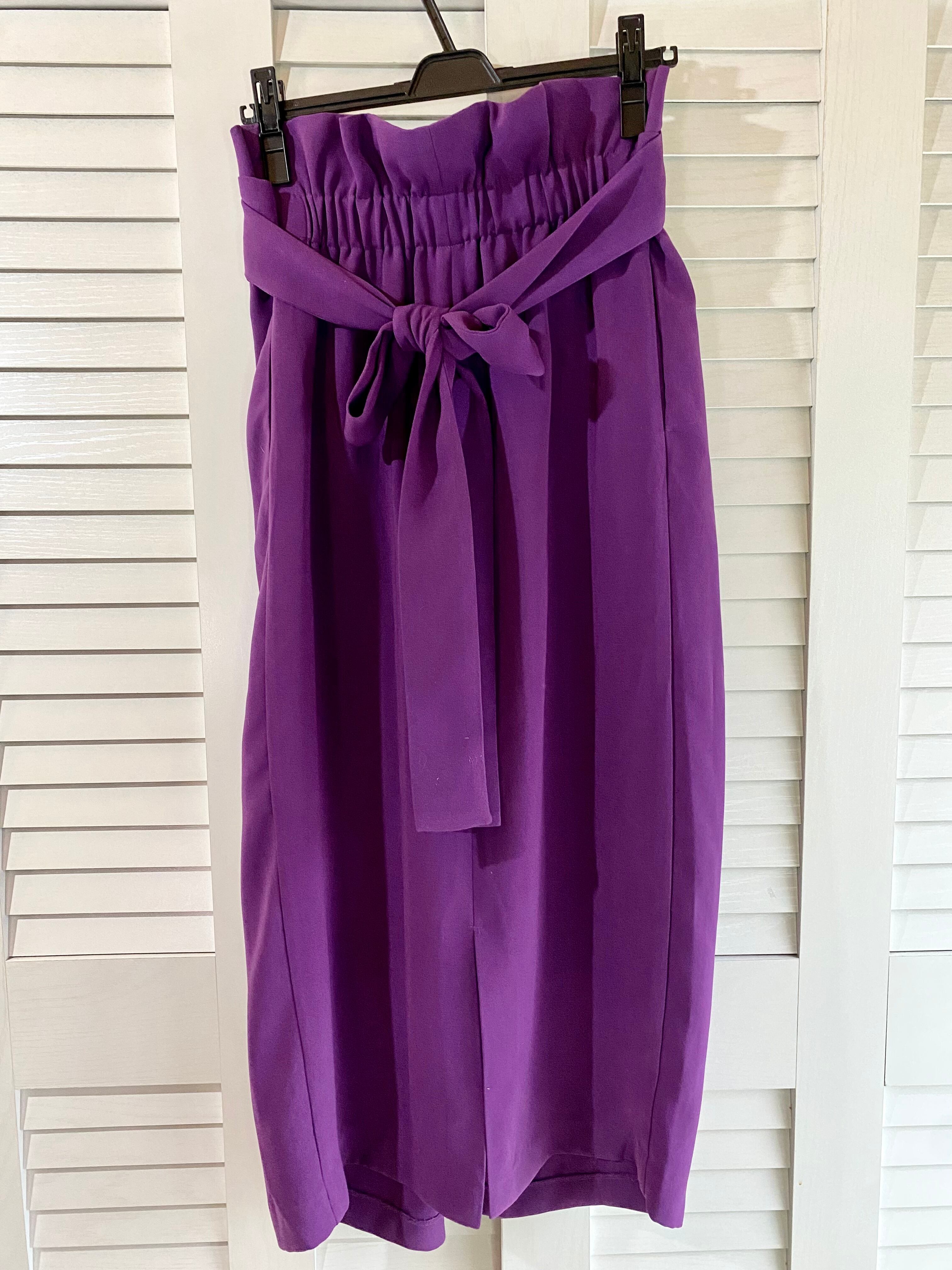 #187 KBF ハイウエスト リボンベルト ラップ風 ロングナロースカート パープル
