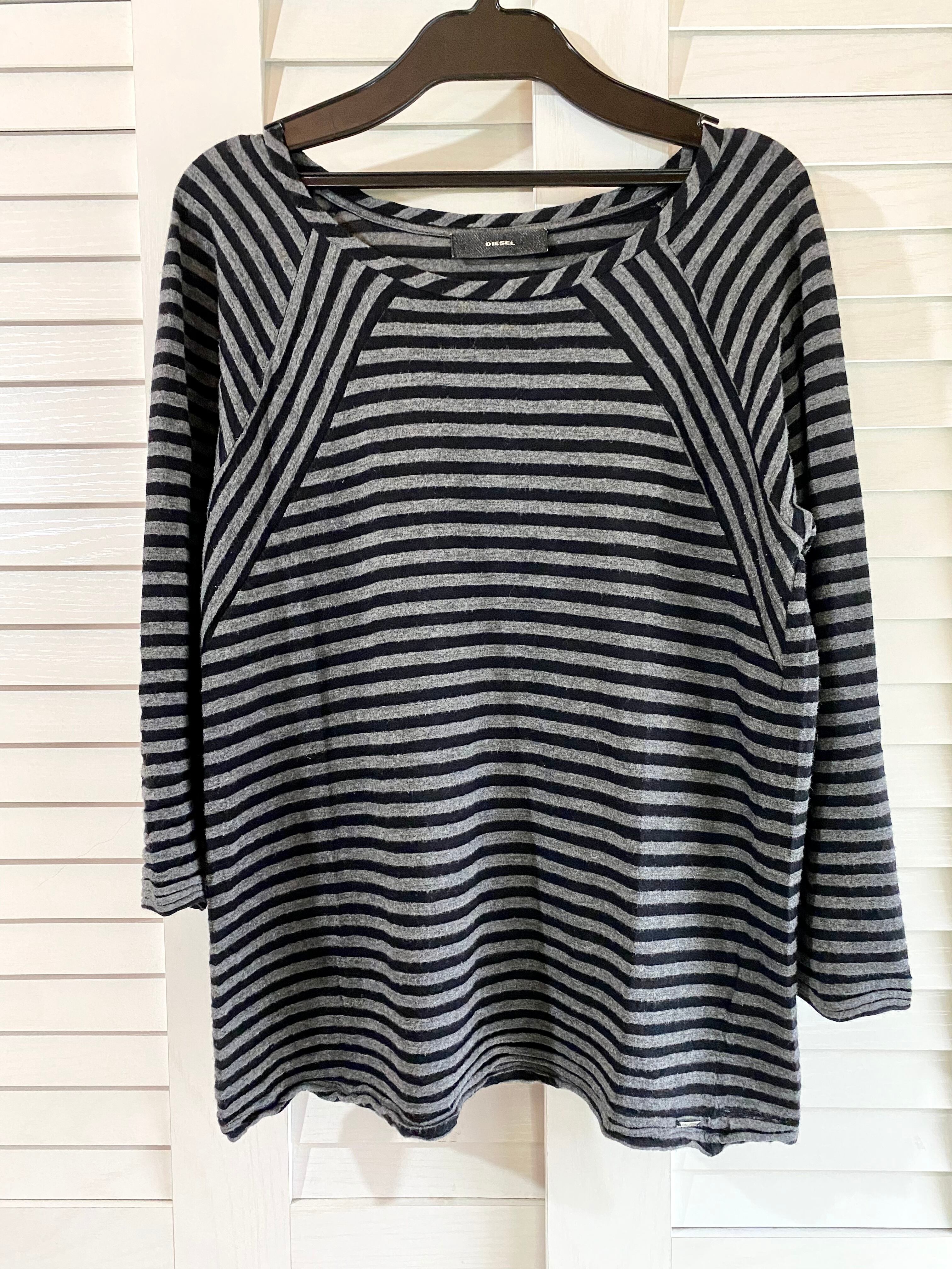 #187 DISEL 変形ボーダー ラグランスリーブ コットンニットソー グレー | お洋服屋さん 『GOKKO』