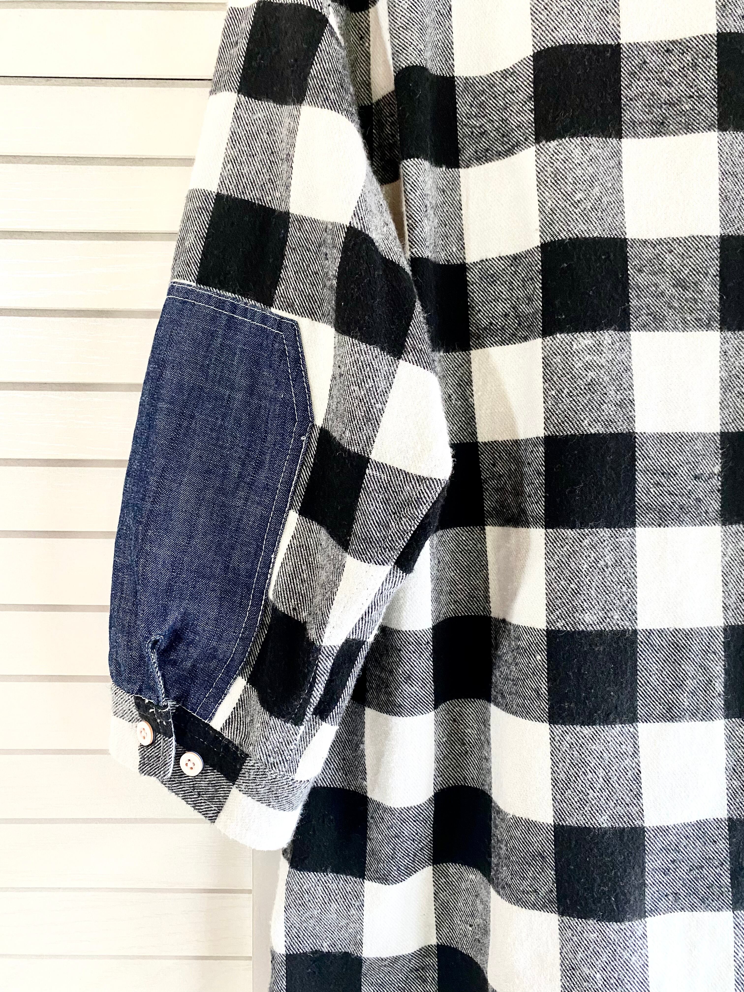 #189 MAGIC NUMBER BIGギンガムチェック デニムパッチド ポケット&ニー オーバーサイズ ボタンダウンフランネルシャツ ブラック