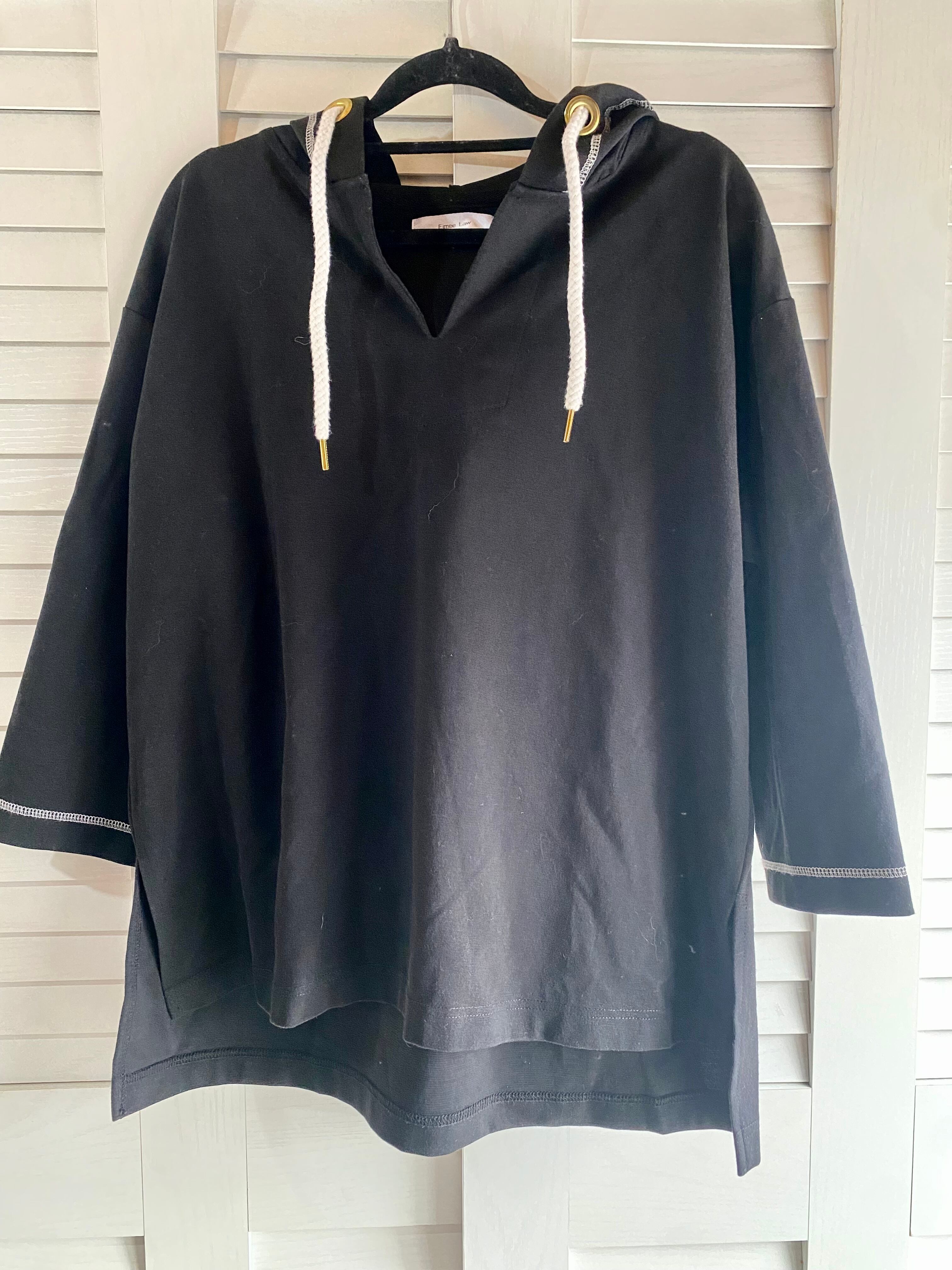 #191 Eimee Law バックフリル カットソープルオーバーフーディートップス ブラック