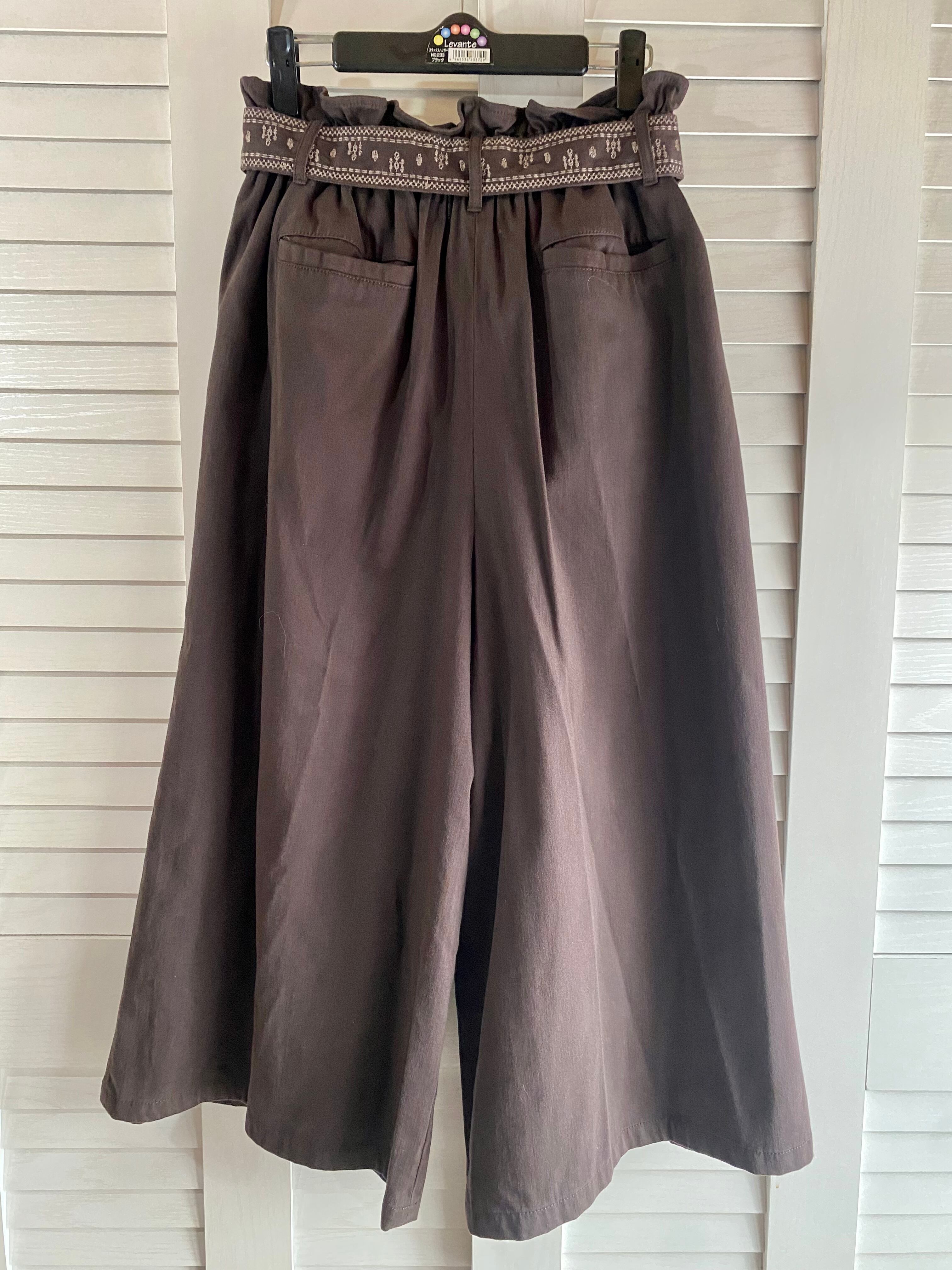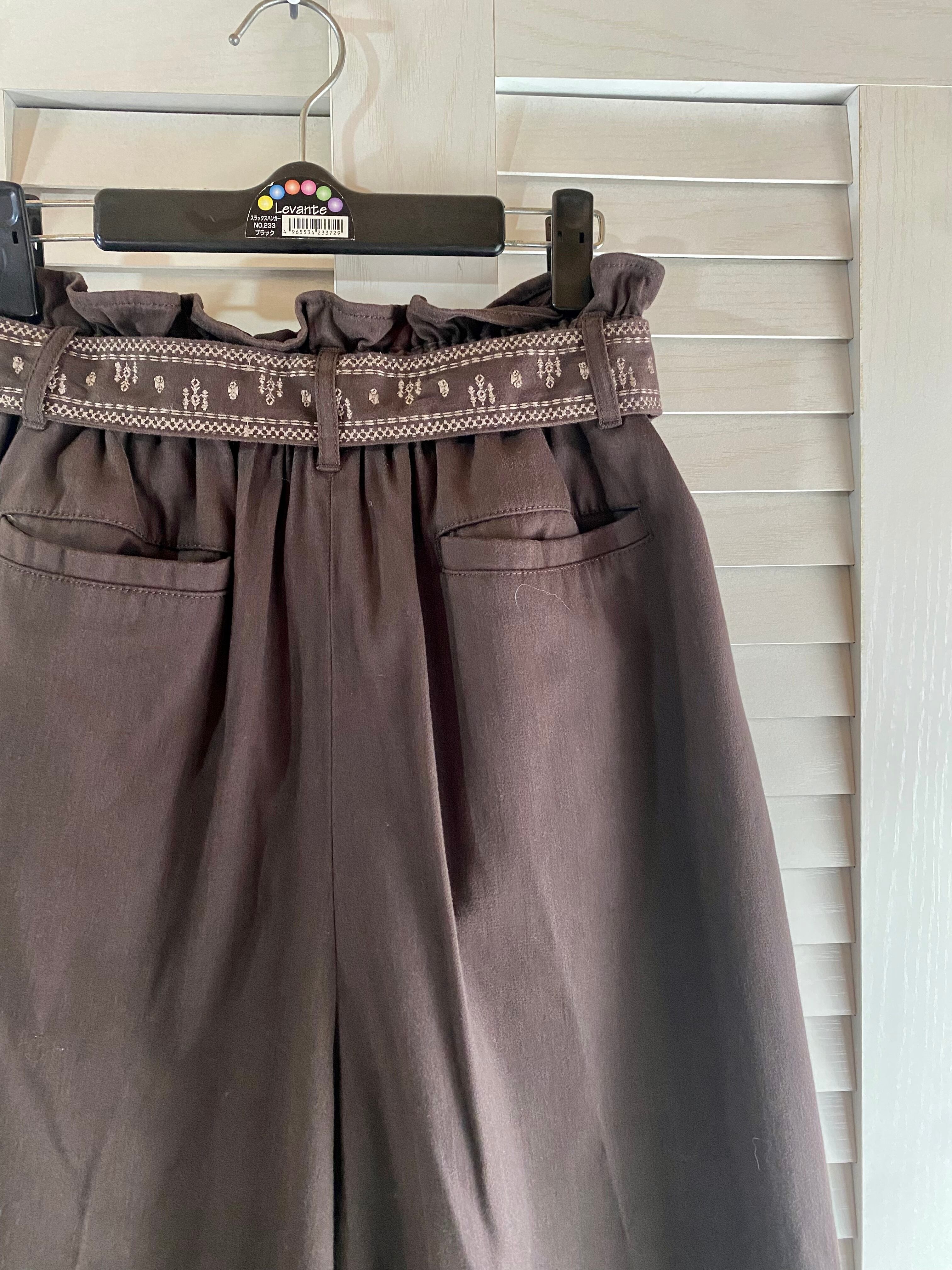 #191 Samansa Mos2 クロスステッチベルト コットンツイルピーチスキン ボリュームワイドパンツ ブラウン