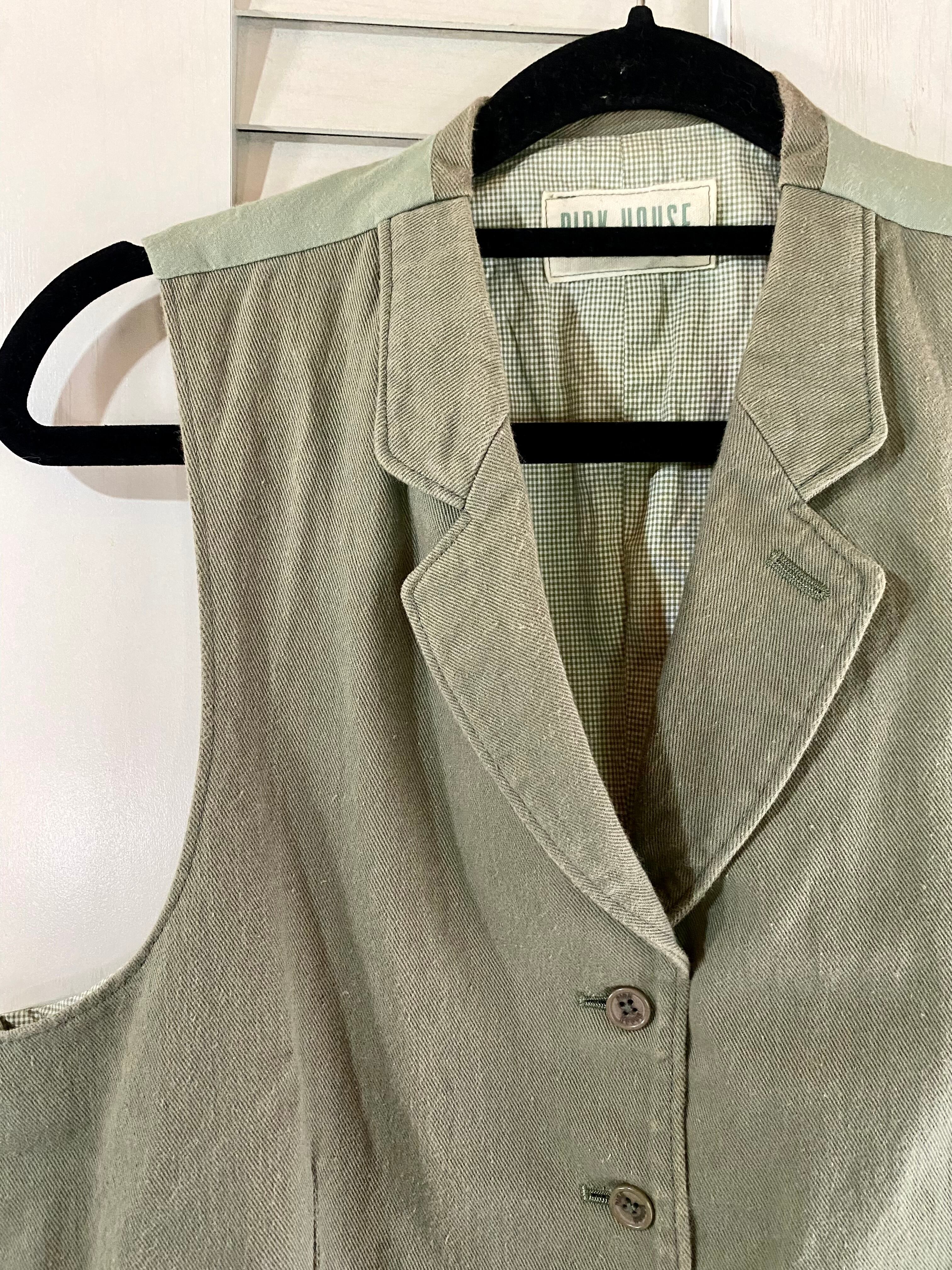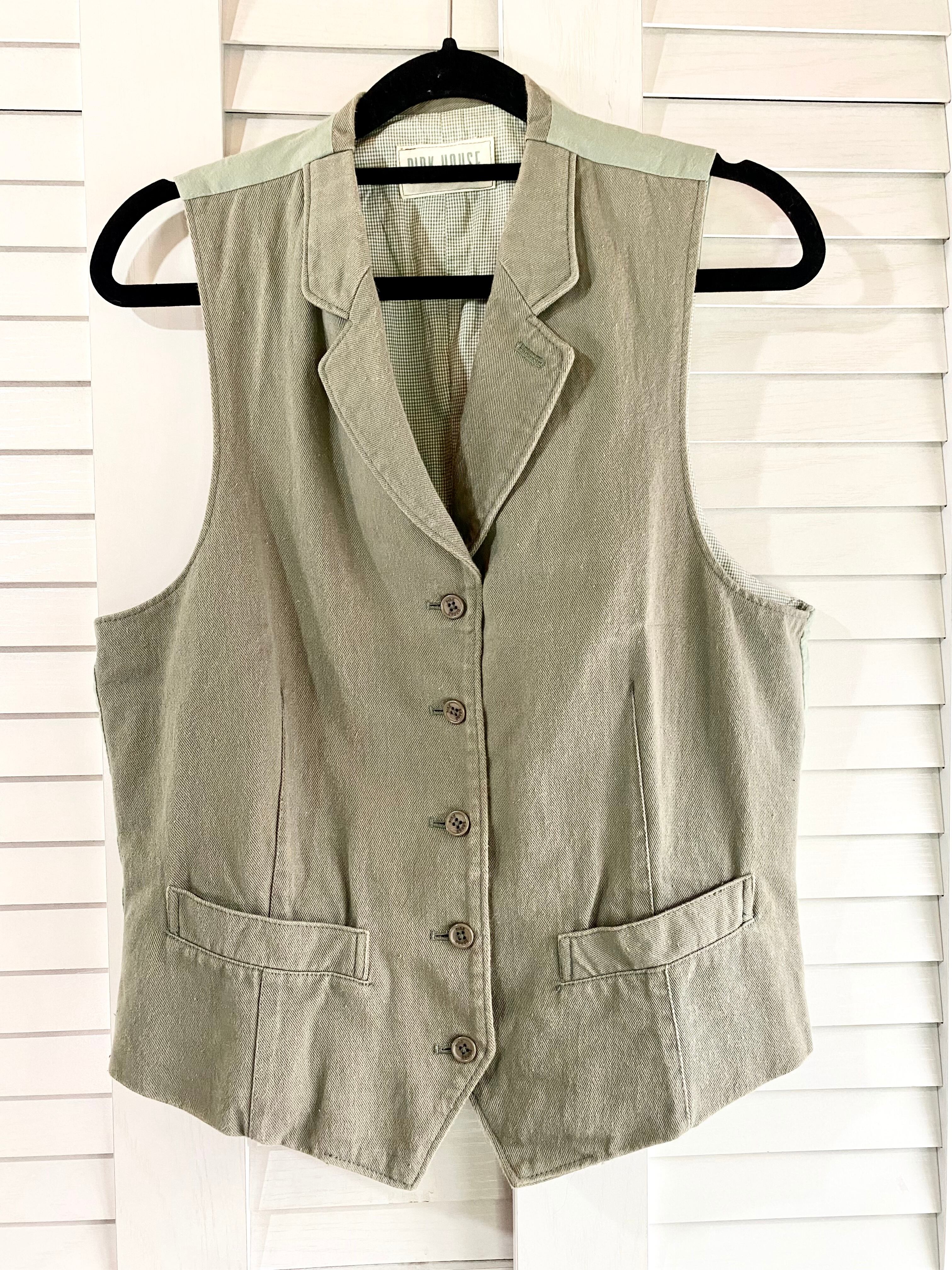 #192 PINK HOUSE 激激レア!!バックパッチドロゴ テーラードコットンベスト カーキ