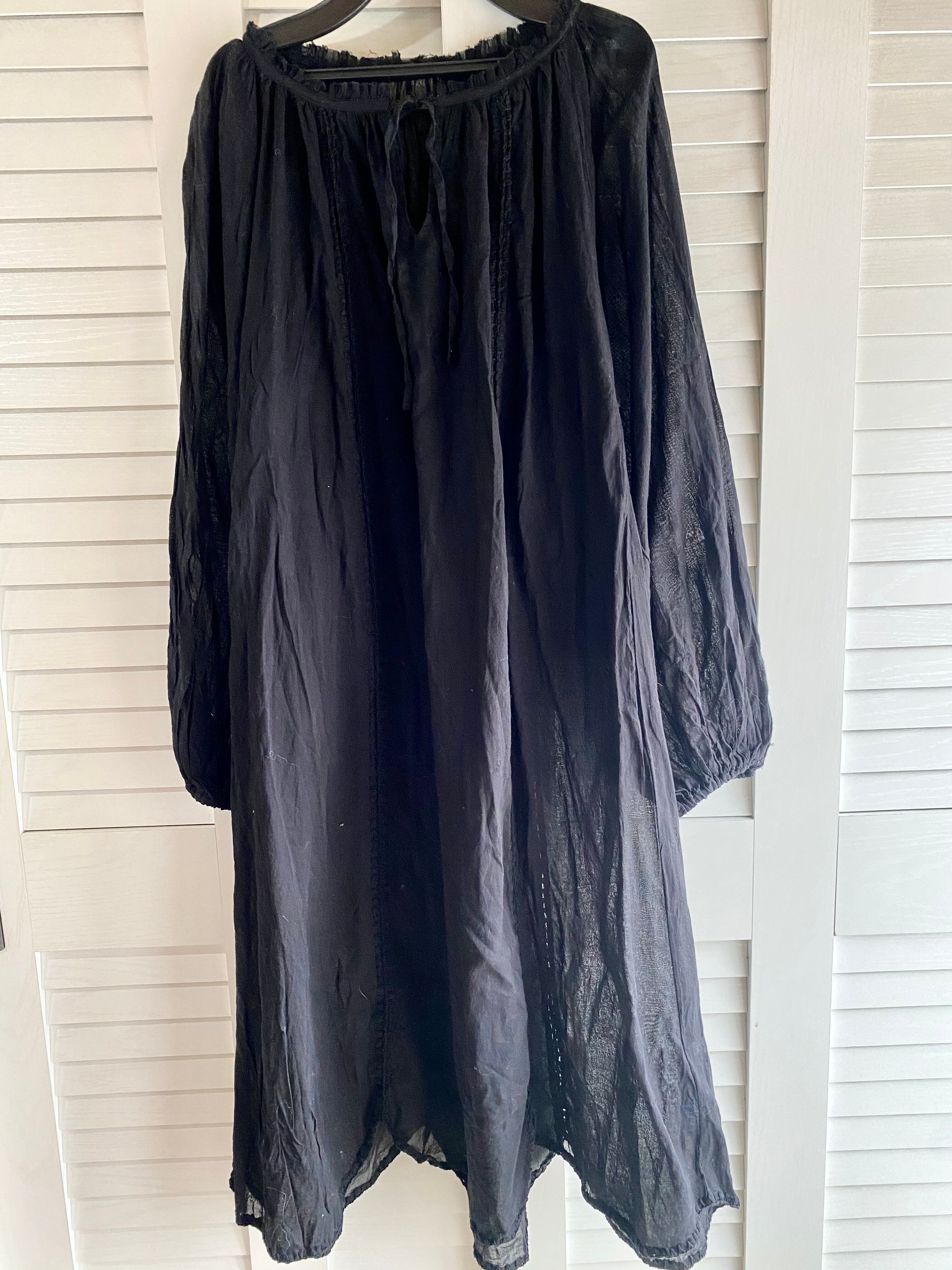 #193 MOUSSY コットンガーゼ&ハシゴレース切替ボリュームワンピ ブラック