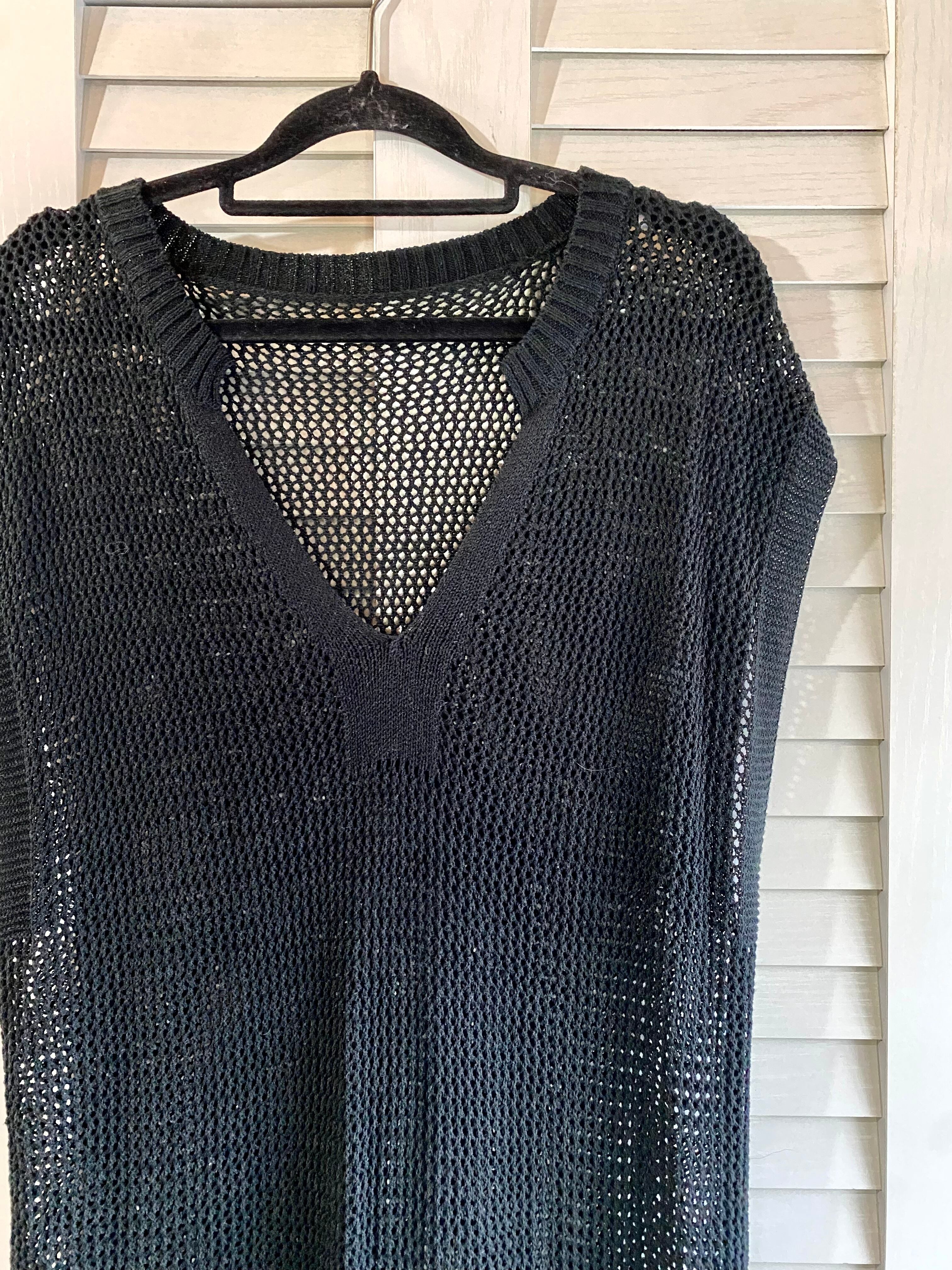 #195 mysa closet ナイロンメッシュ プルオーバーロングジレ ブラック