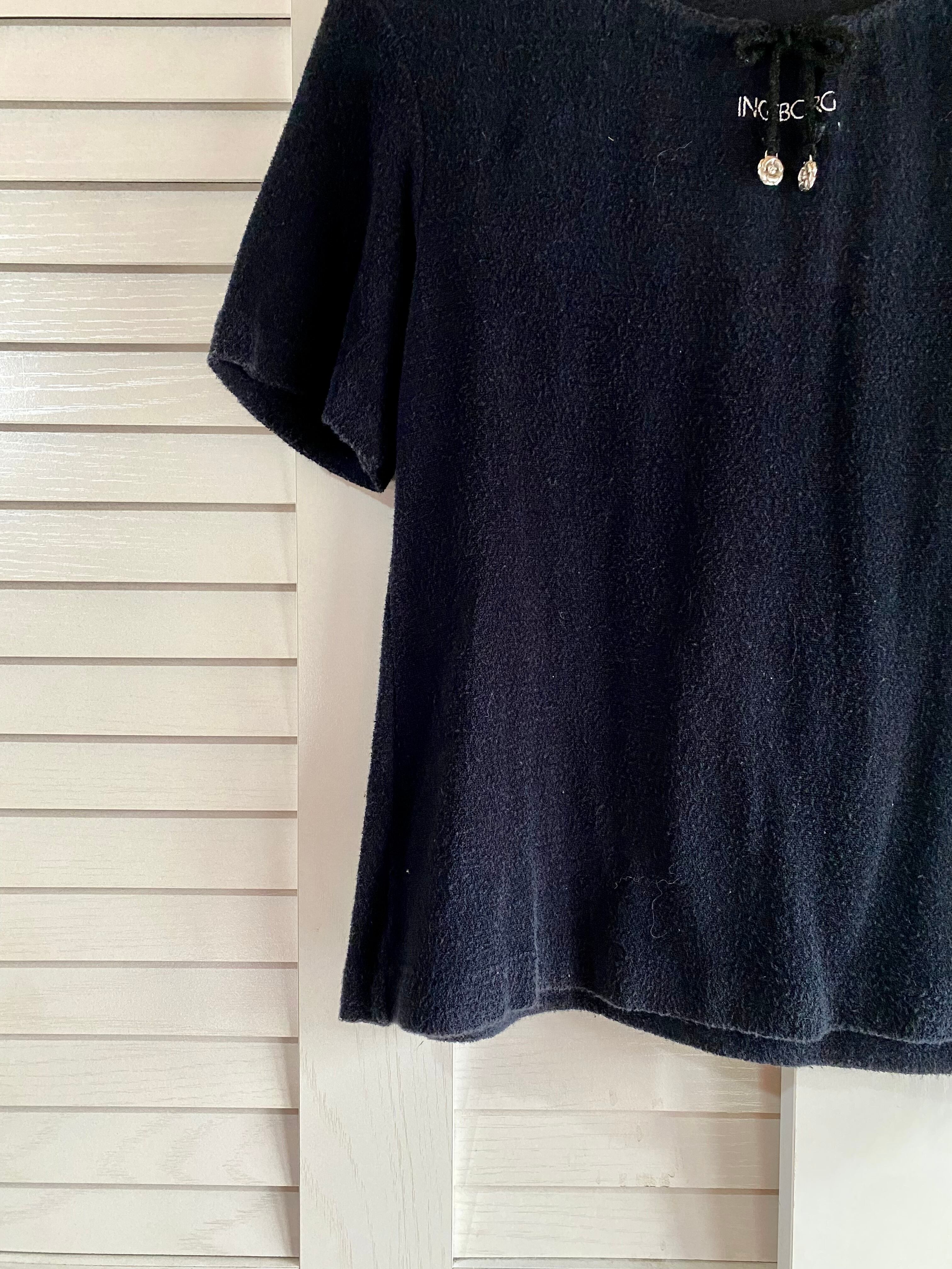 #196 INGEBORG 激レア!カメリアシルバーモチーフ ロゴ刺繍 パイル地カットソー ブラック