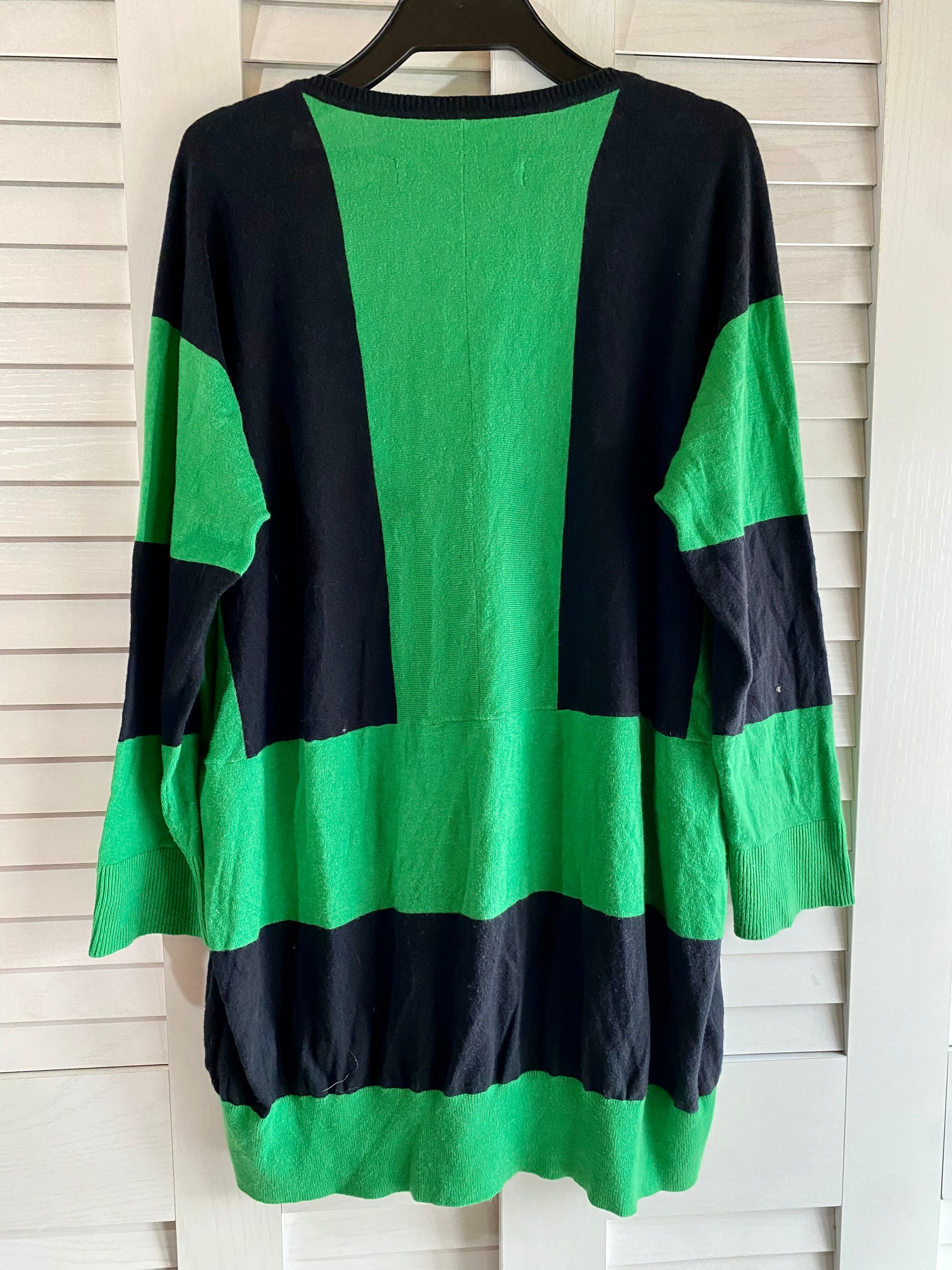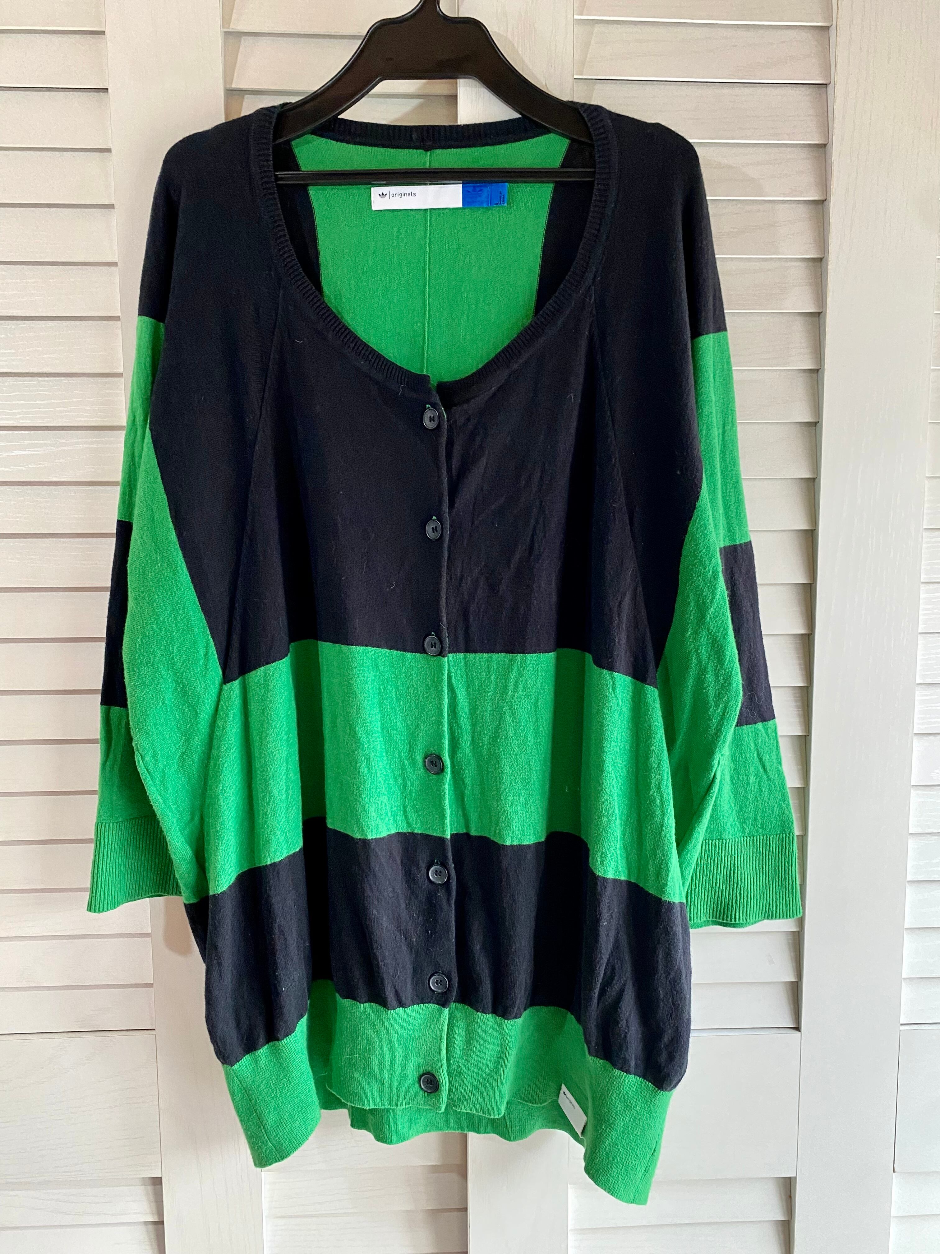 #196 adidas 変形BIGボーダー コットンウールニットカーデ グリーン×ネイビー