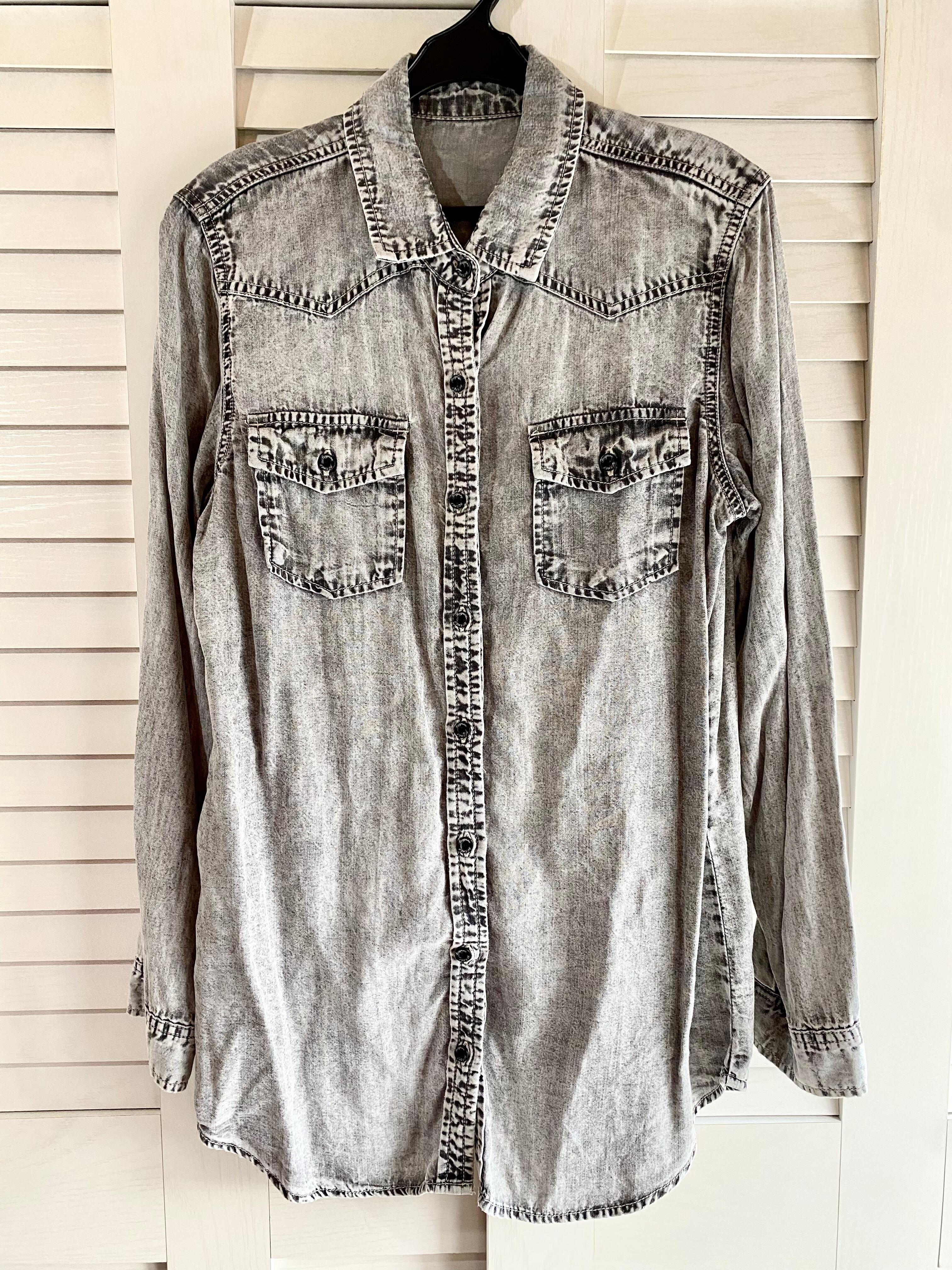 #196【ブランドサンプル】ケミカルダンガリー テンセル ウエスタン切替シャツ グレー