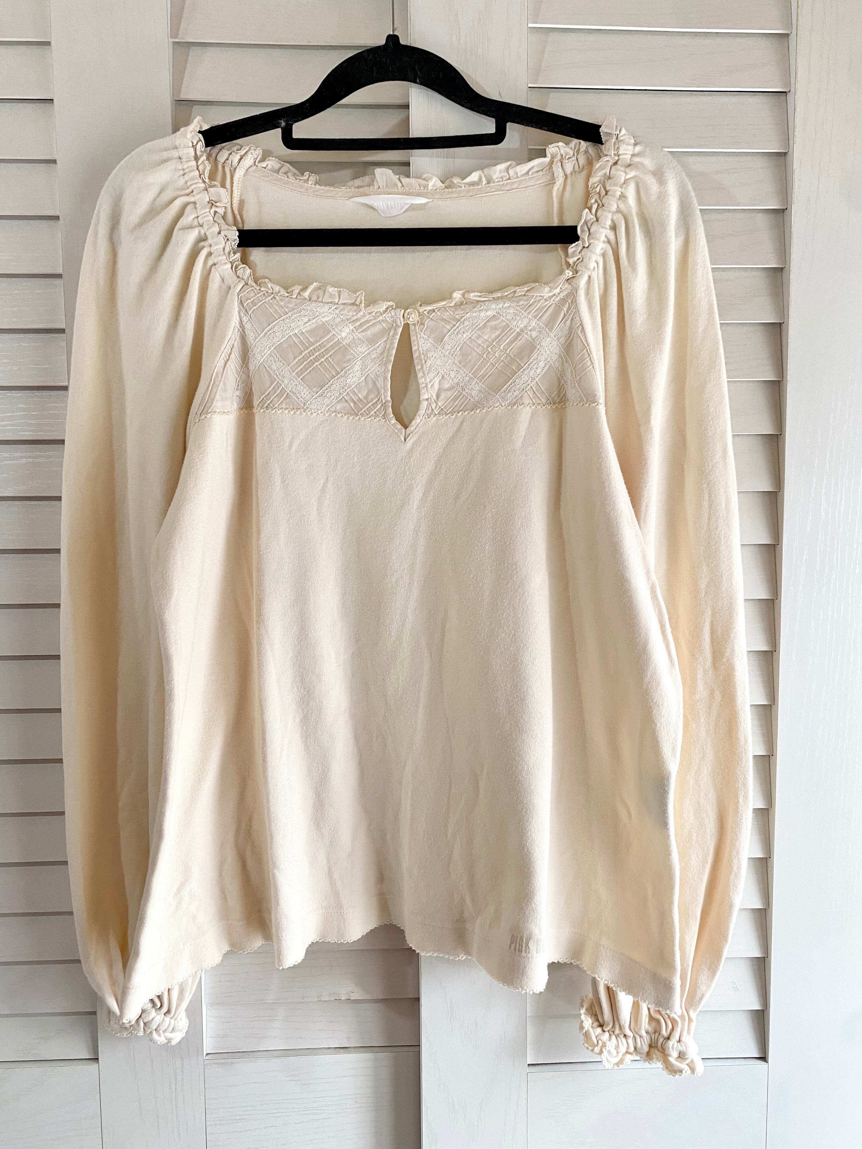 #196 PINK HOUSE レース&ピンタックヨーク スクエアカラー ボリュームスリーブカットソープルオーバーブラウス アイボリー