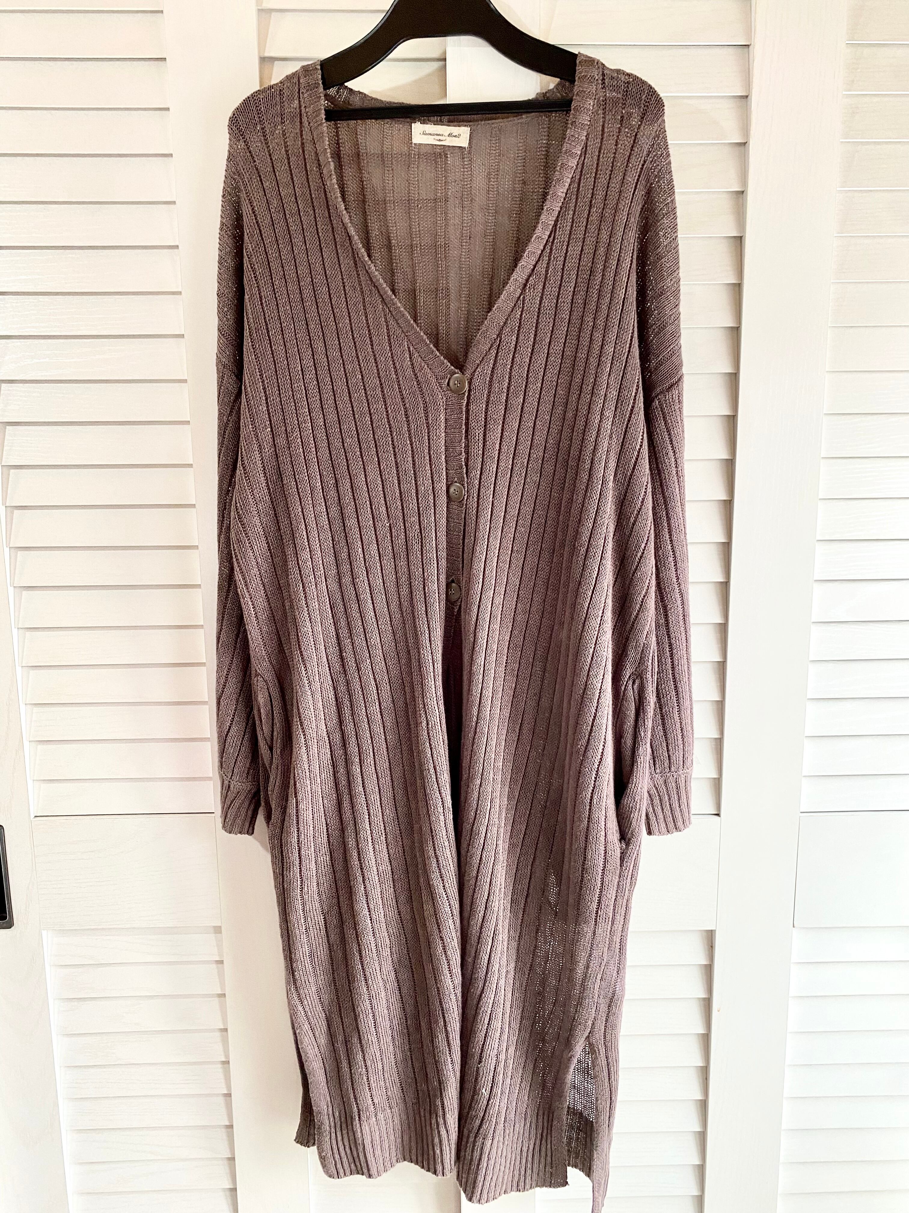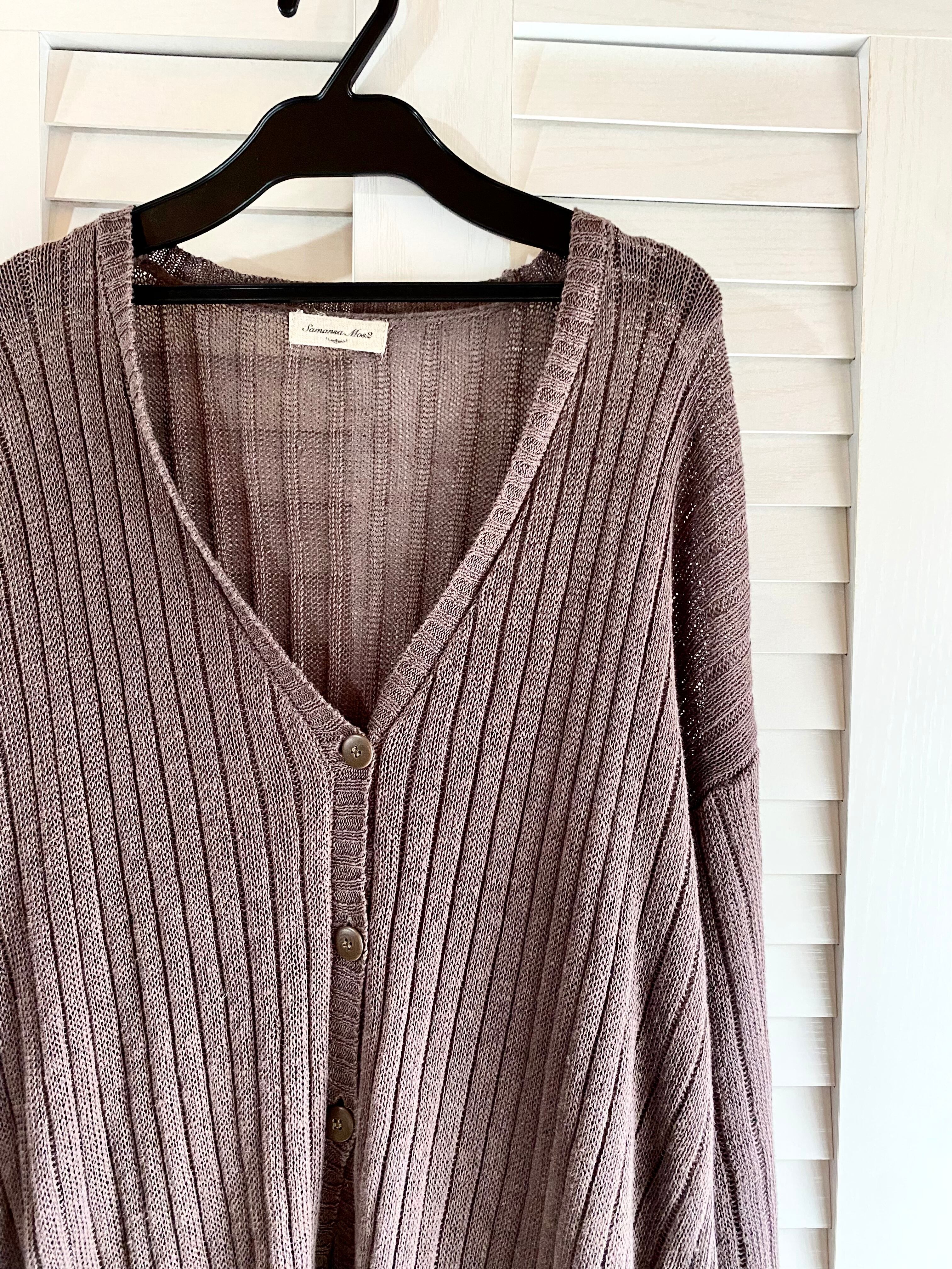 #196 Samansa Mos2 リネンゆる編みリブニット ロングカーデ モカチャ